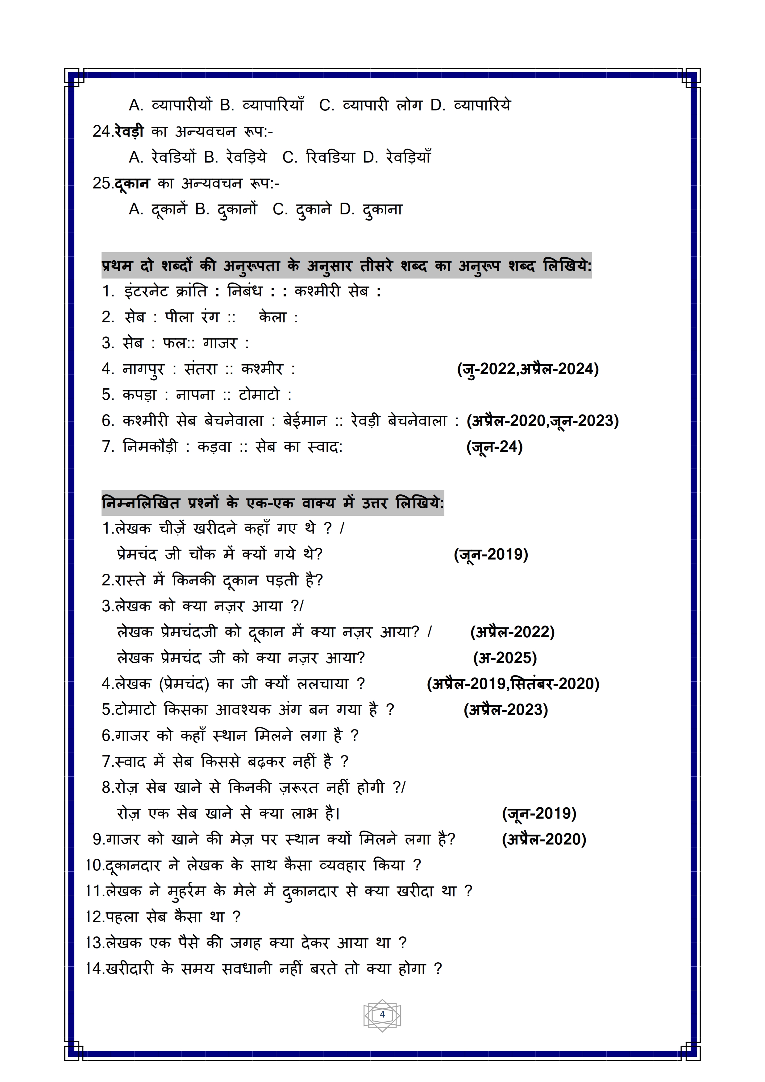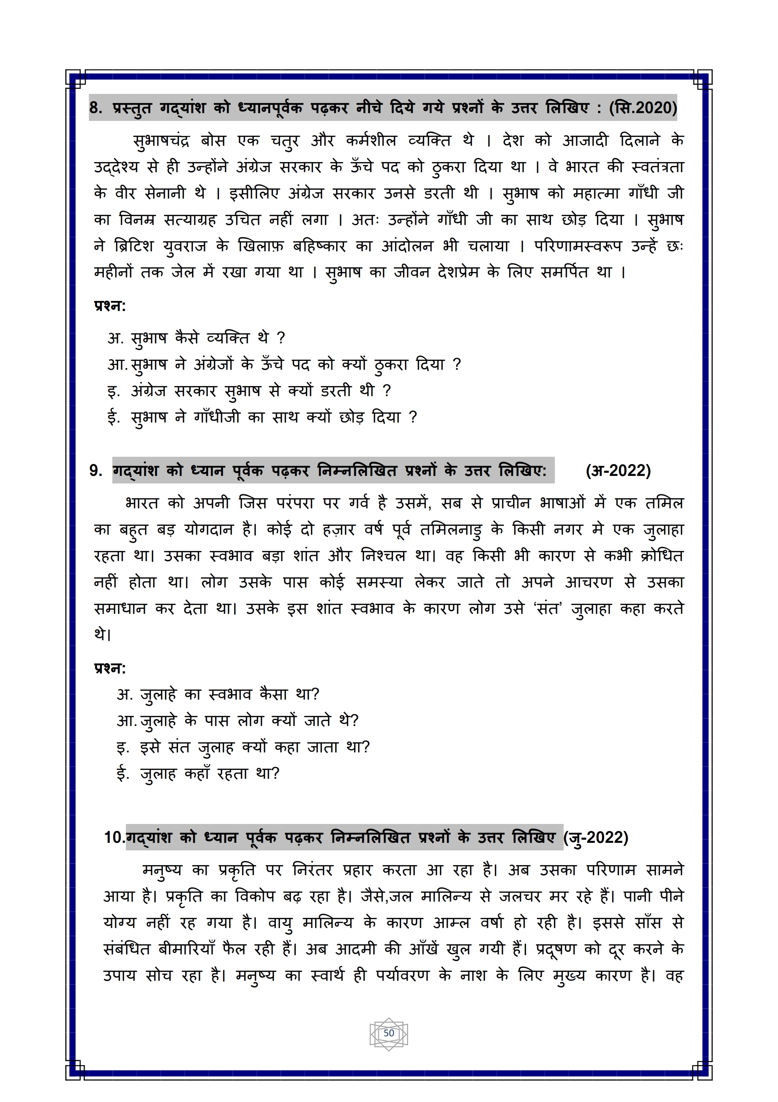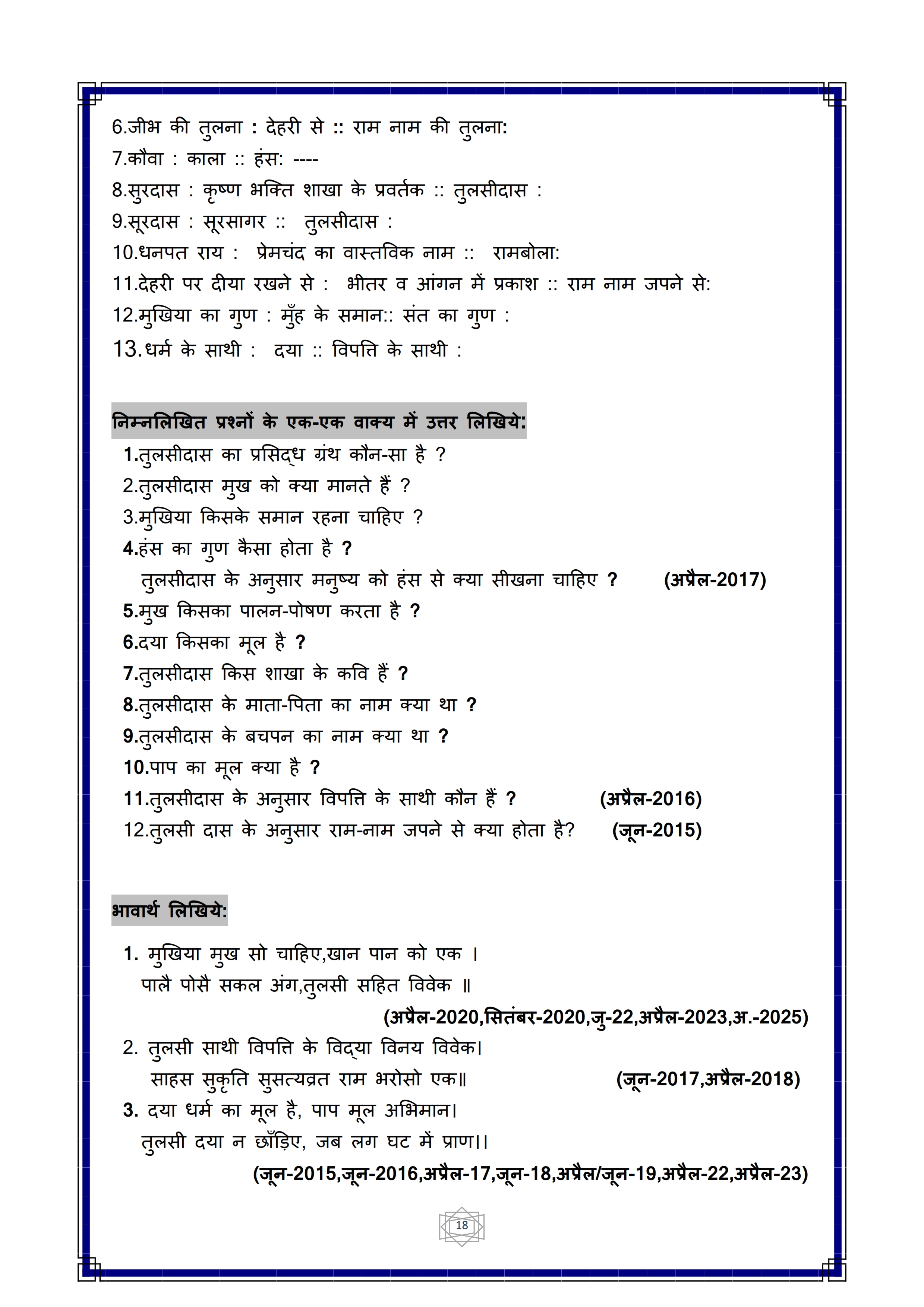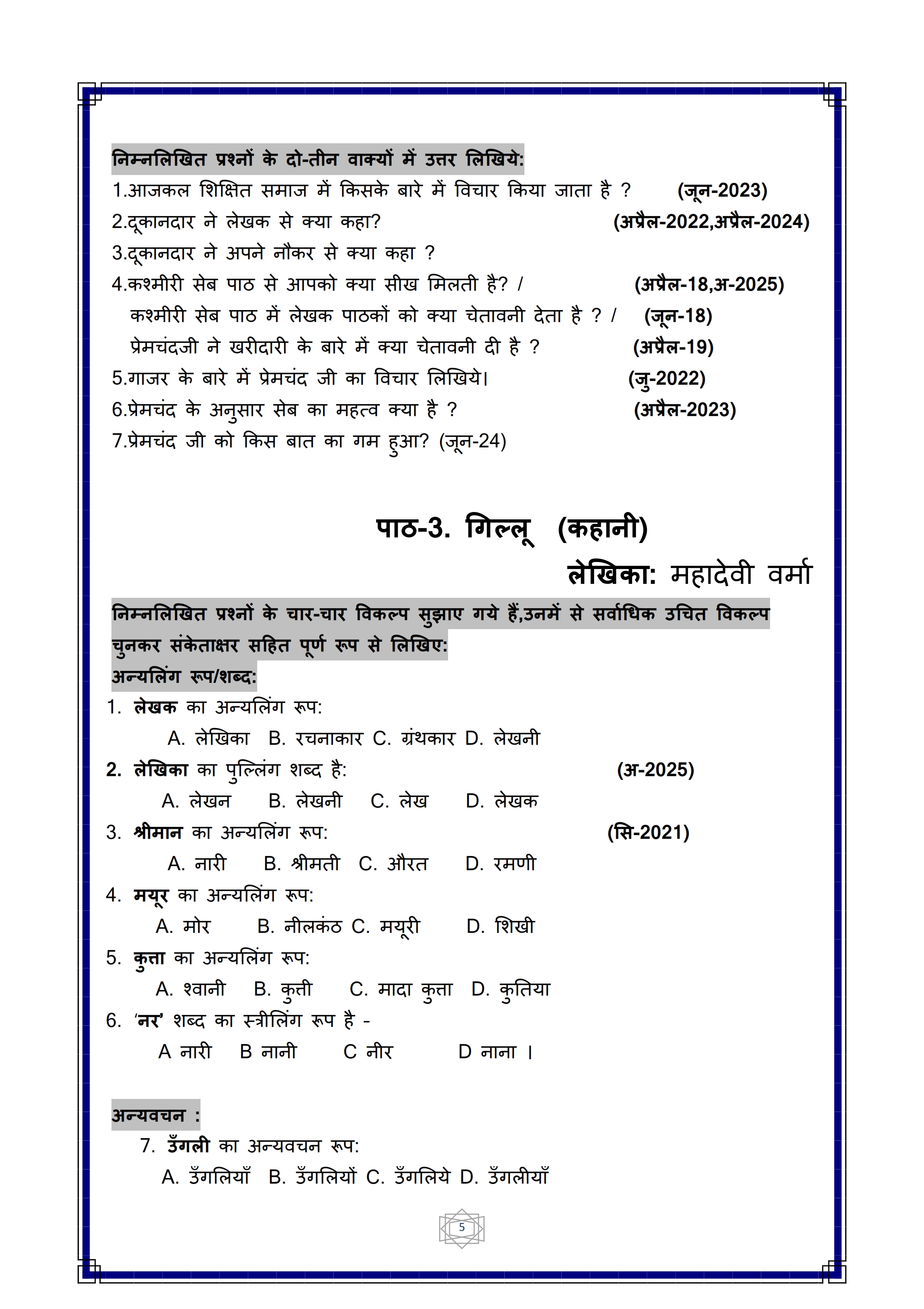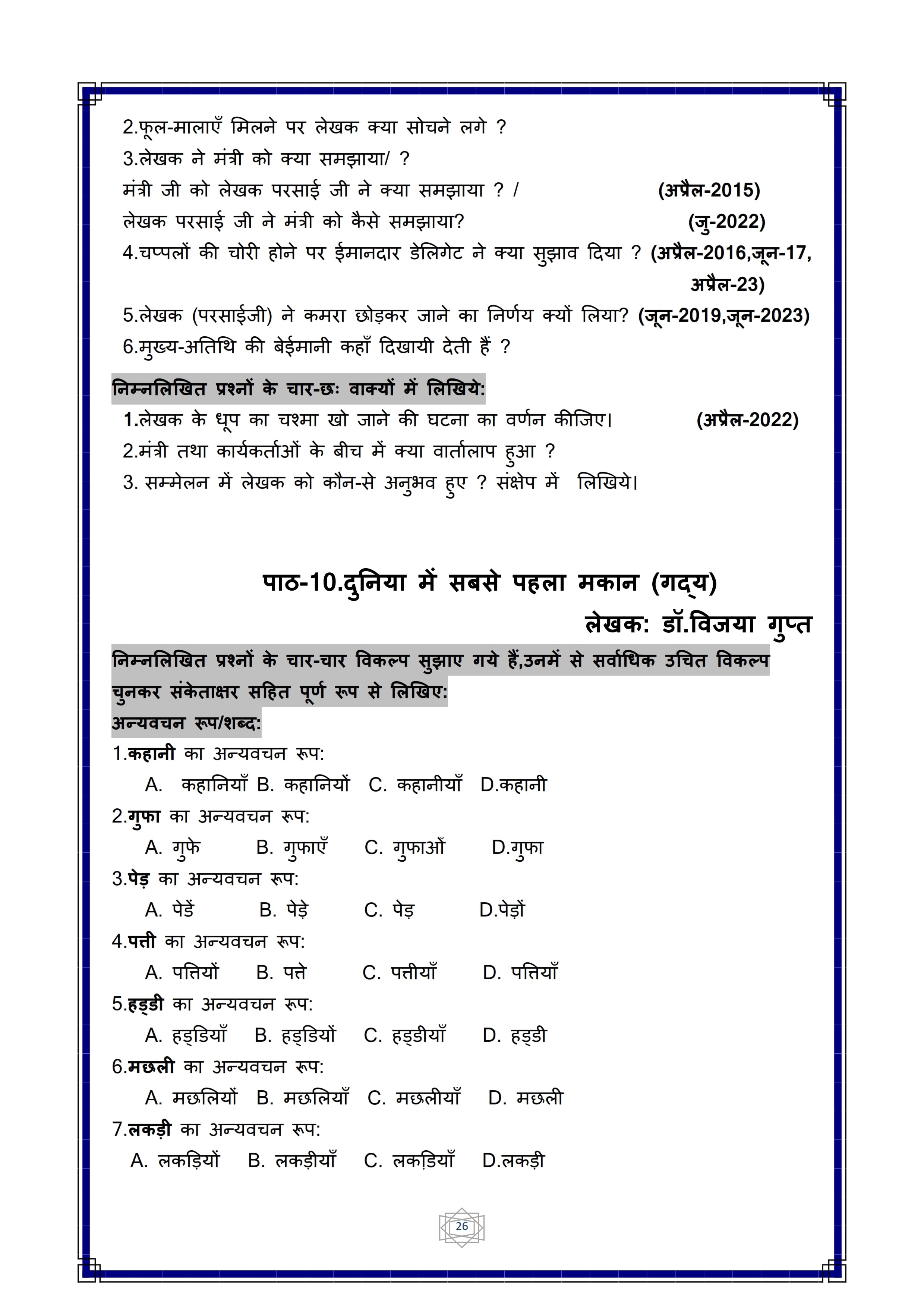 Karnataka SSLC Hindi Question Bank