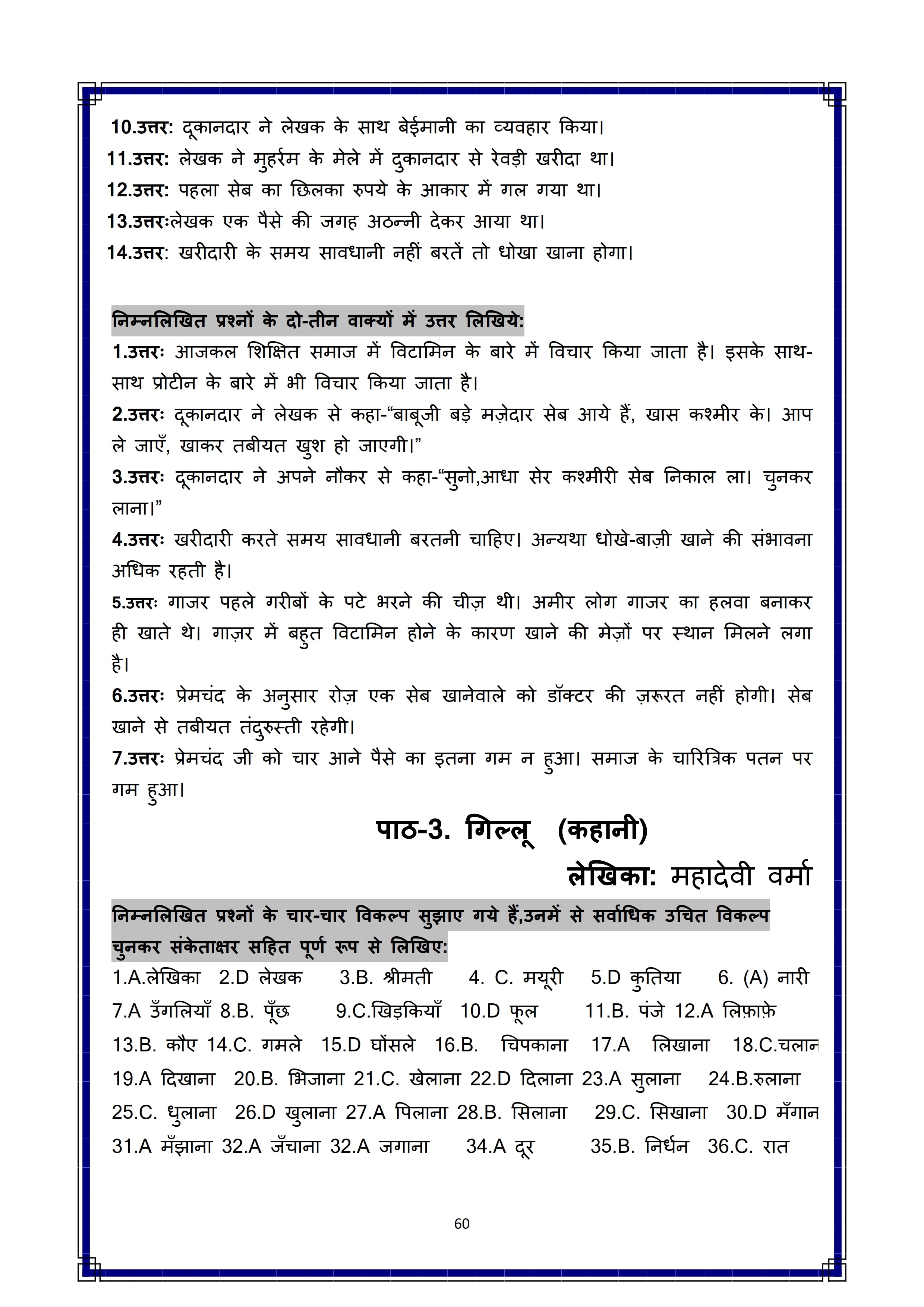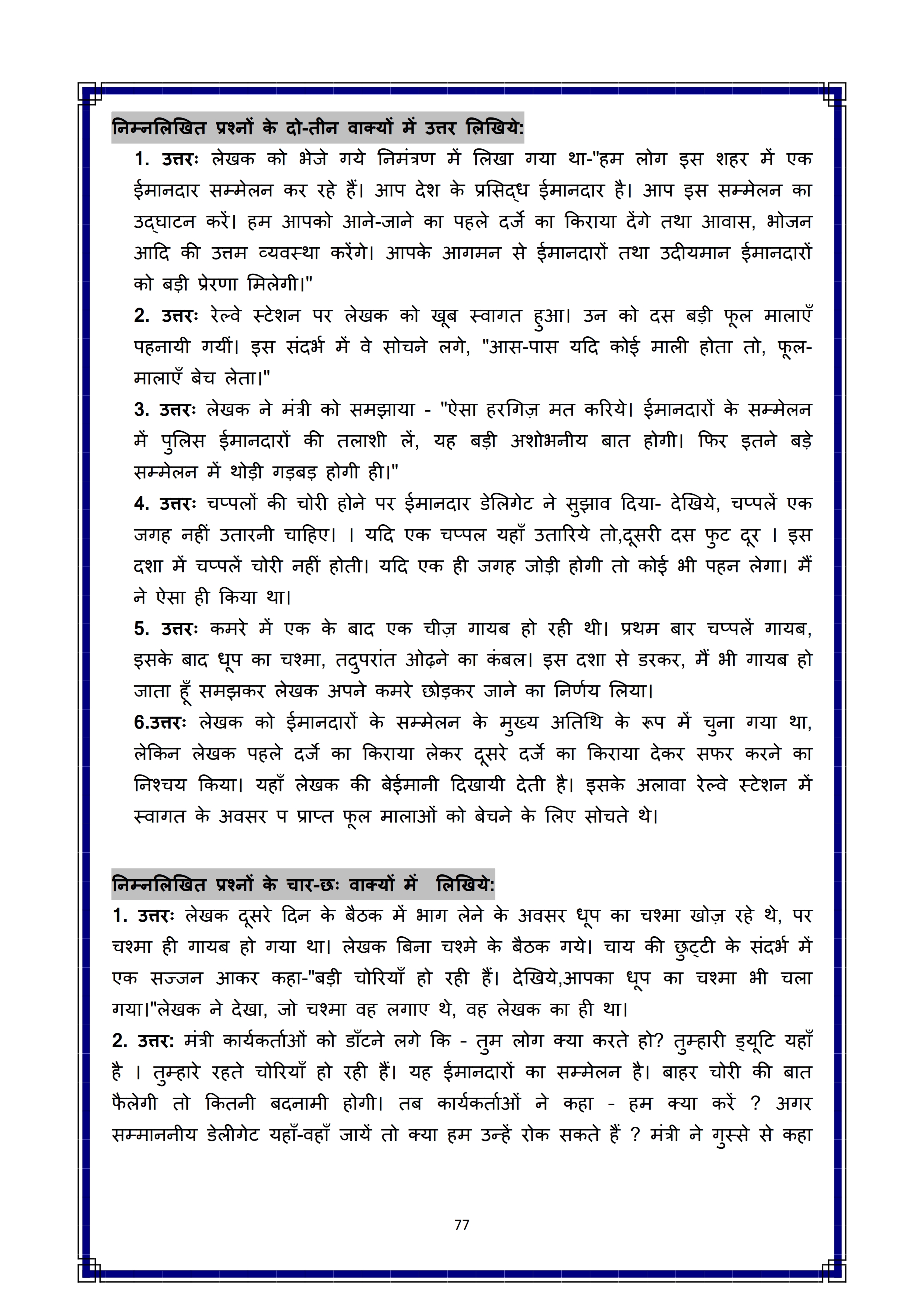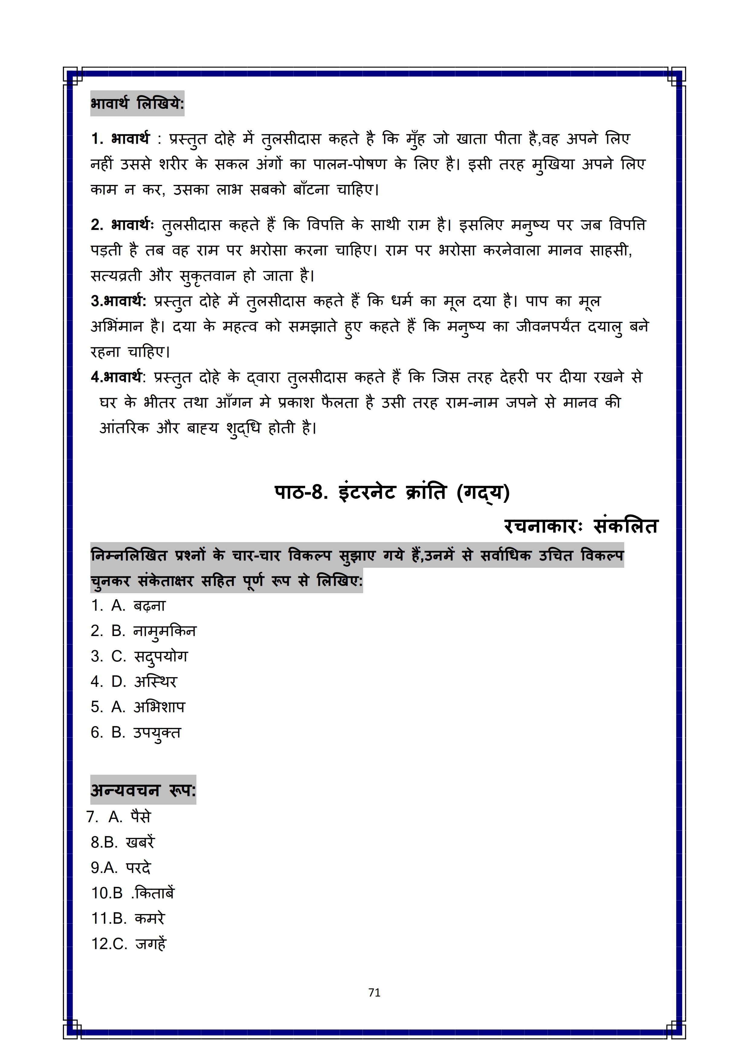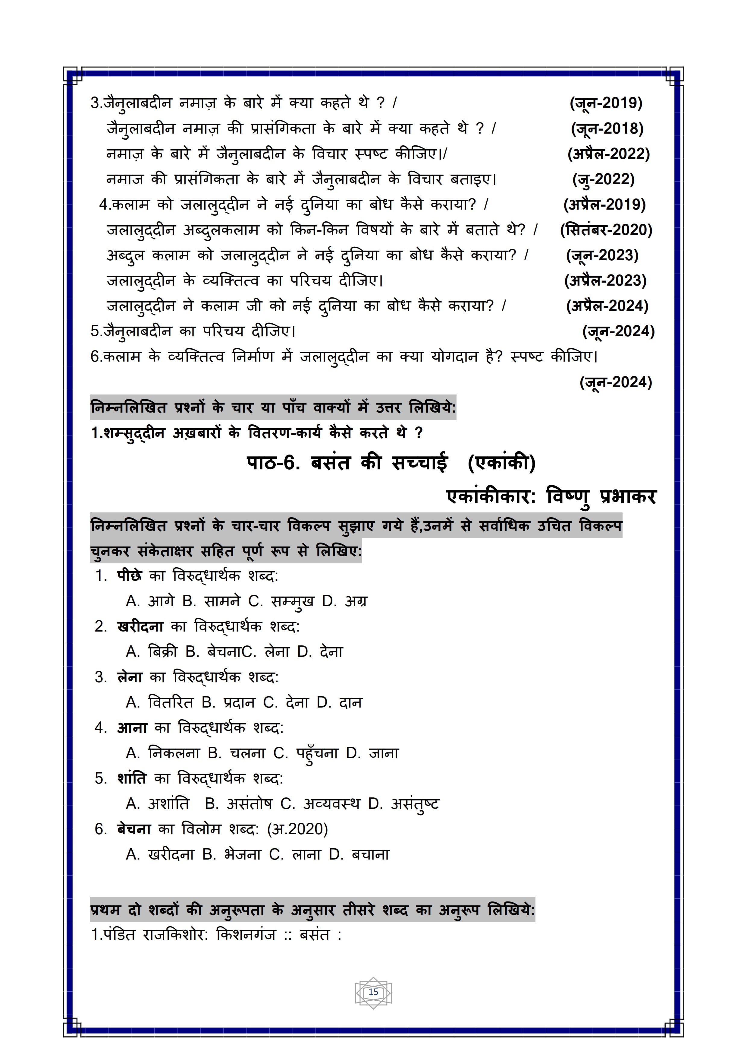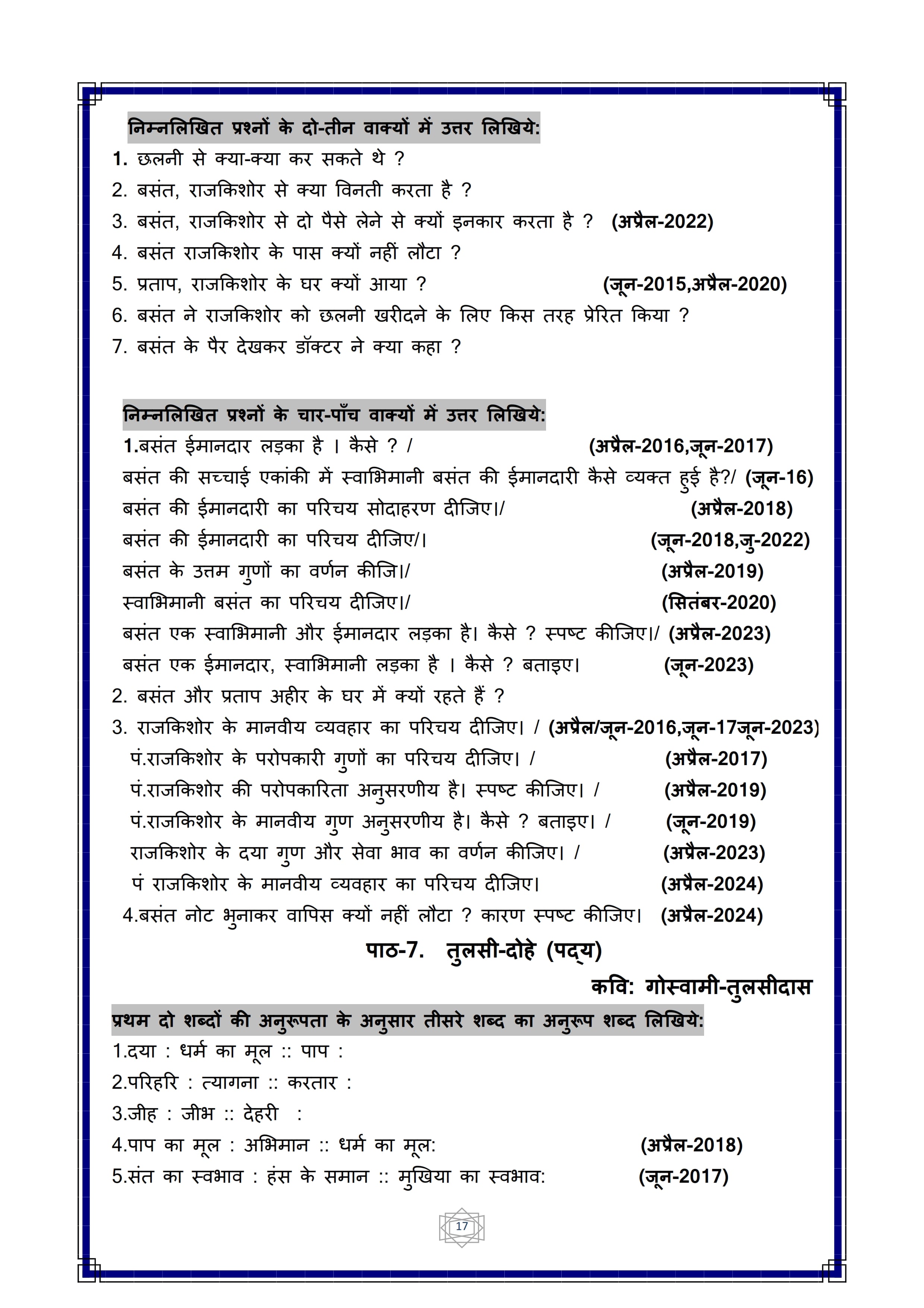 Karnataka SSLC Hindi Question Bank
