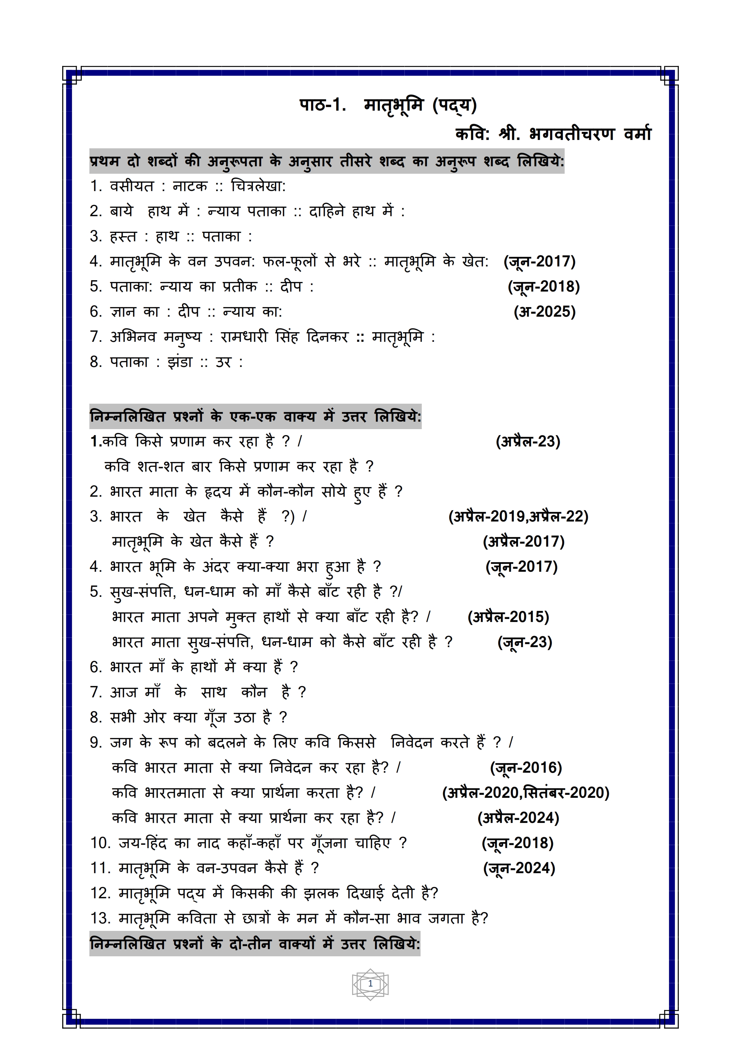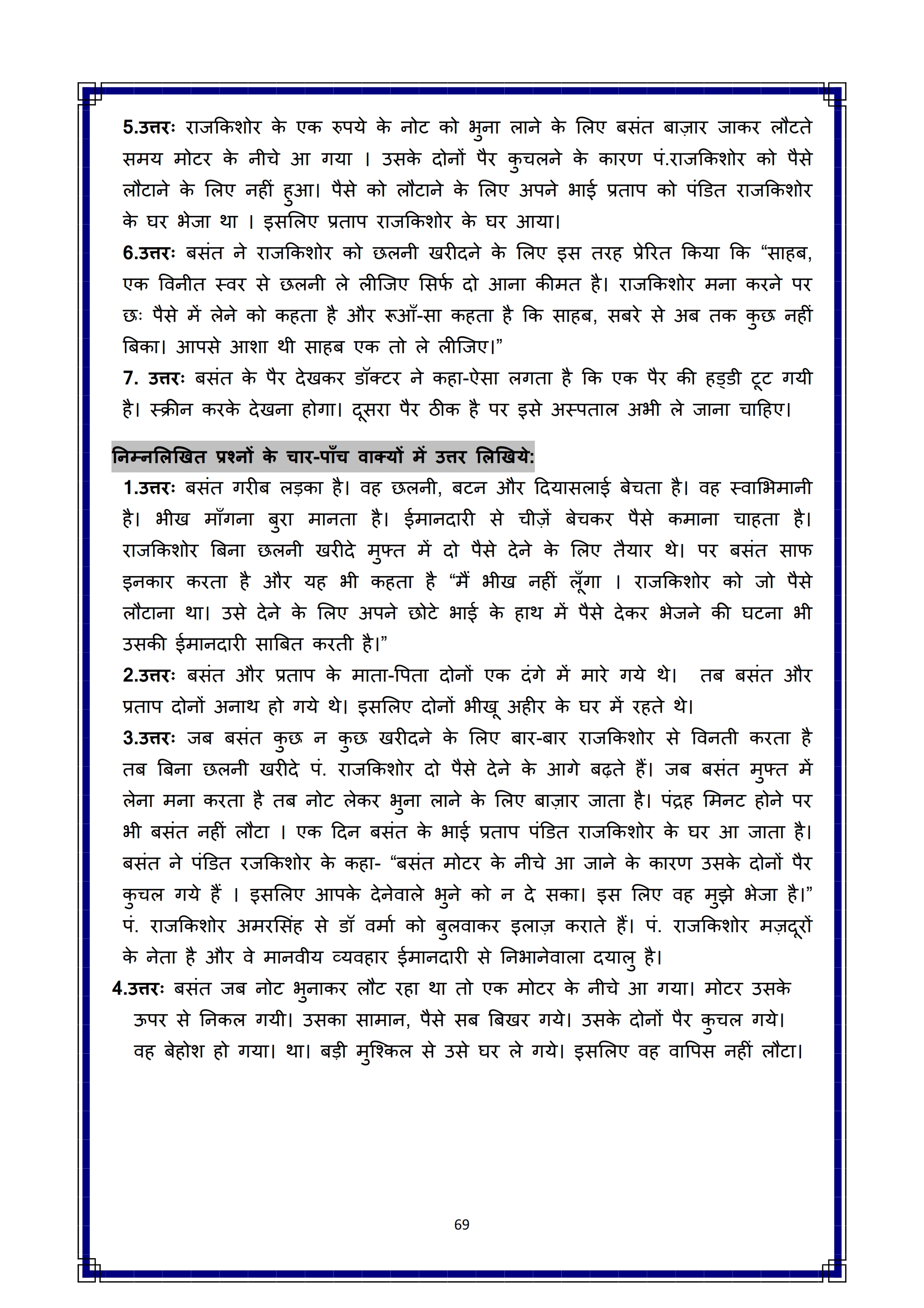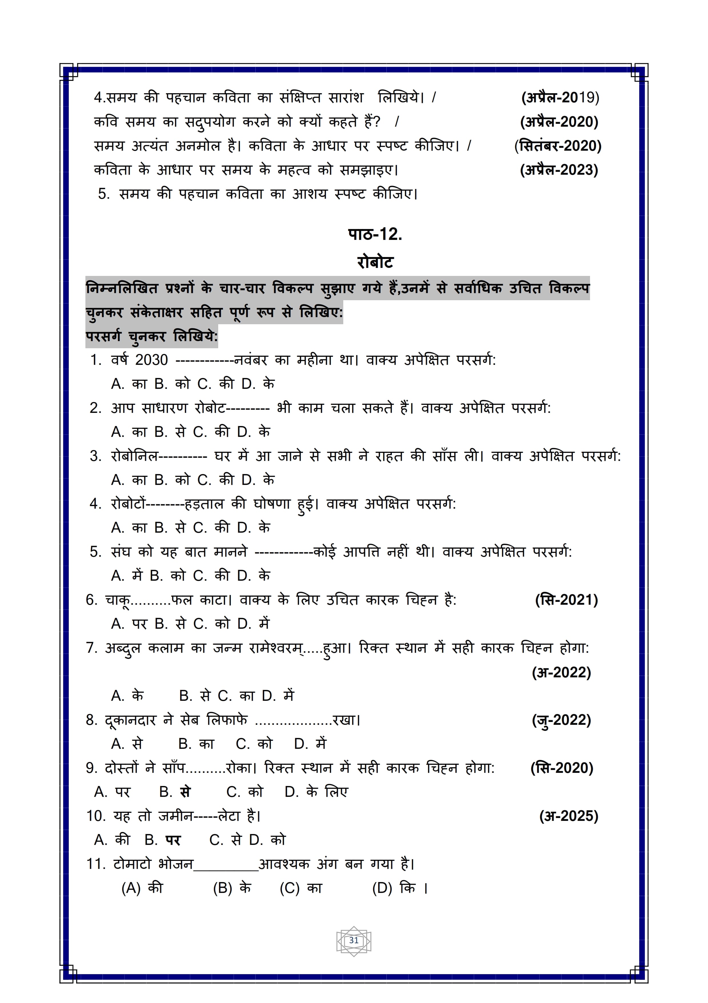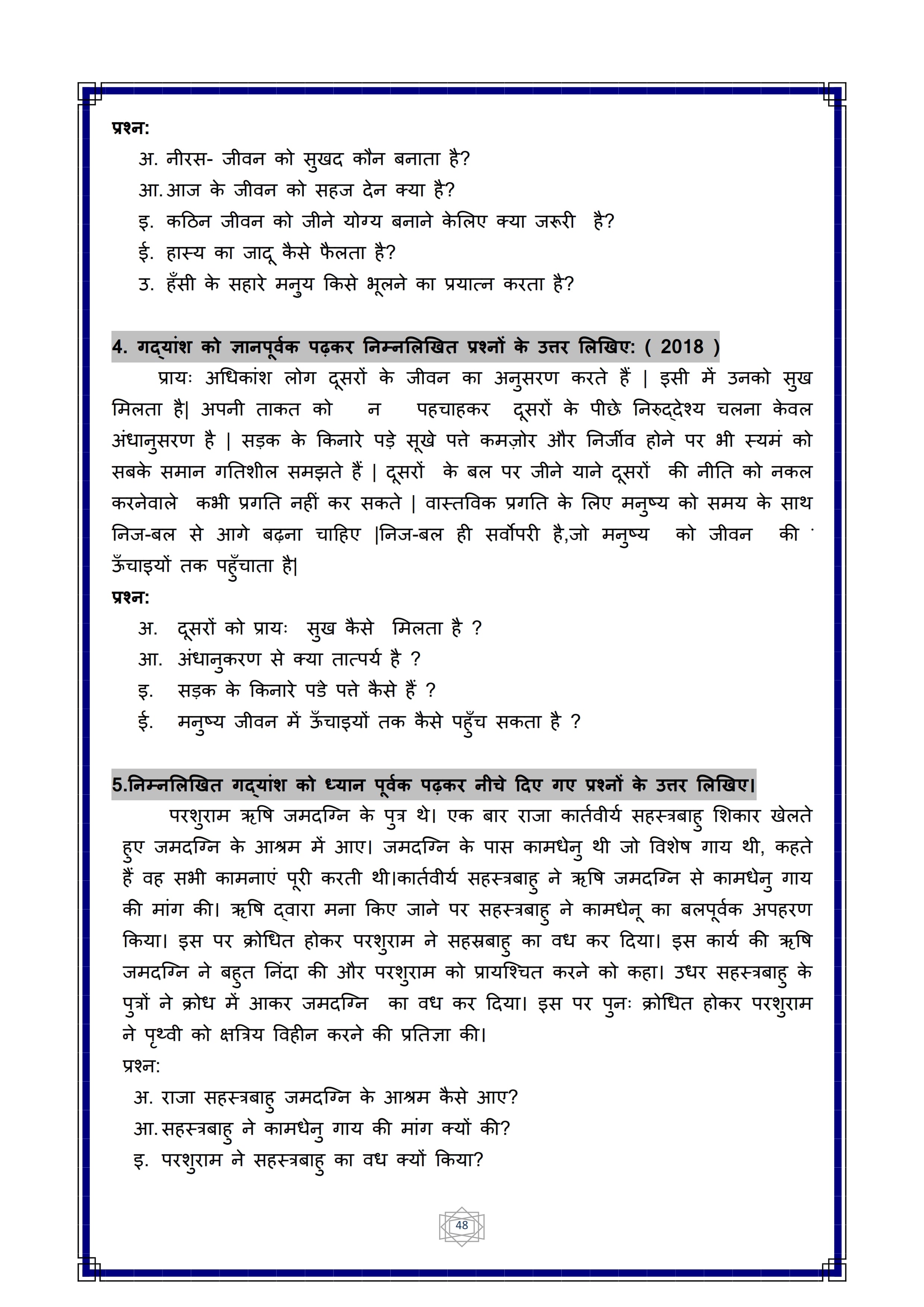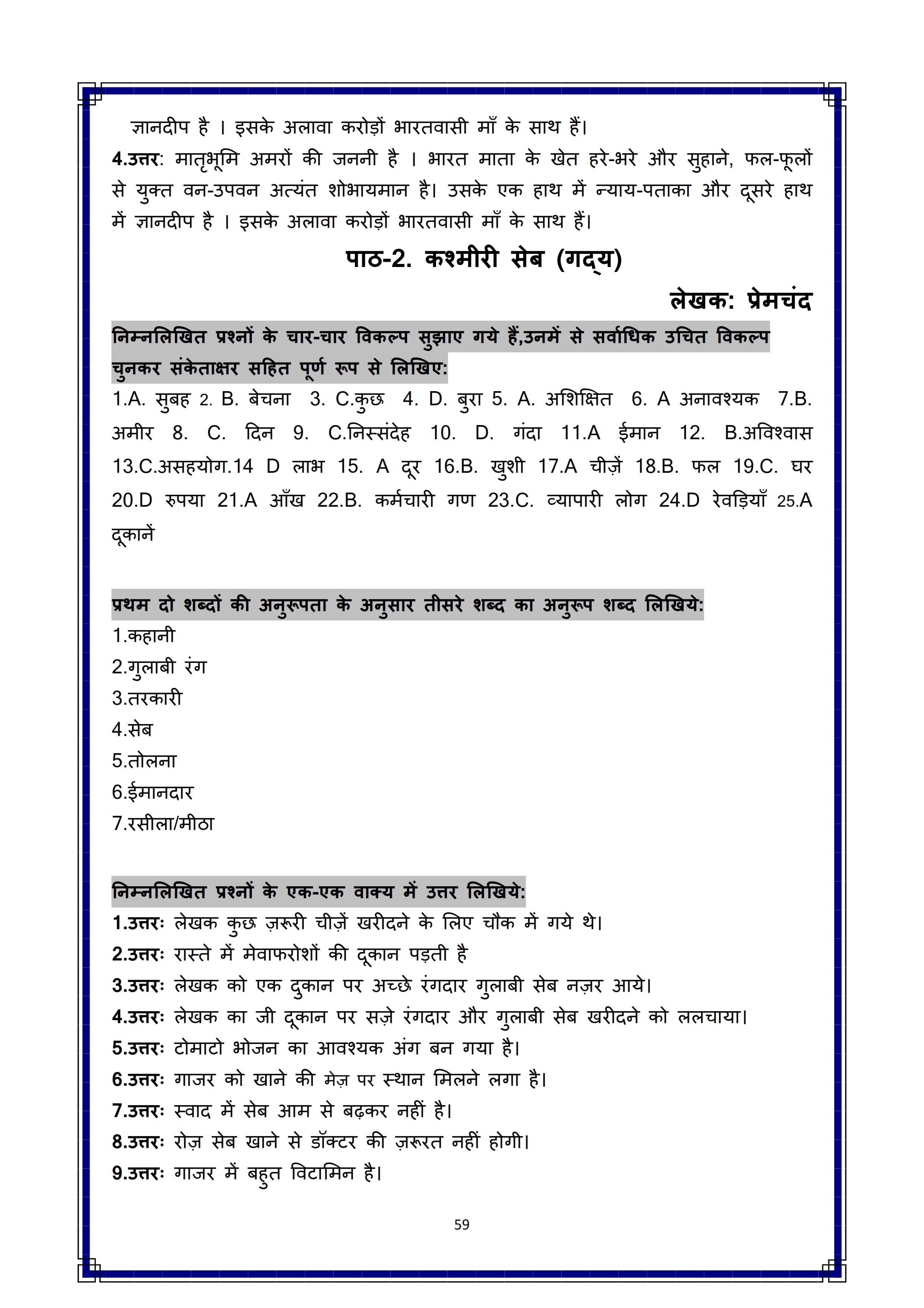 Karnataka SSLC Hindi Question Bank