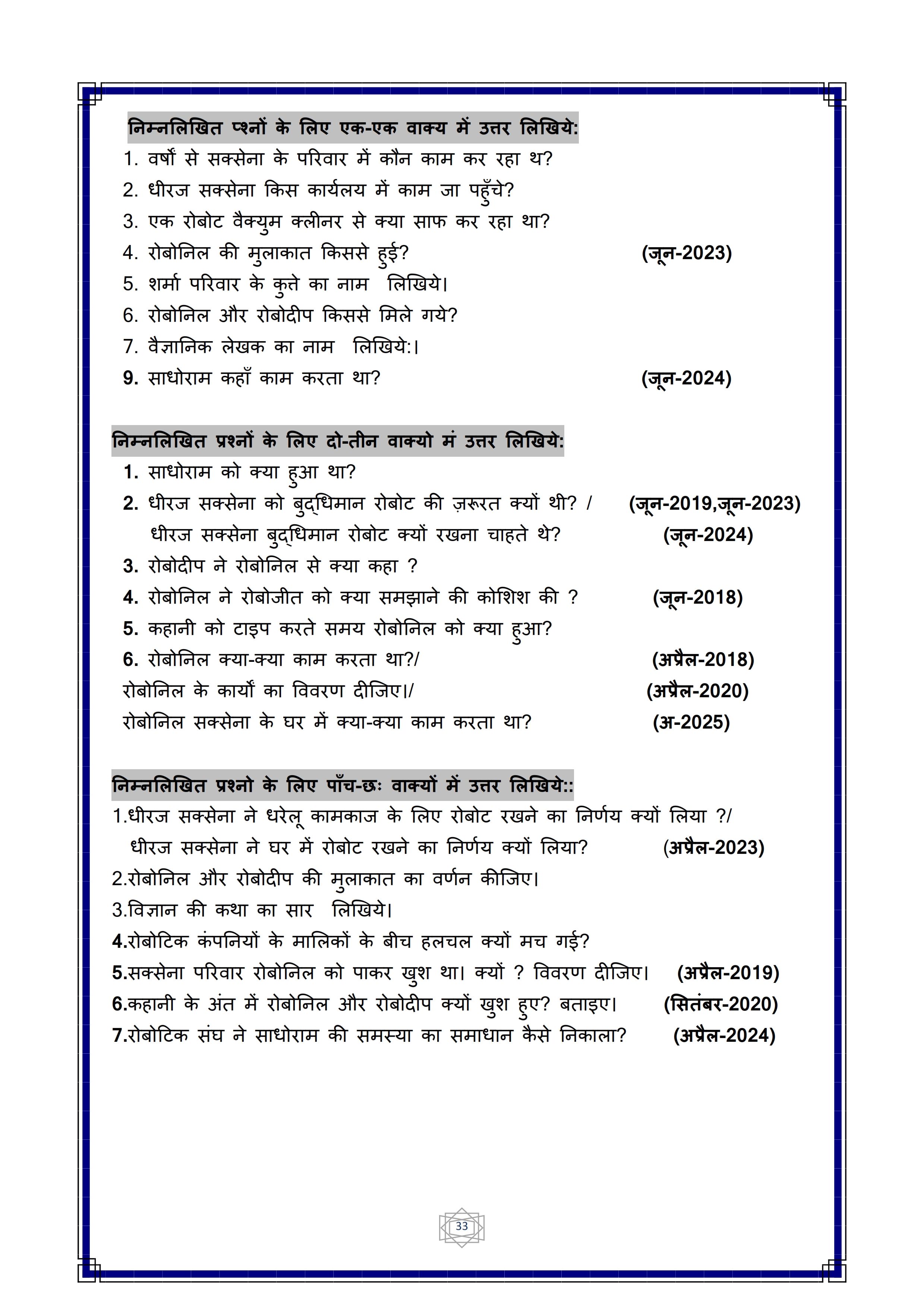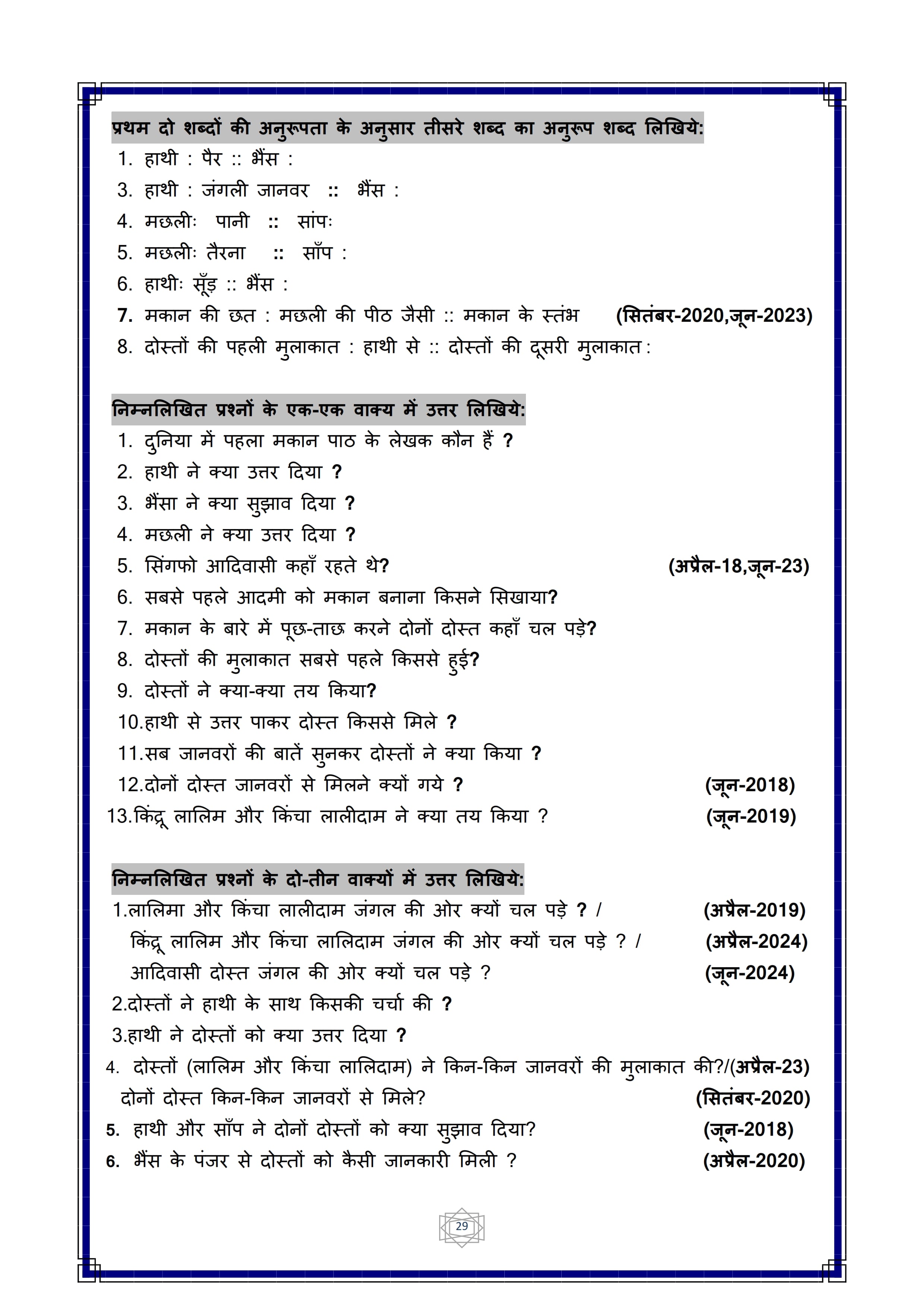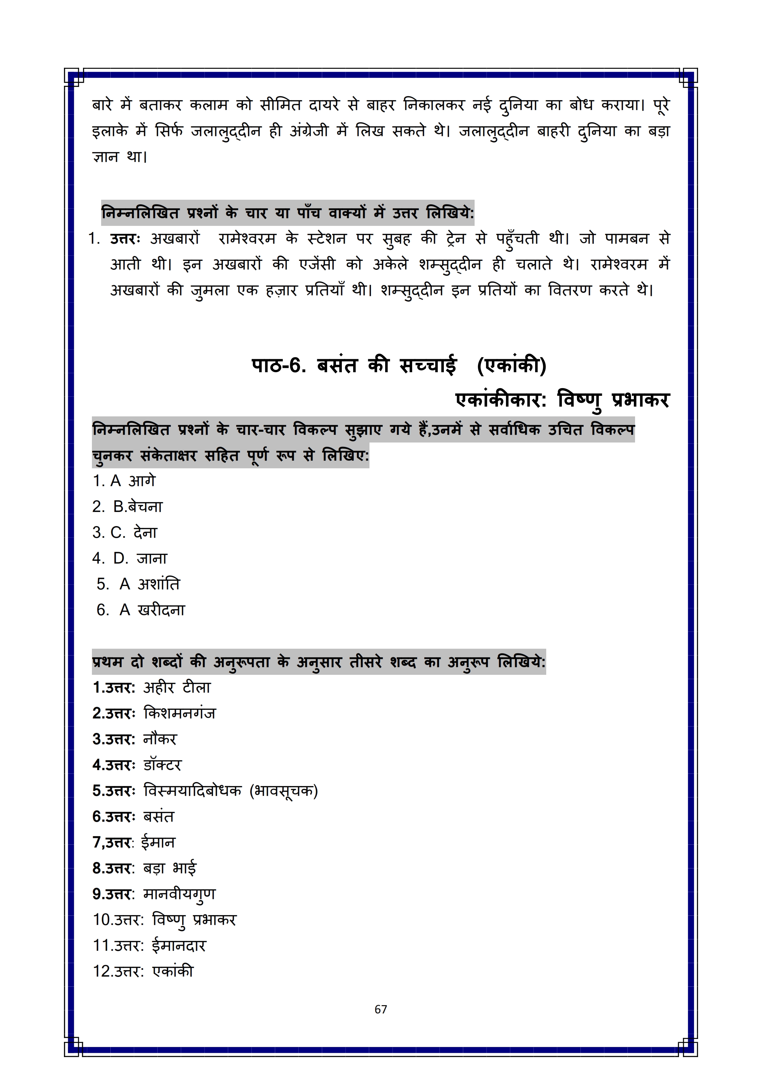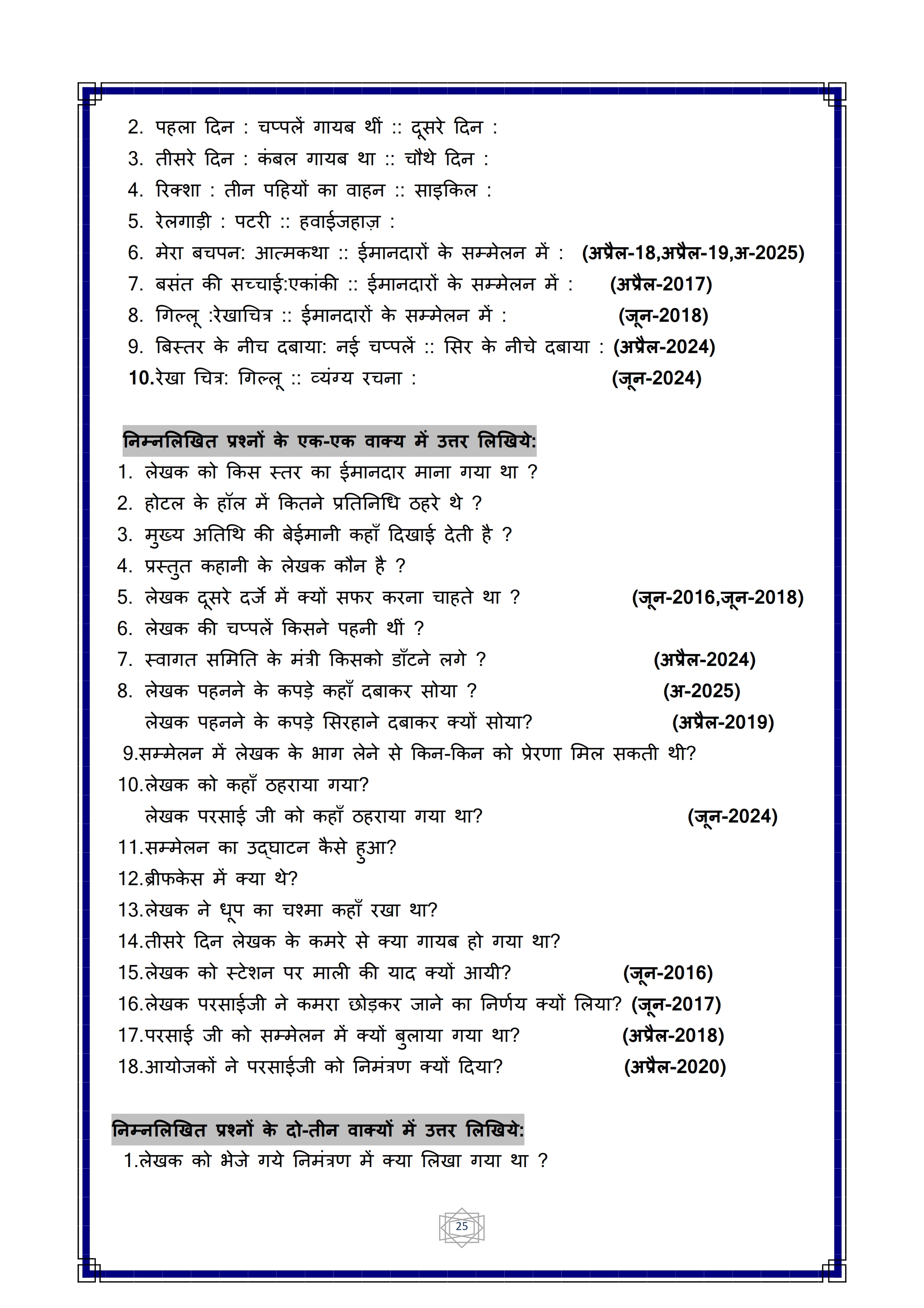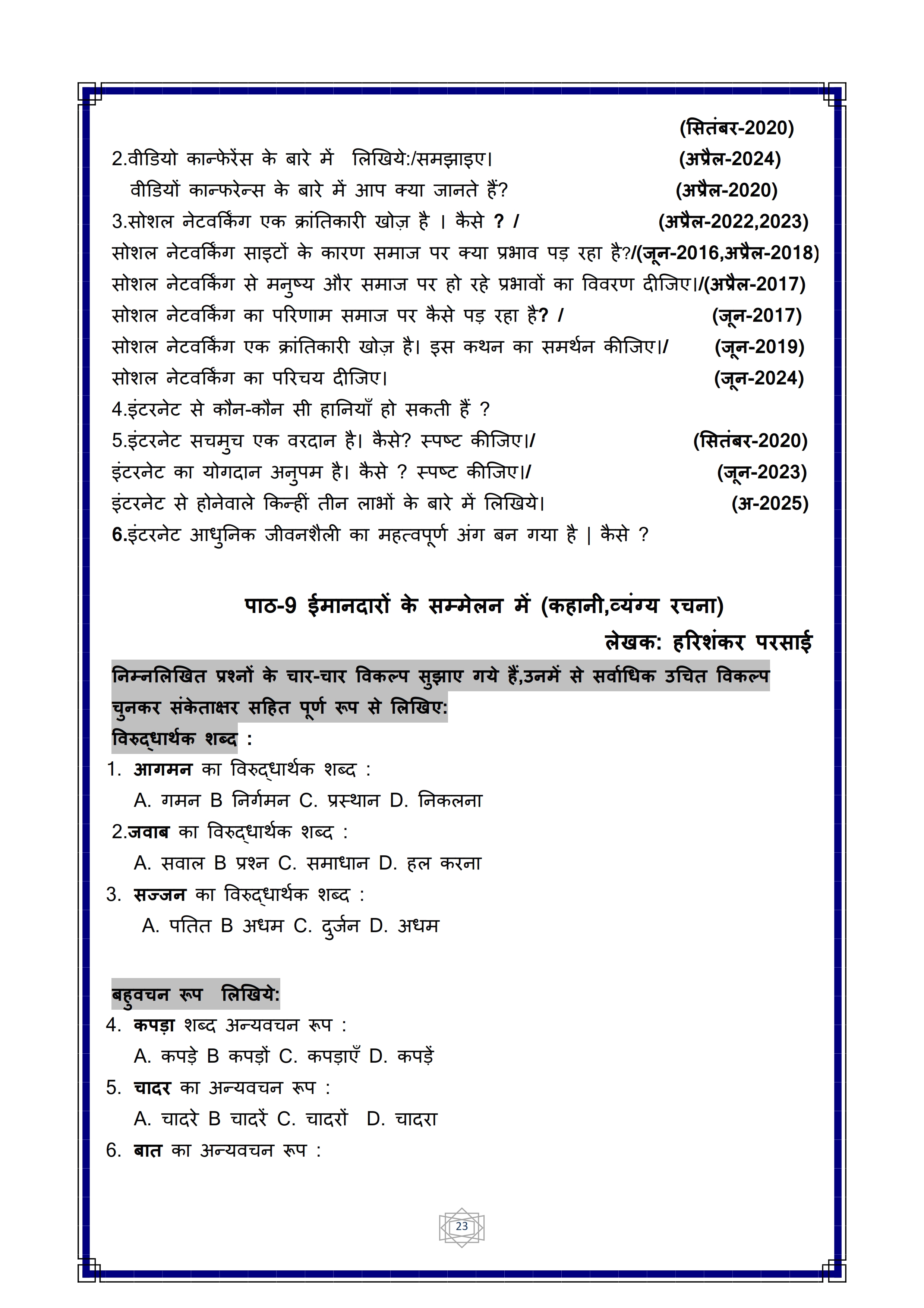 Karnataka SSLC Hindi Question Bank