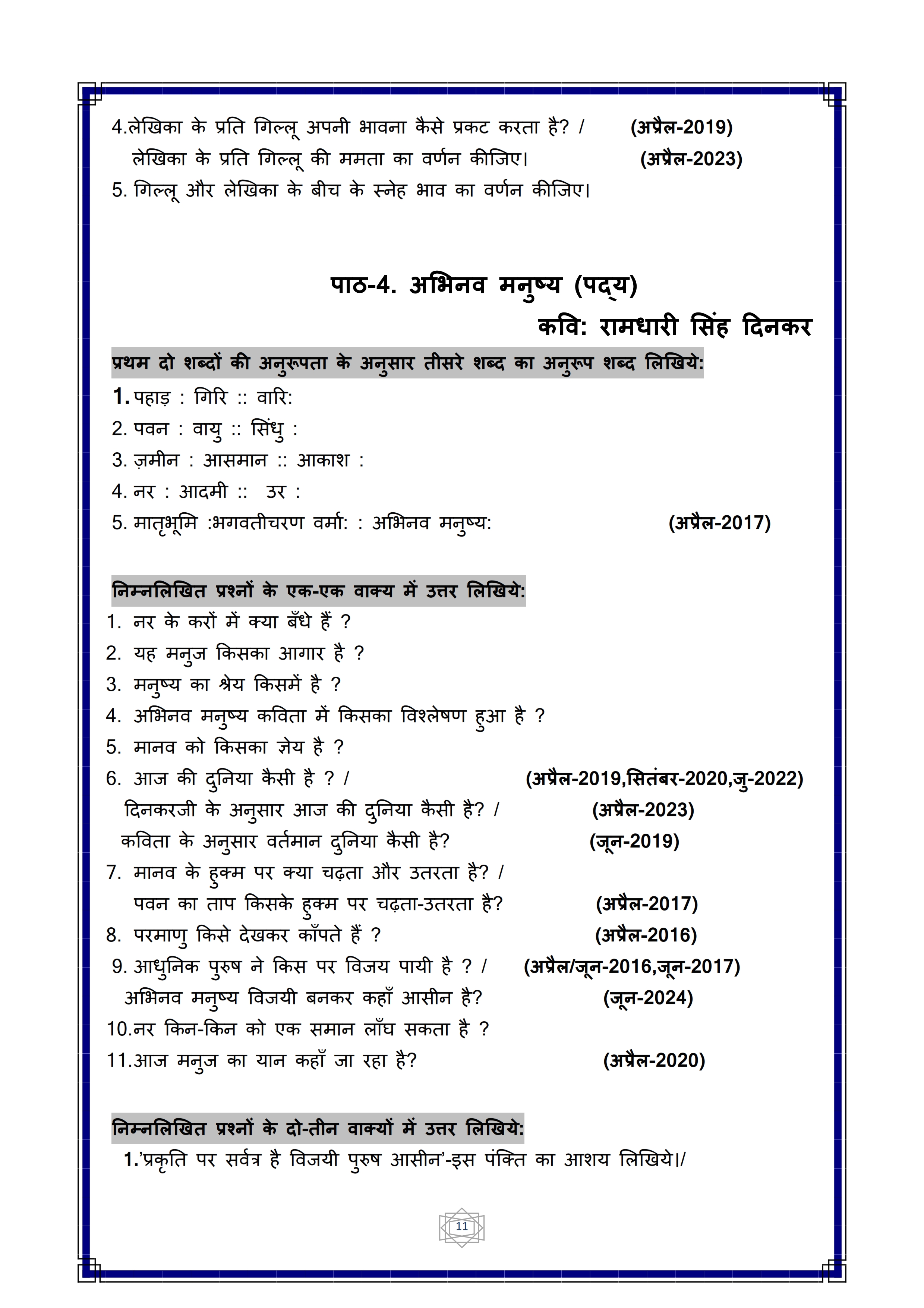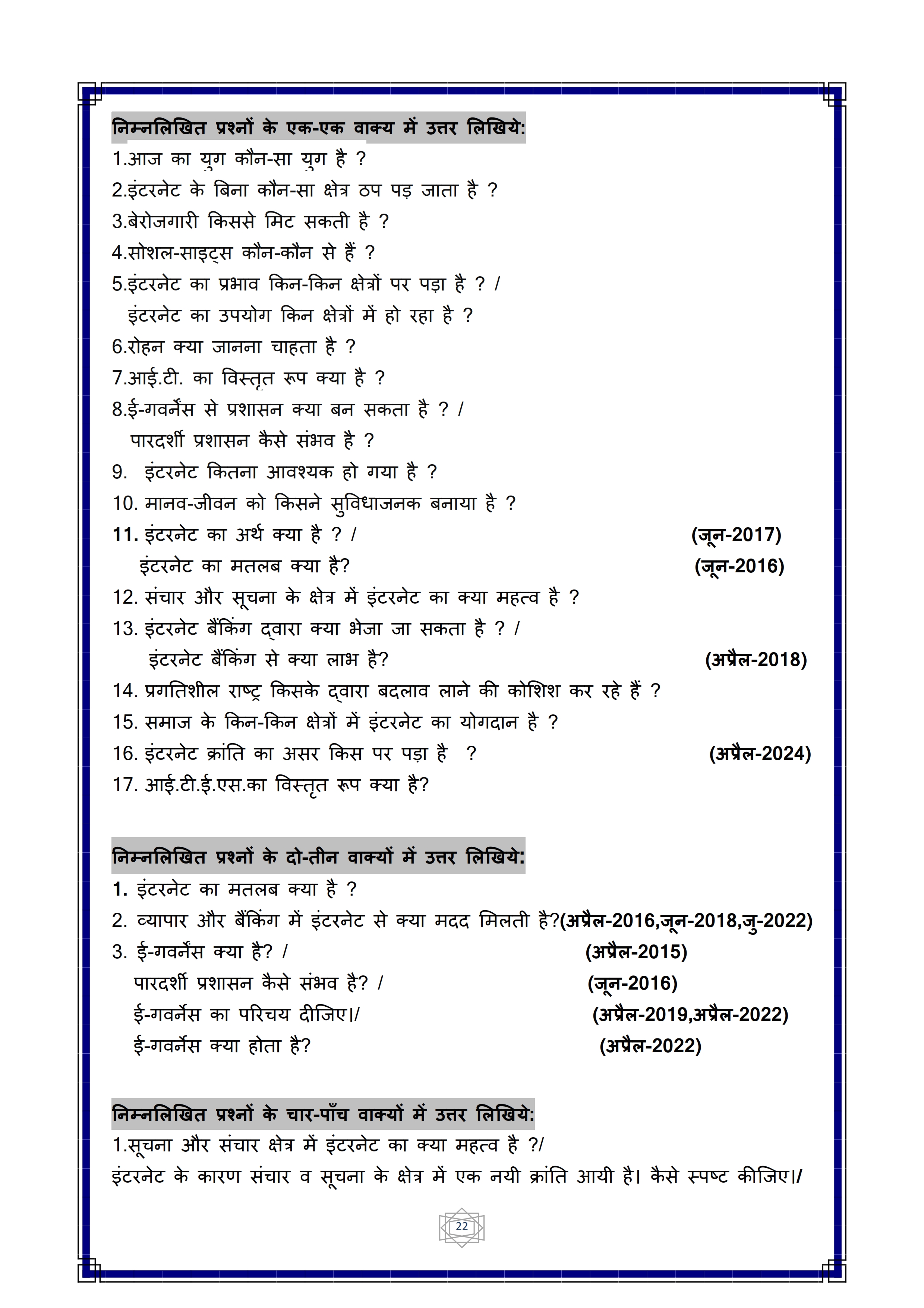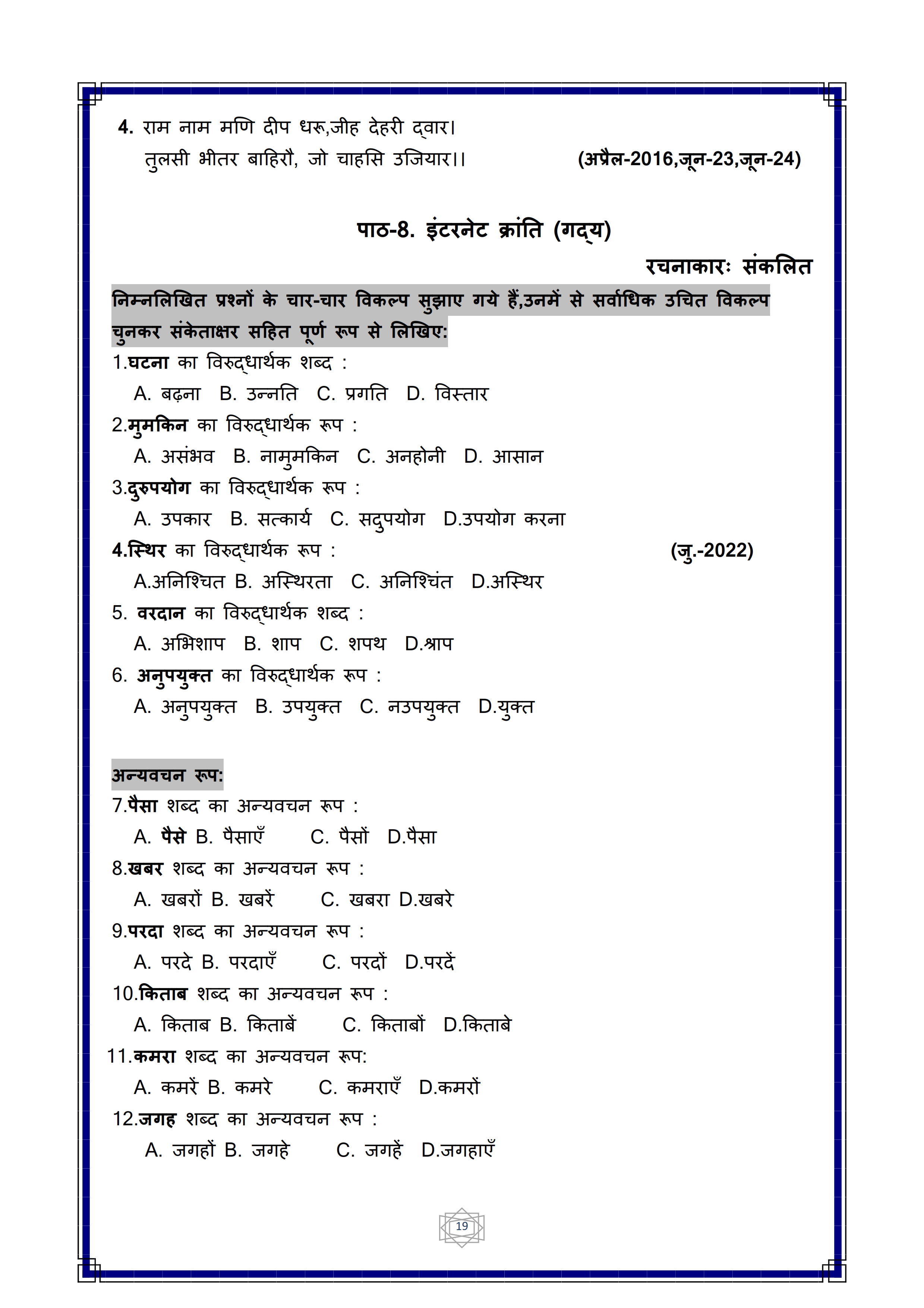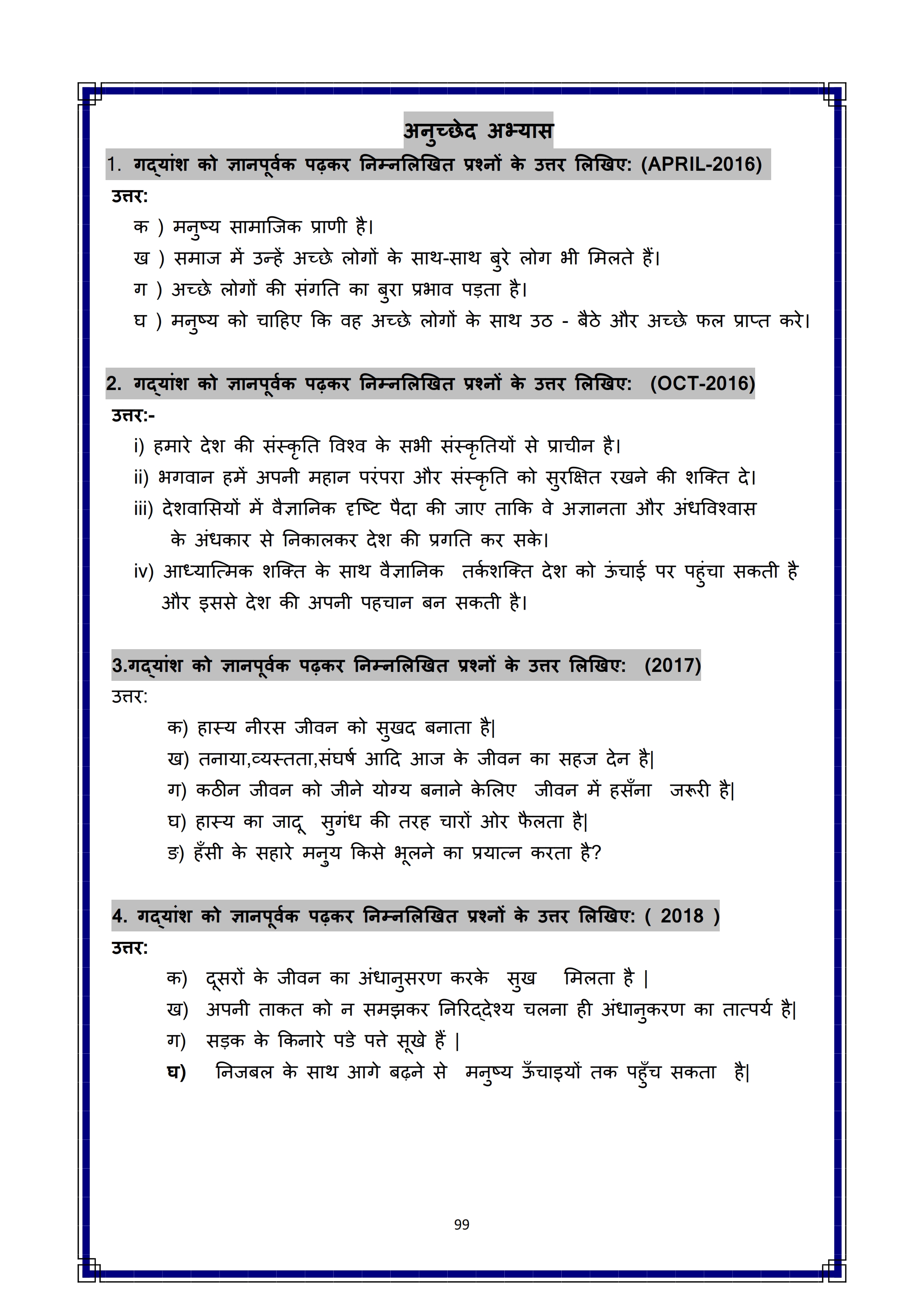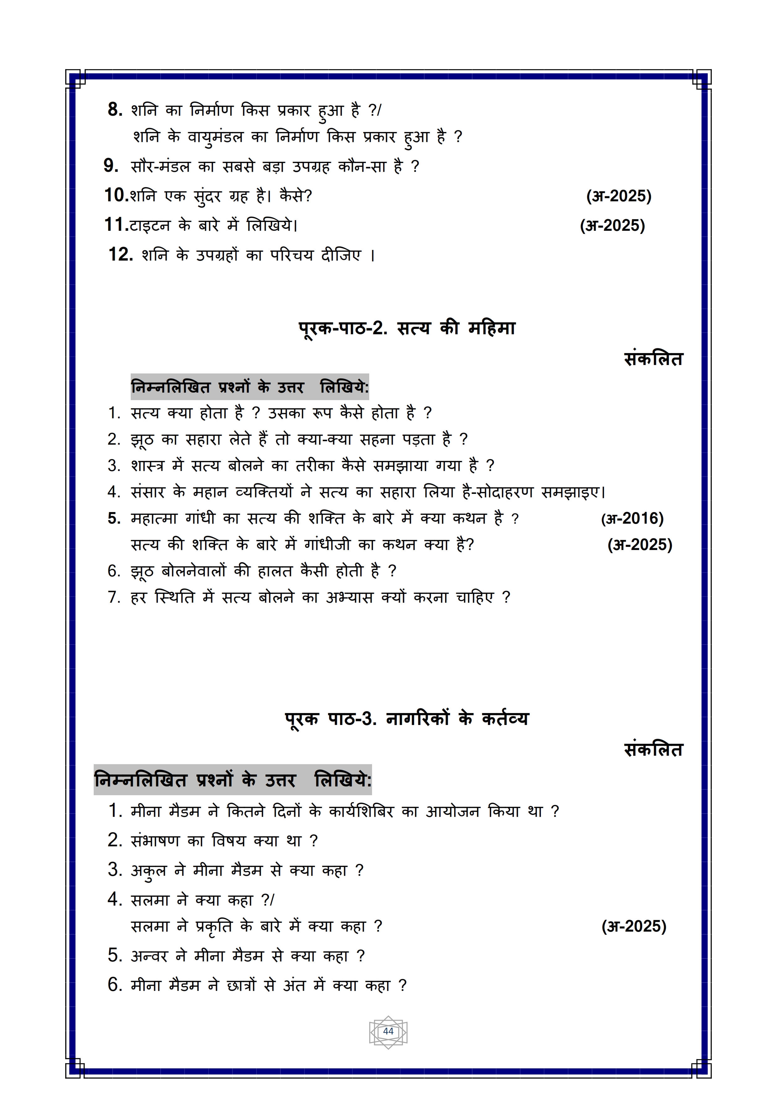 Karnataka SSLC Hindi Question Bank