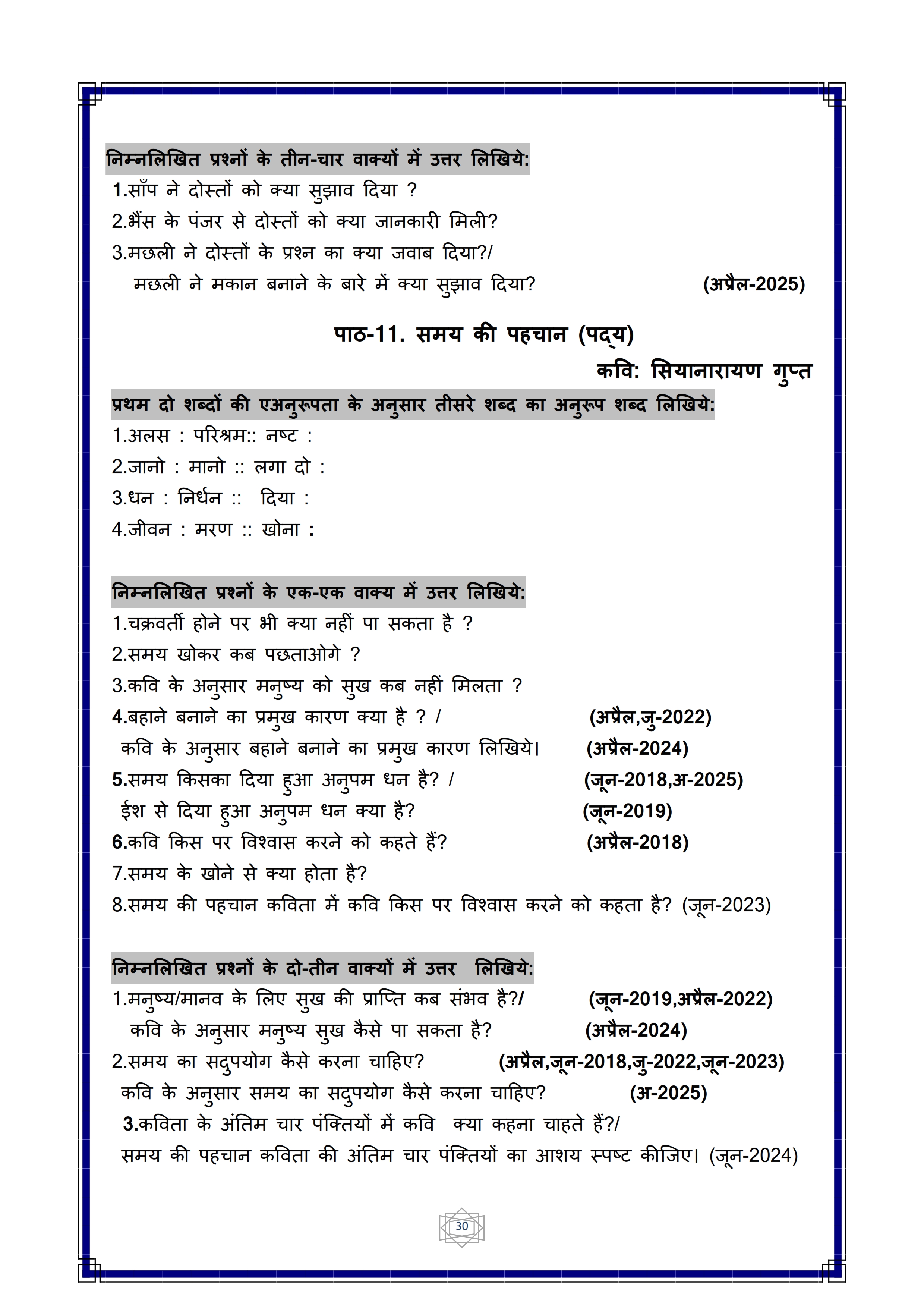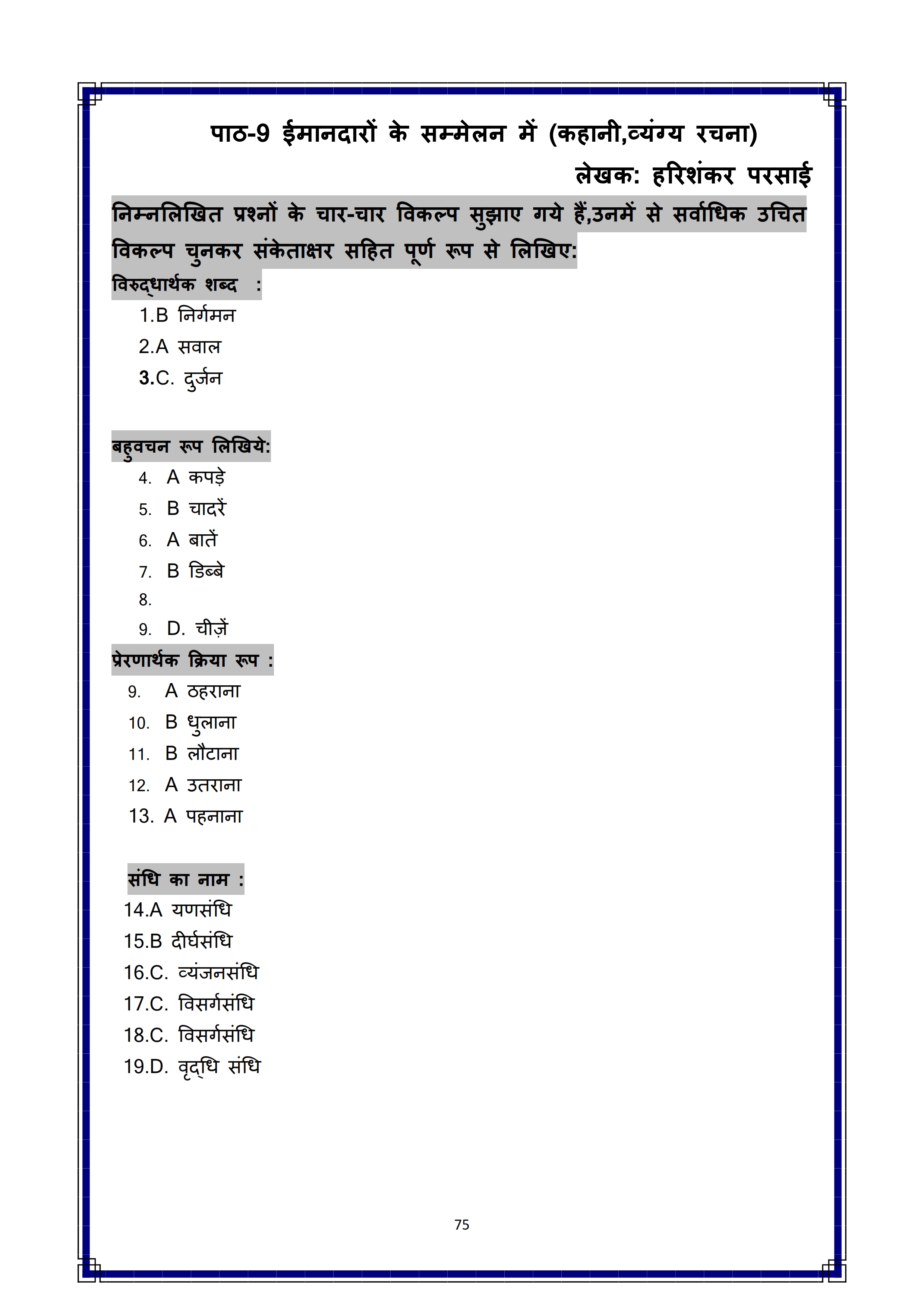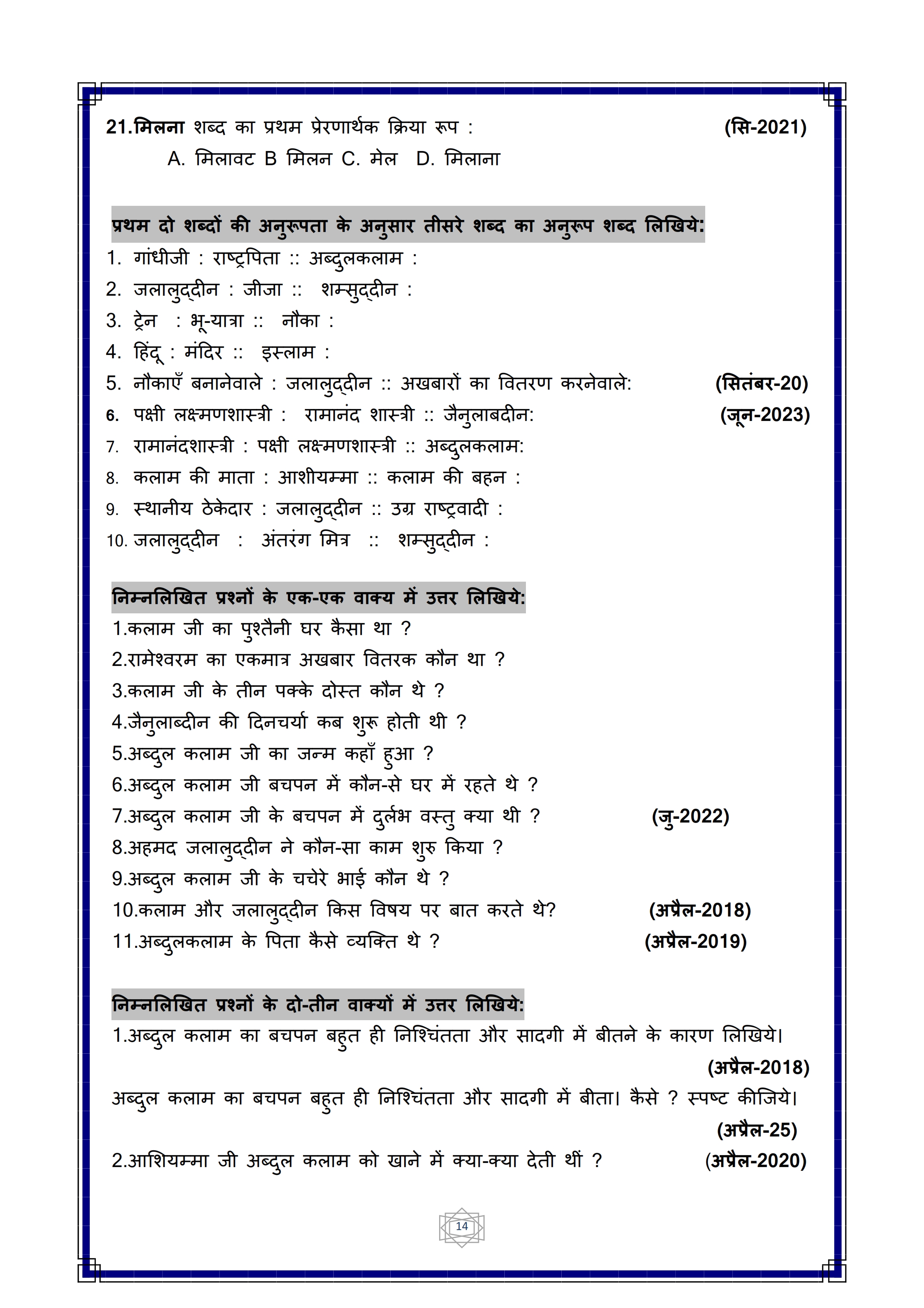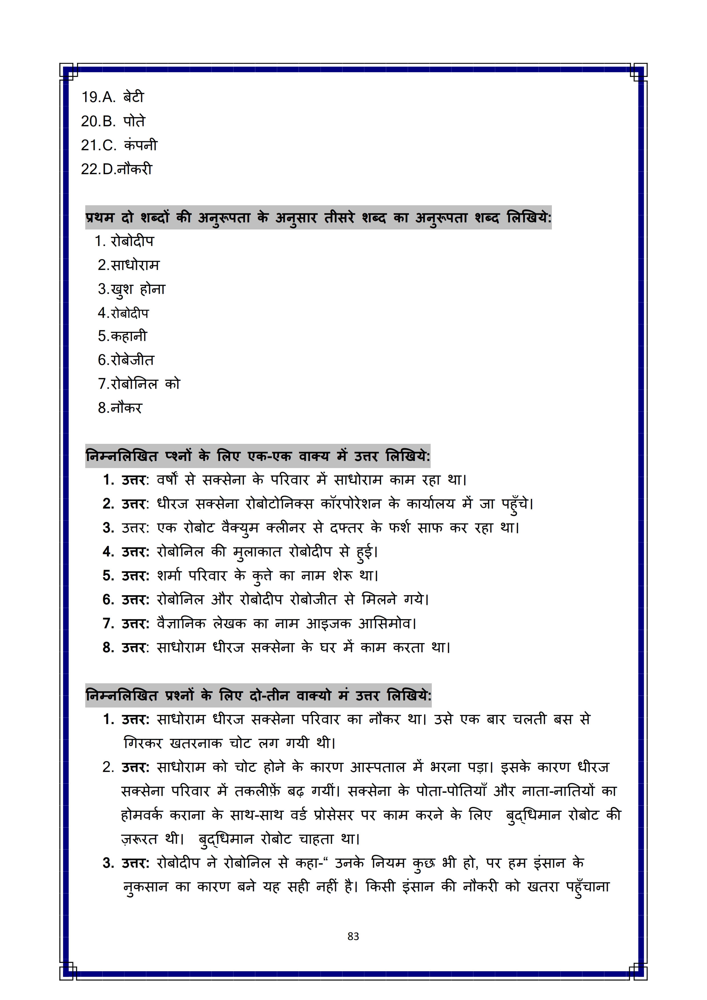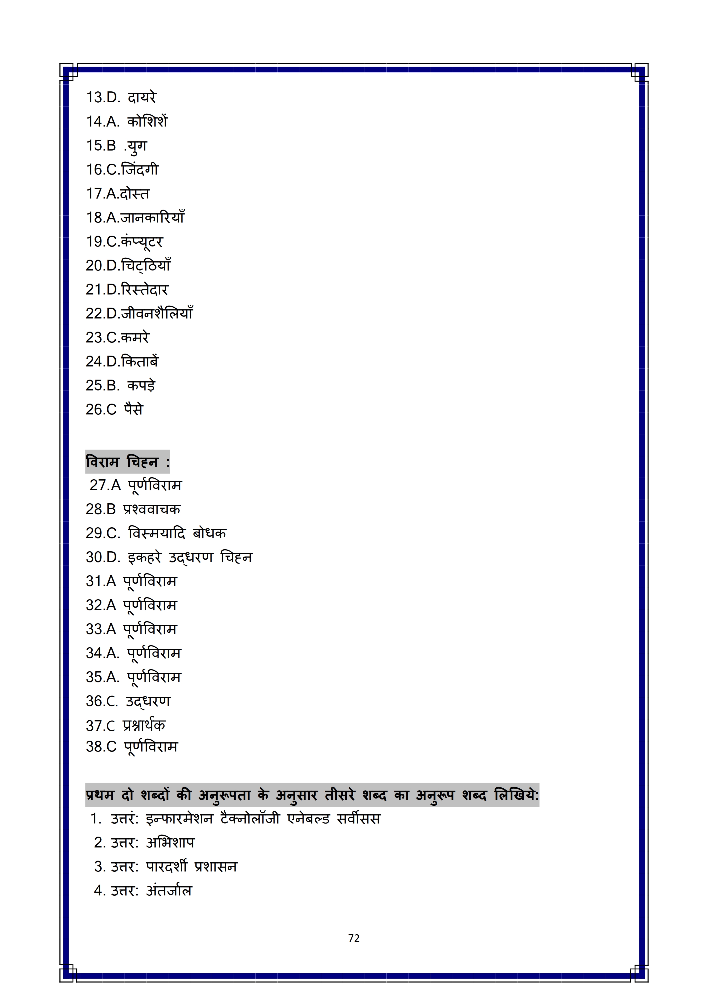 Karnataka SSLC Hindi Question Bank