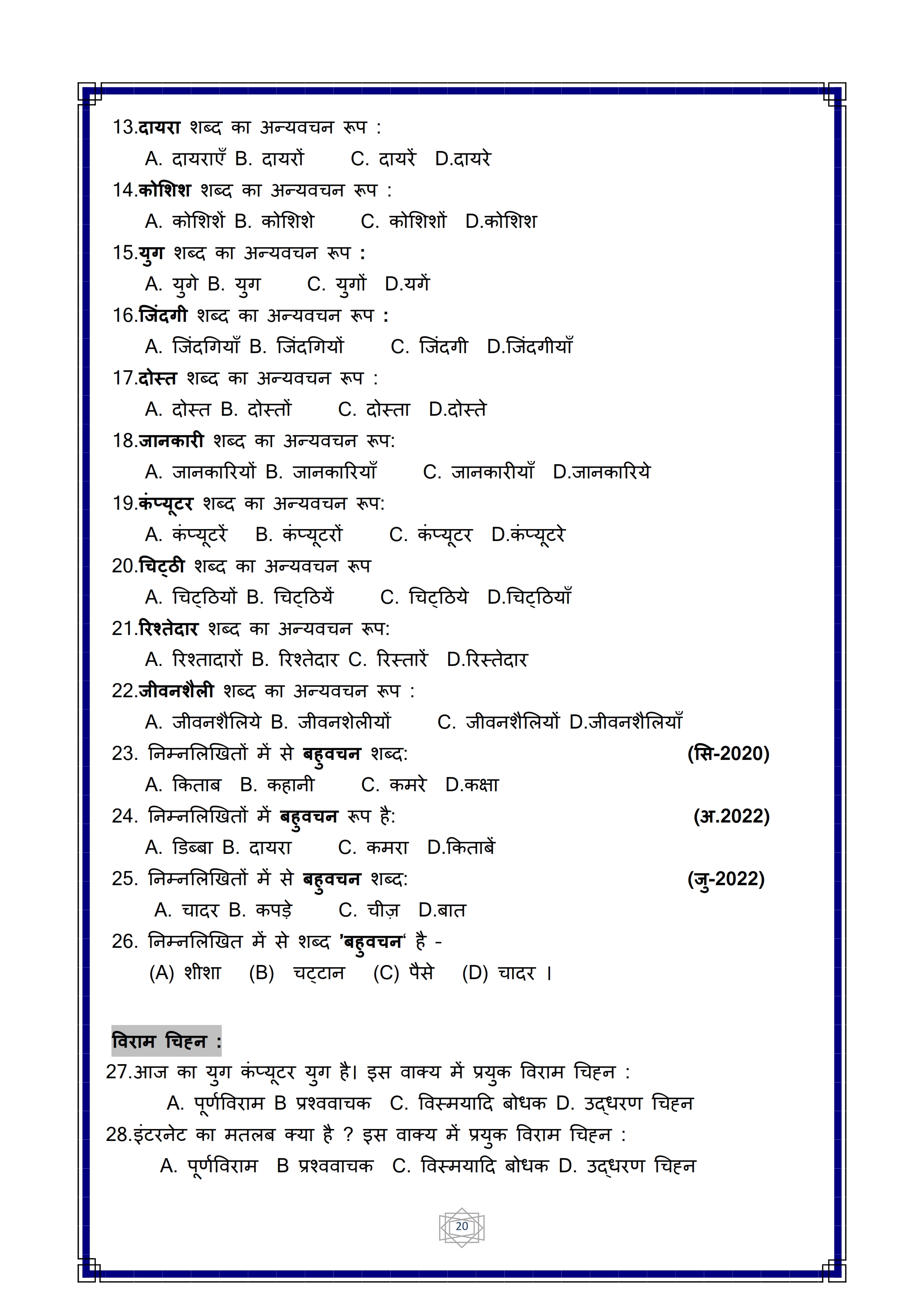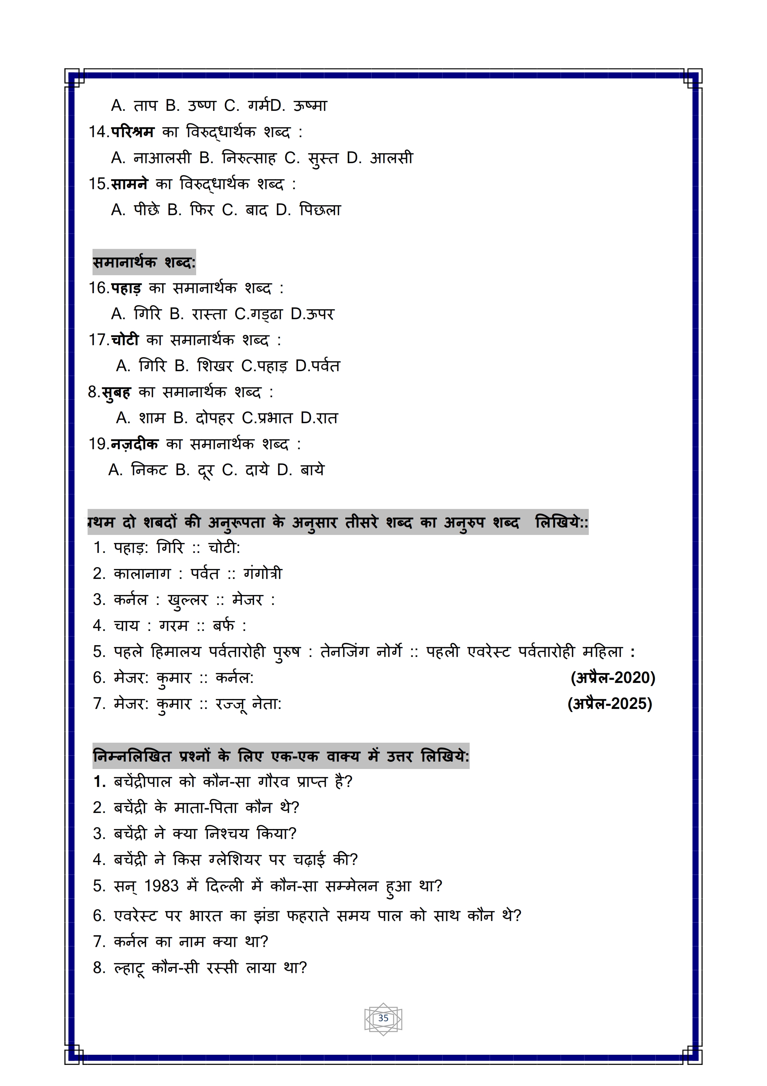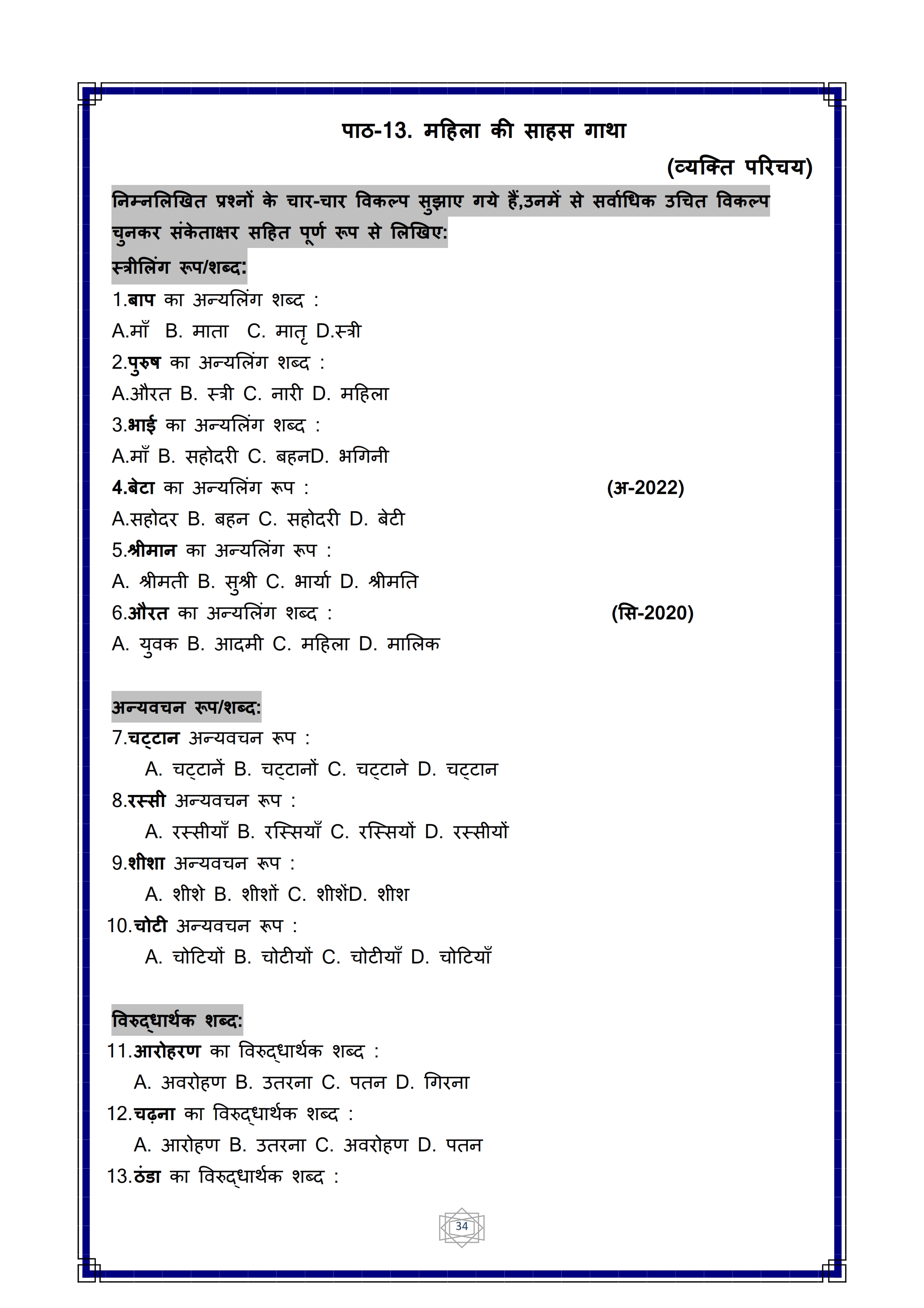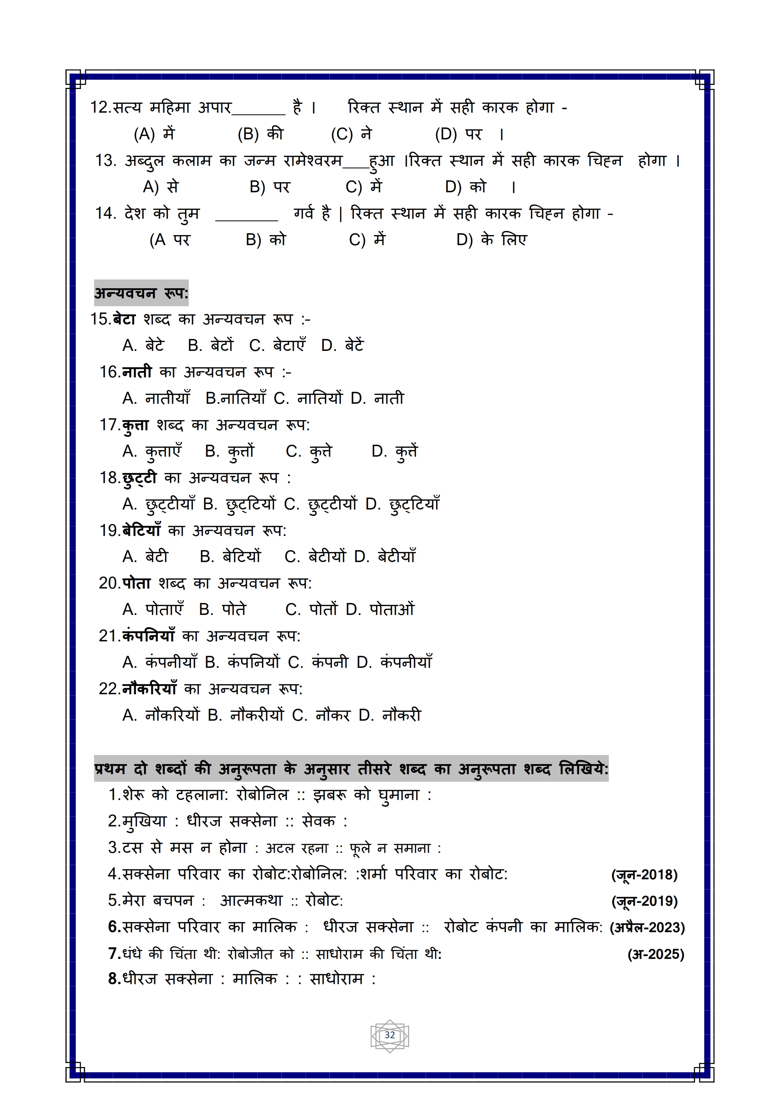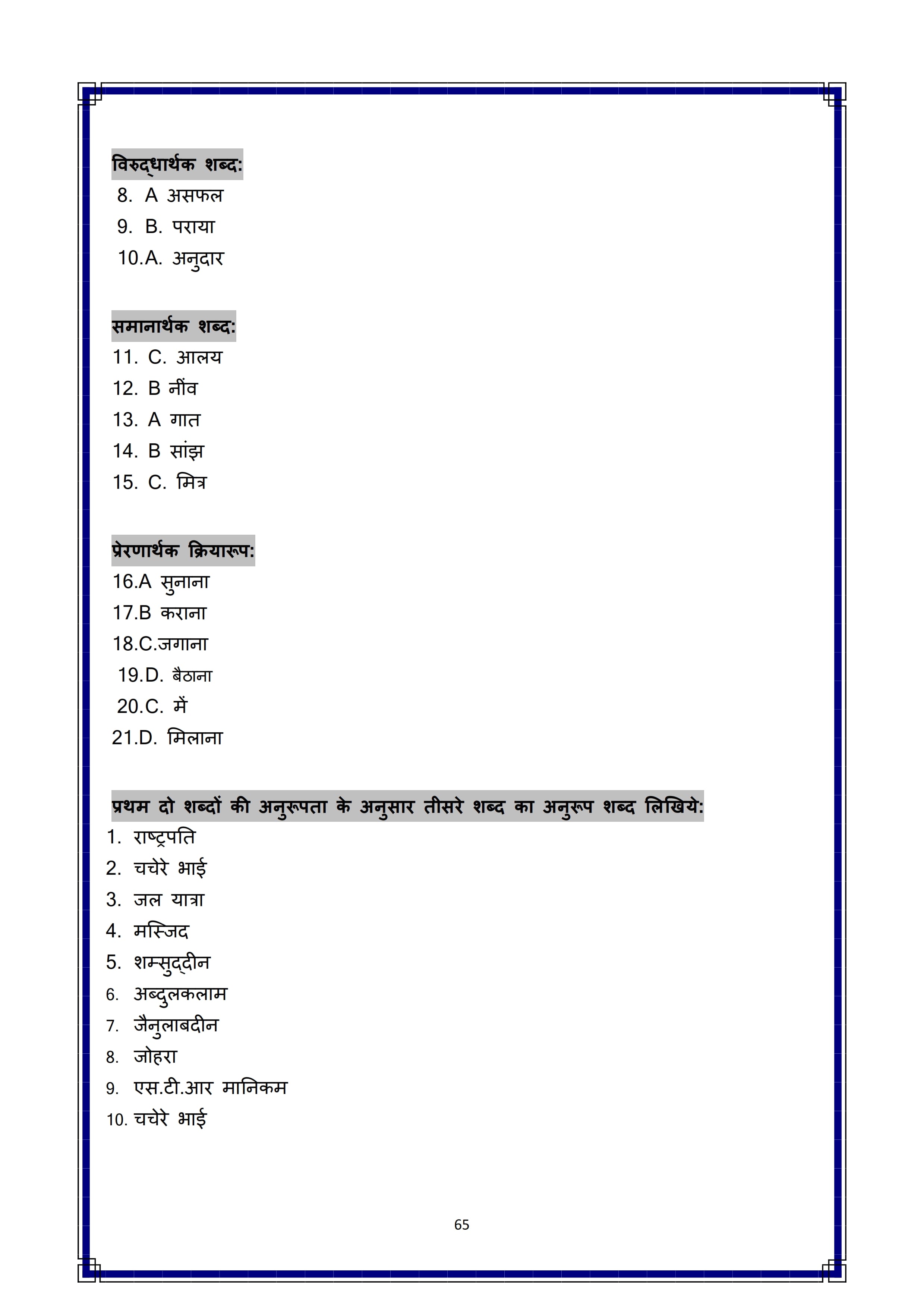 Karnataka SSLC Hindi Question Bank