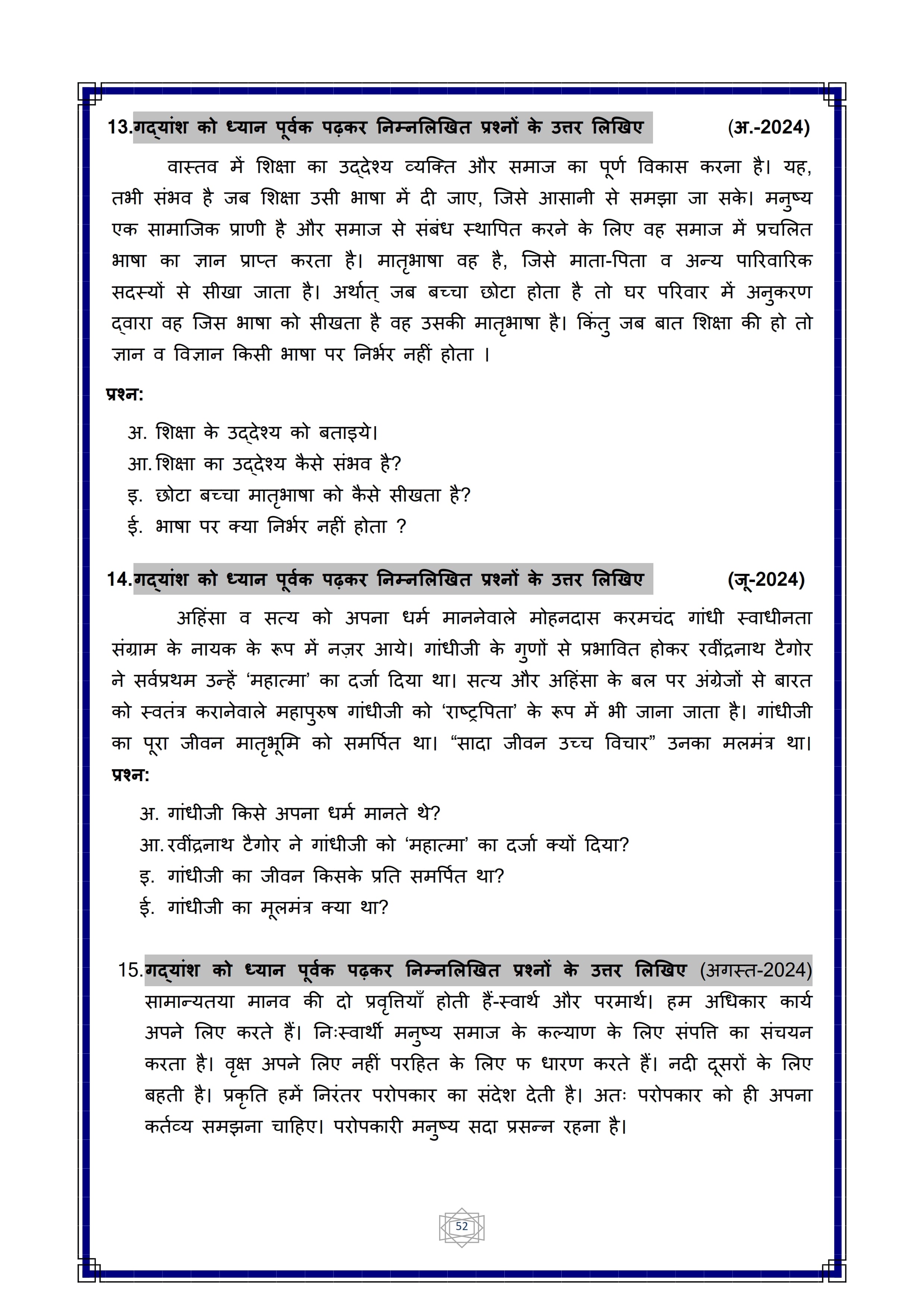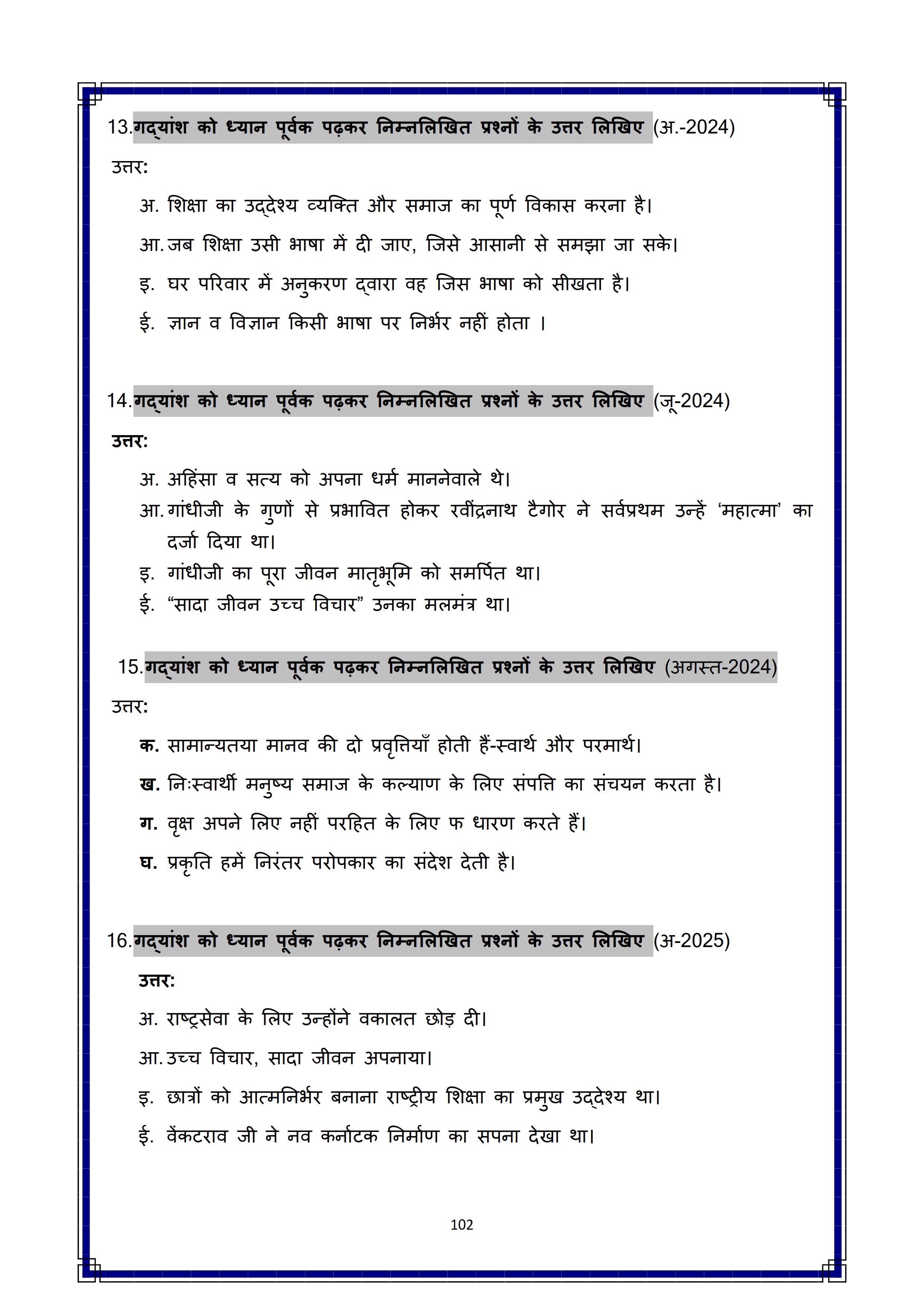 Here are the links for downloading the Hindi Question Bank. Candidates can utilize these karnataka 10 study resources to assess their current performance levels and identify areas for improvement. This will assist students in recognizing their strengths and weaknesses, contributing to more effective learning.