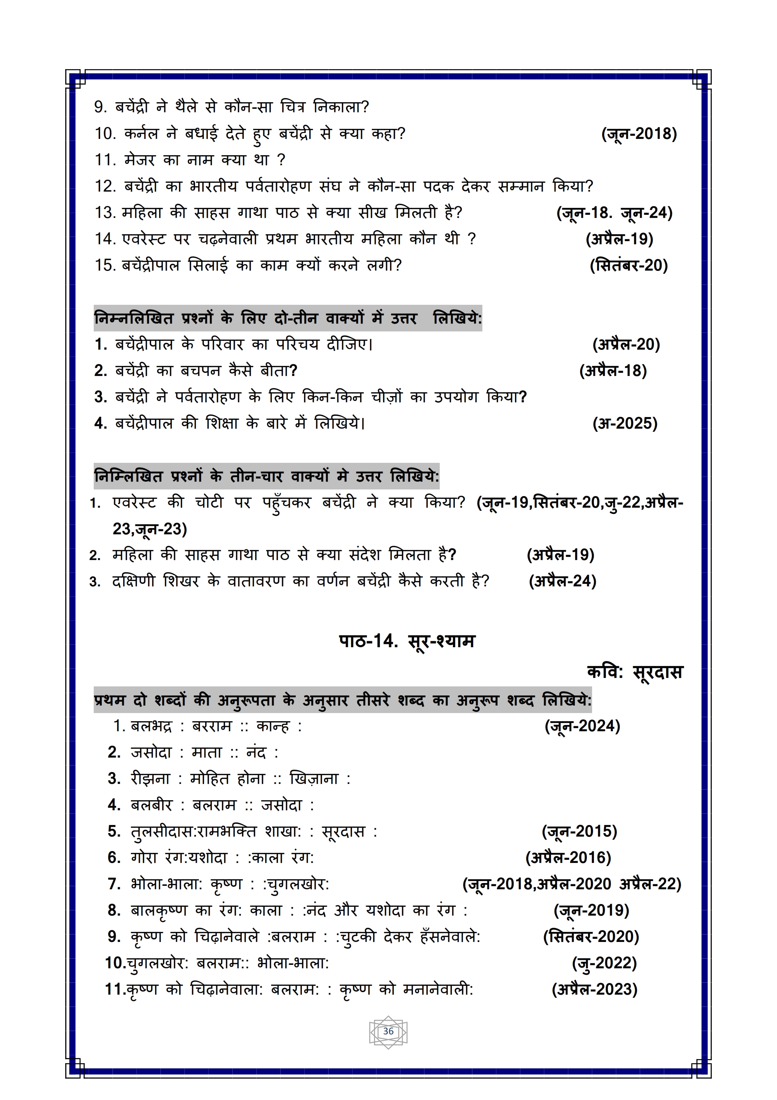 Class 10 Hindi Question Bank Download Link – Click Here to Download Hindi Question Bank PDF
