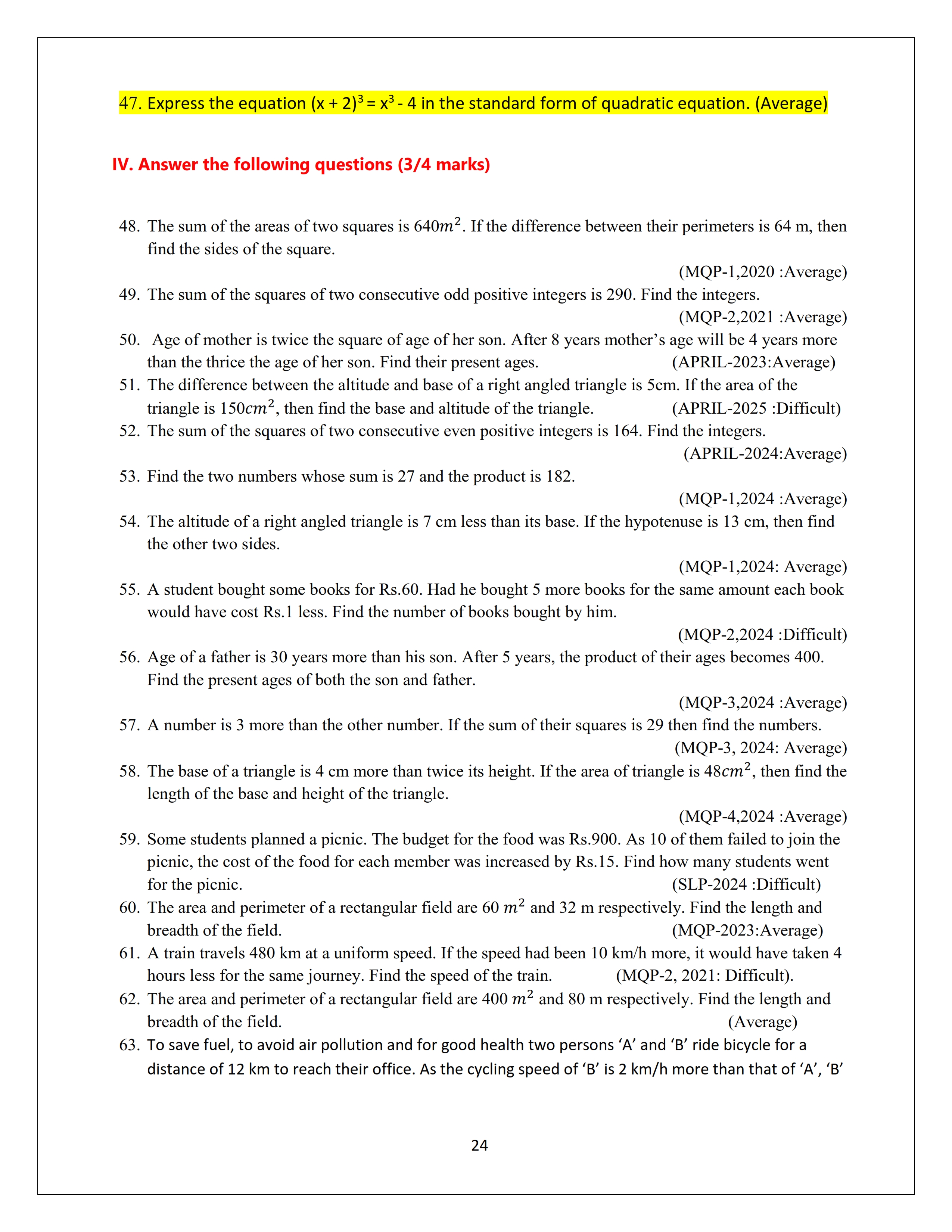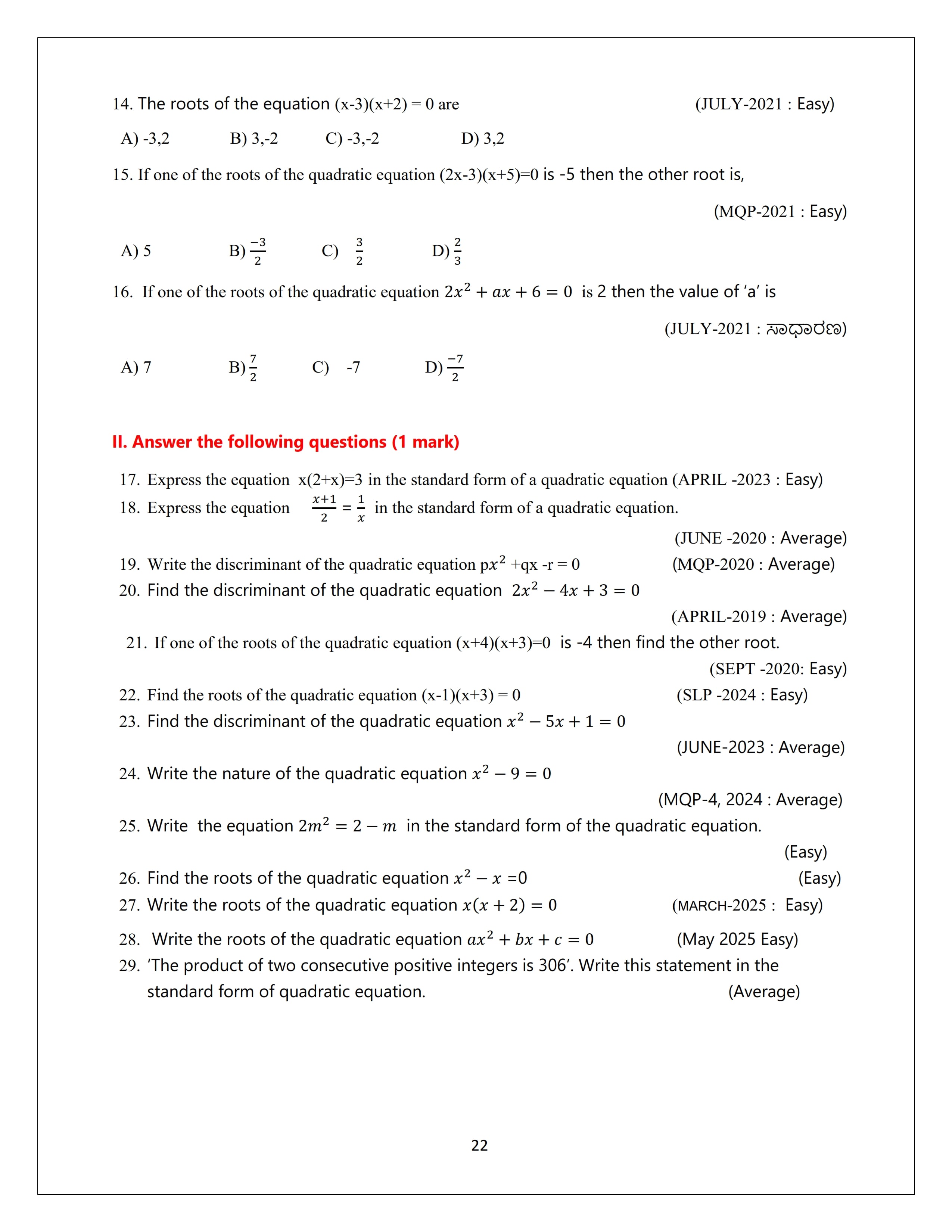 Karnataka State Board SSLC Maths Question Bank is available for download in PDF format. Simply click the download option to save the file. We recommend that students solve the provided Maths question bank to improve their exam scores and plan their preparation strategies effectively.