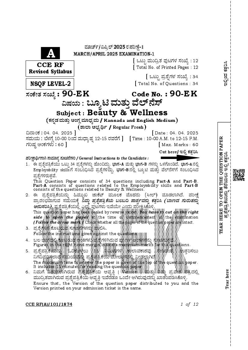 Karnataka SSLC Question Paper 2025 Beauty and Wellness View Download