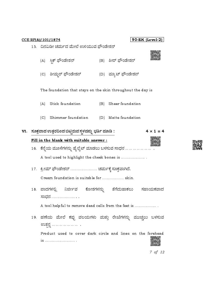 The Karnataka Board Question Paper of class 10th (SSLC) for Beauty & Wellness is as follows.