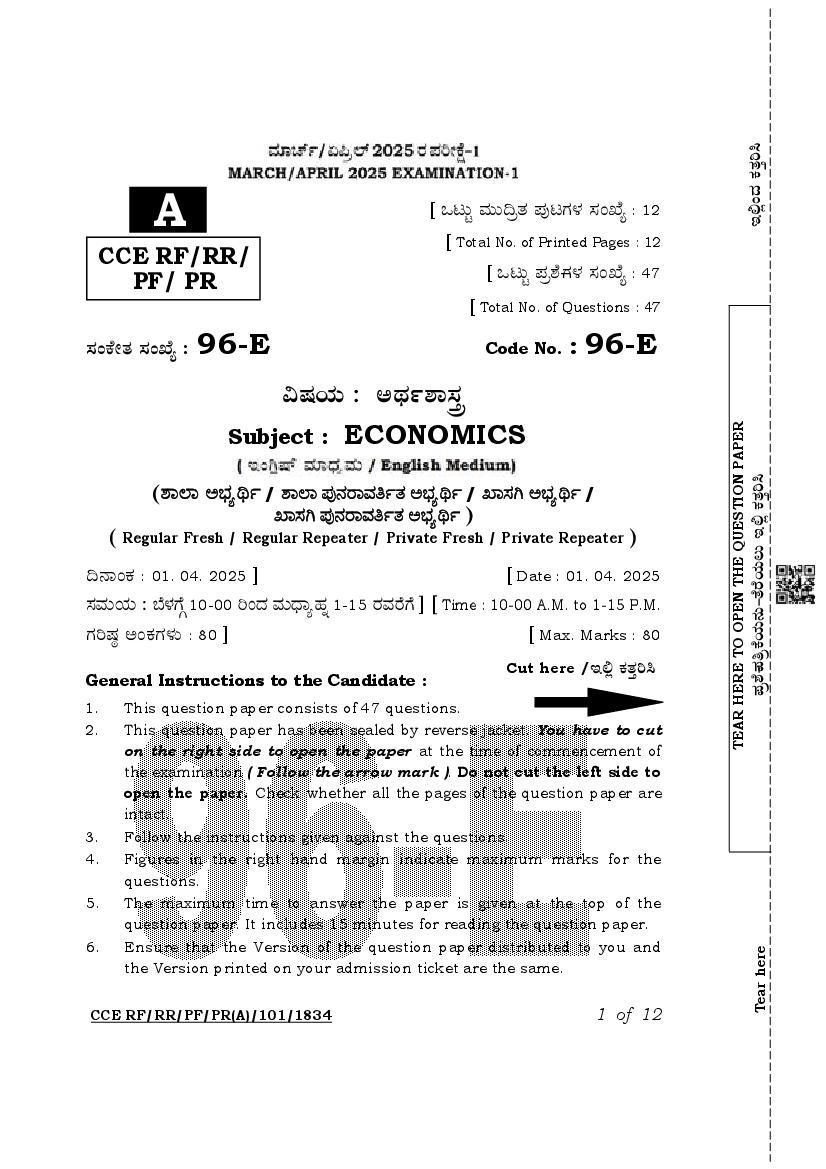 Karnataka SSLC Economics Question Paper 2025 PDF Download Link – Click Here to Download Question Paper PDF | Download Answer Key