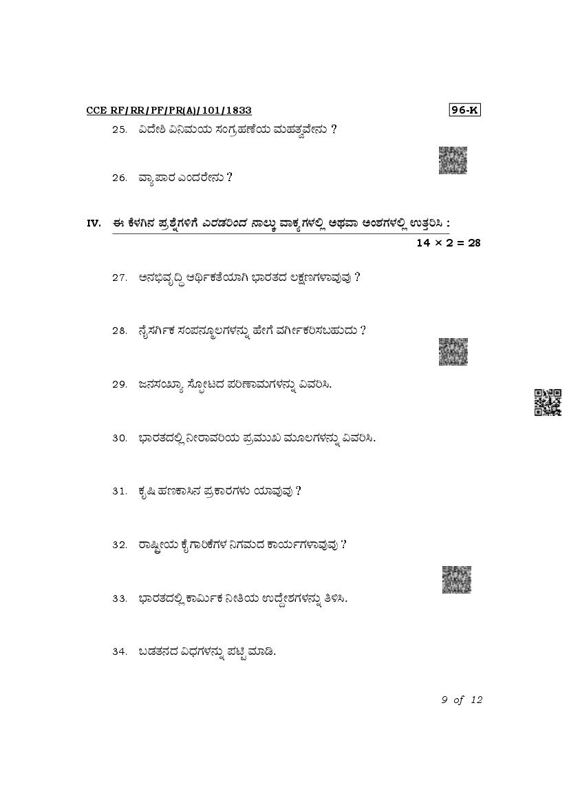 The Karnataka Board Question Paper of class 10th (SSLC) for Economics is as follows.
