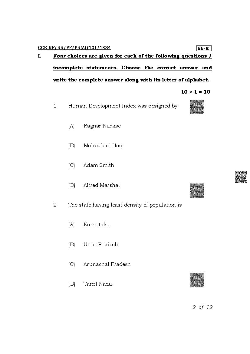The latest released complete class 10 Economics question paper PDF is as given below.