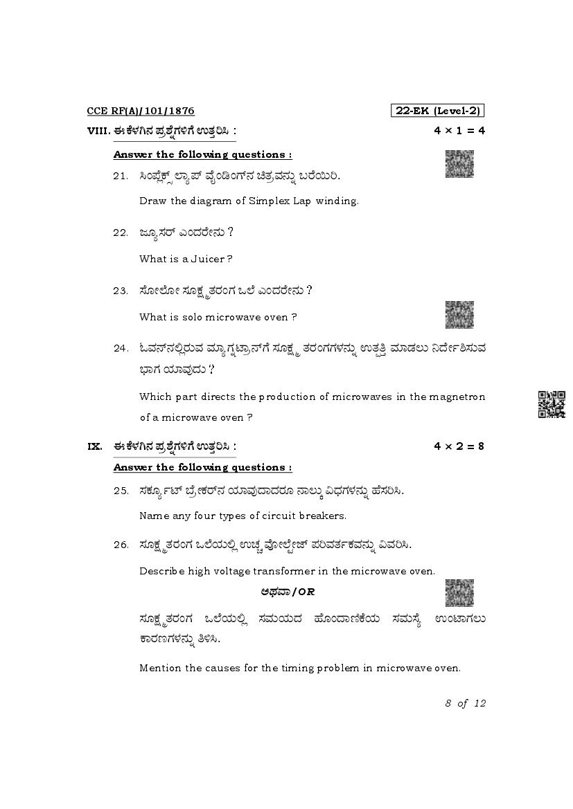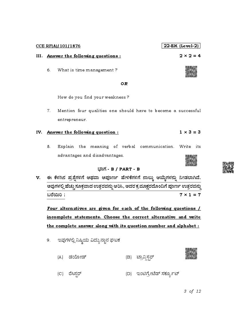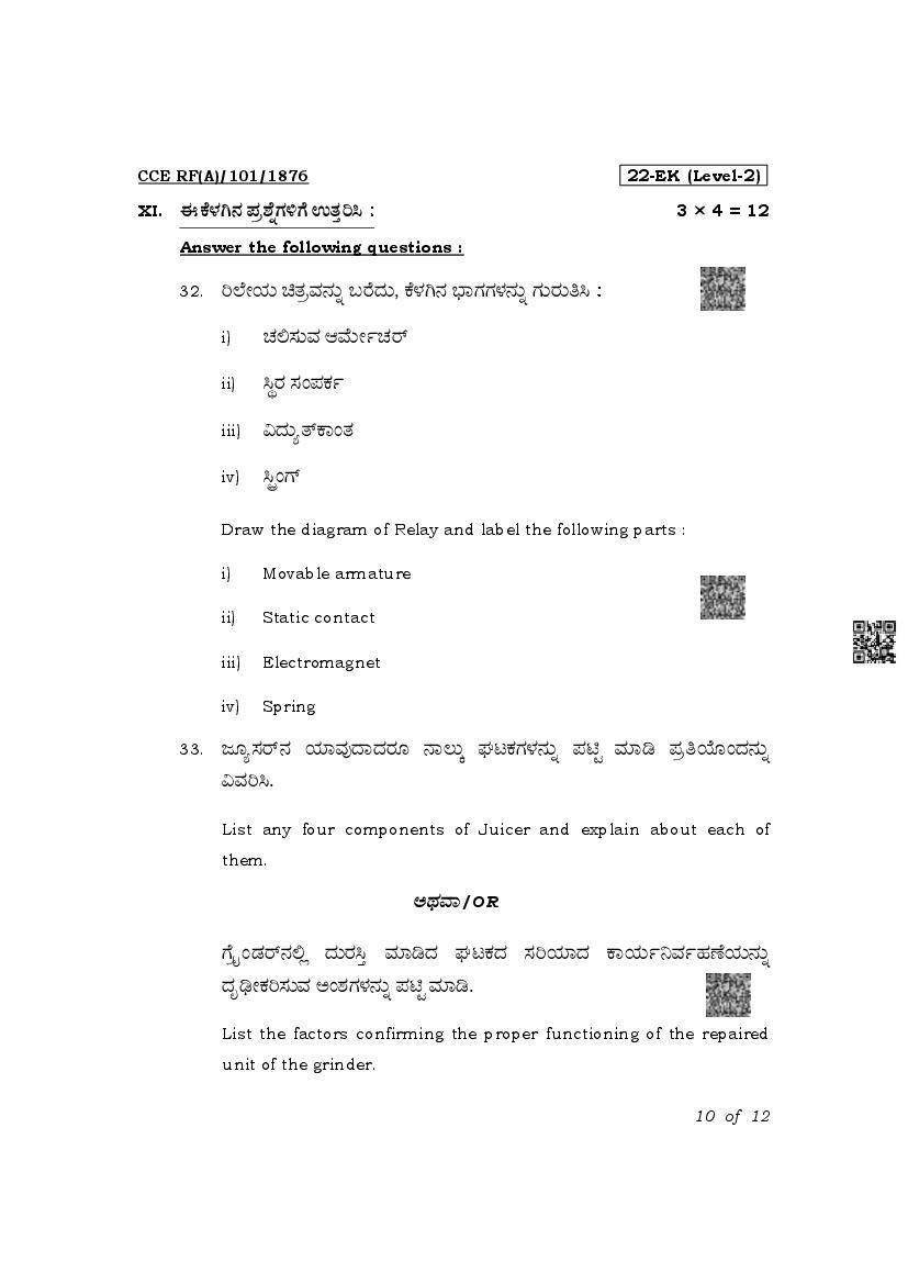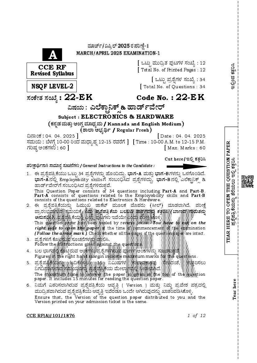 Karnataka SSLC Question Paper 2025 Electronics and Hardware View Download