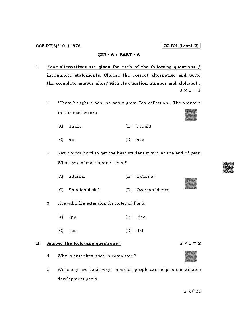 Karnataka SSLC Electronics and Hardware Question Paper 2022 PDF Download Link – Click Here to Download Question Paper PDF