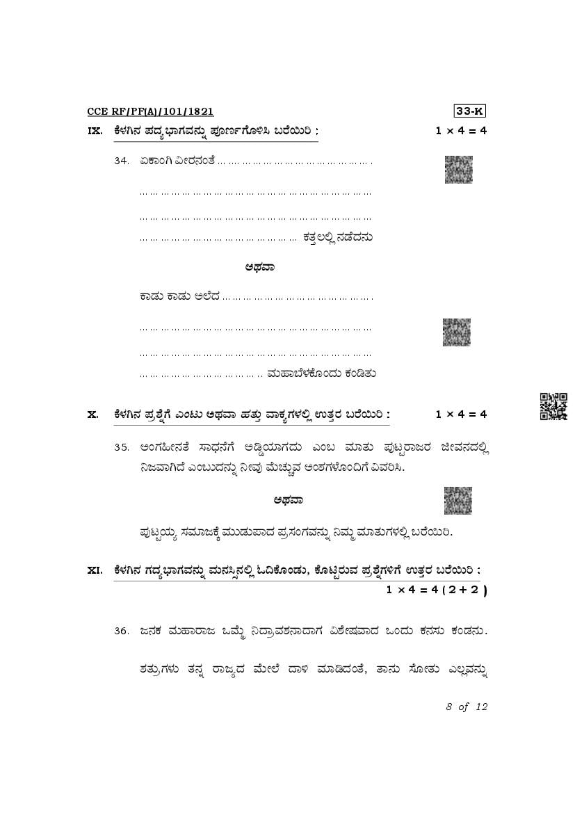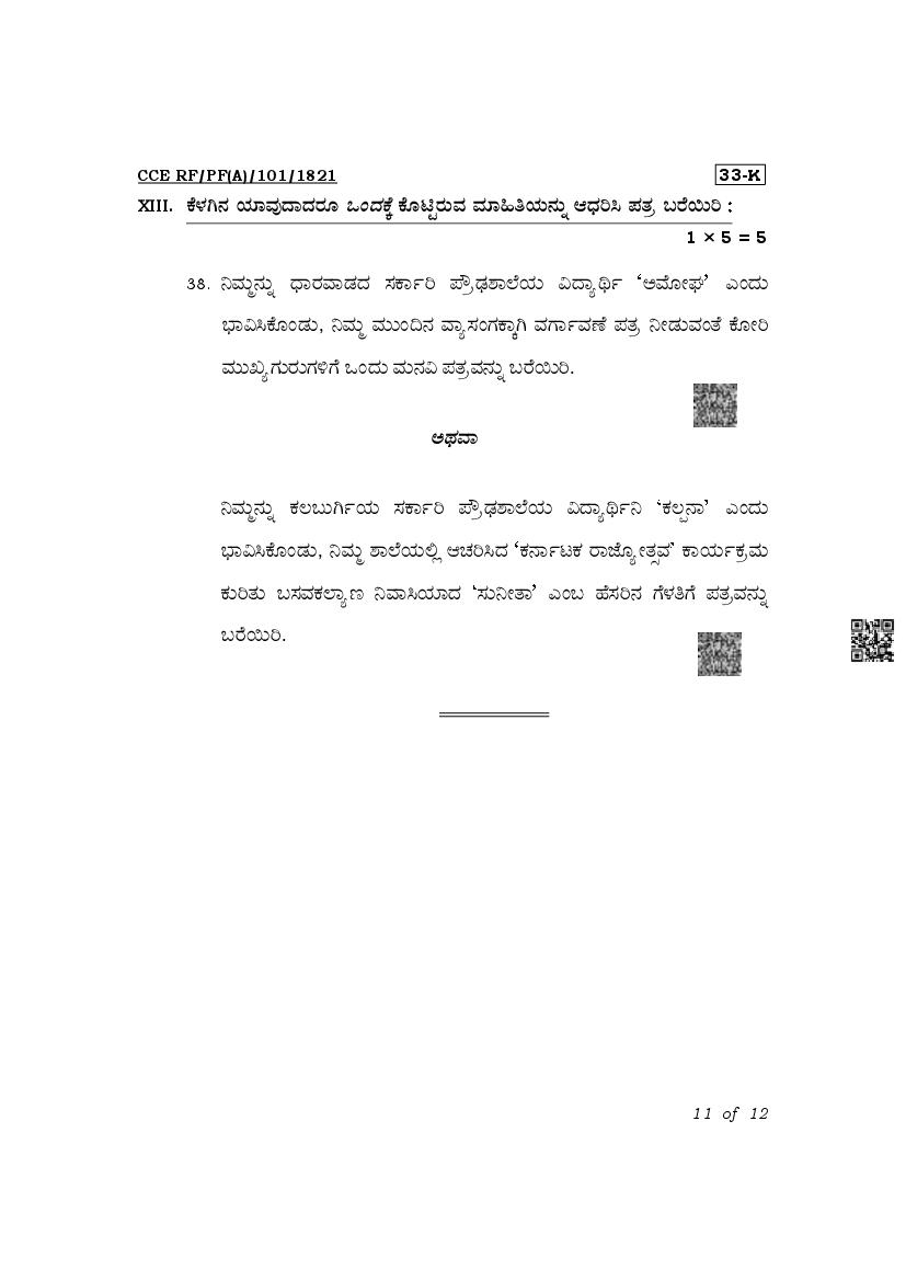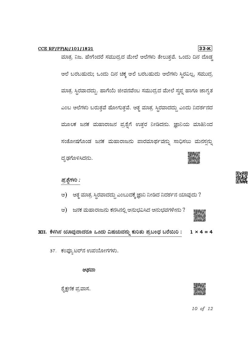 The latest released complete class 10 Kannada Second Language question paper PDF is as given below.
