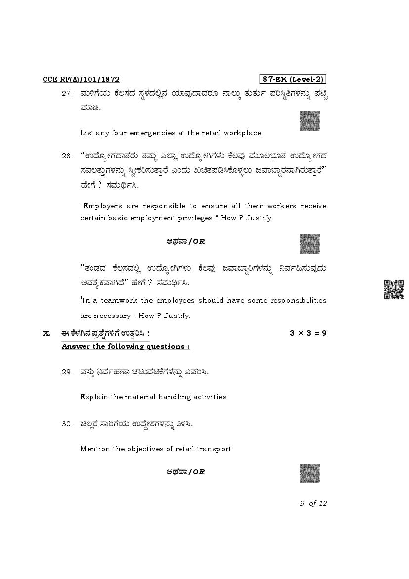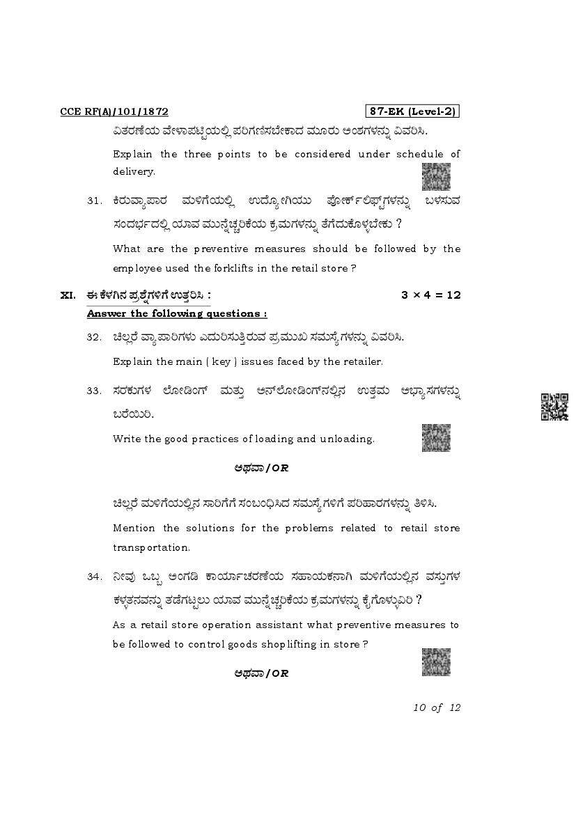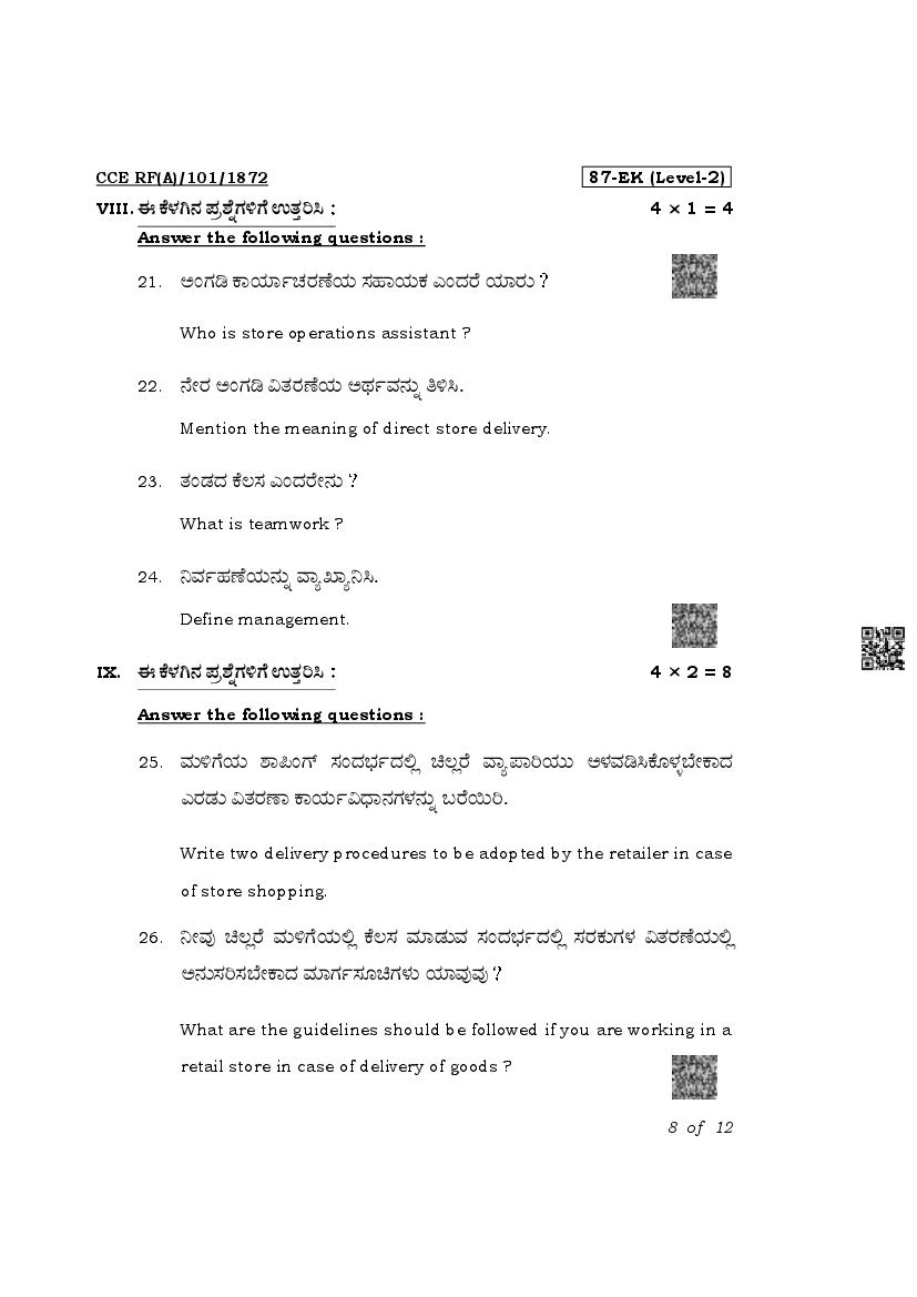 The Karnataka Board Question Paper of class 10th (SSLC) for Retail is as follows.