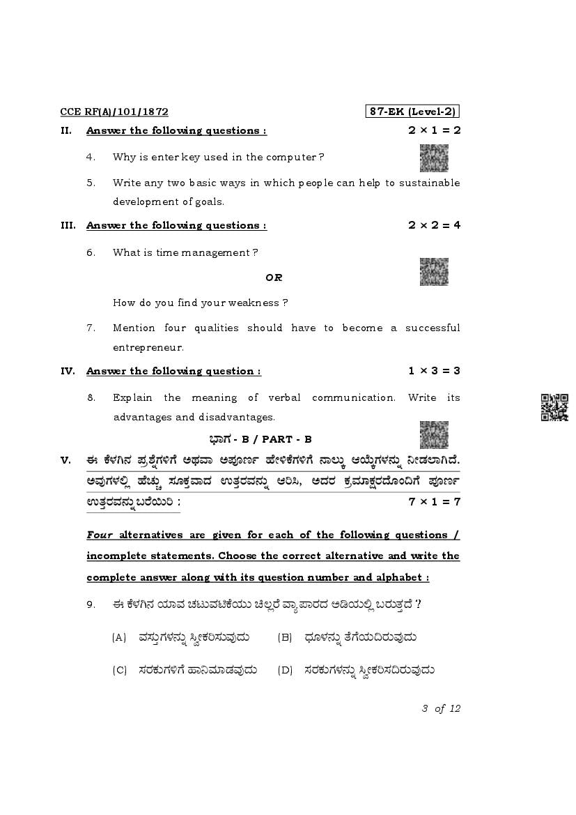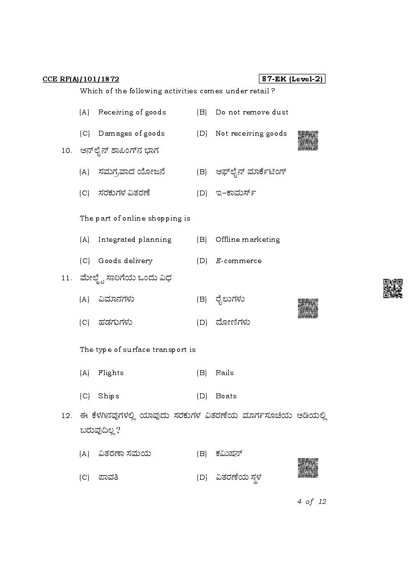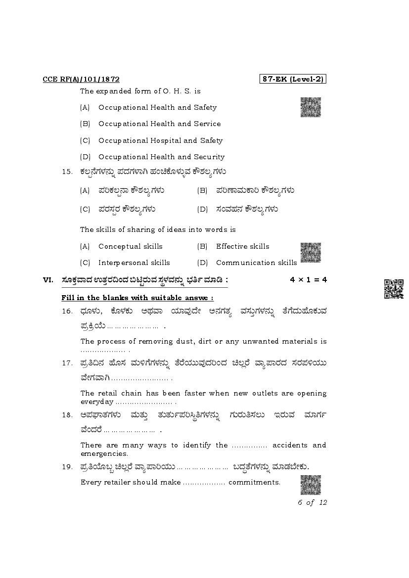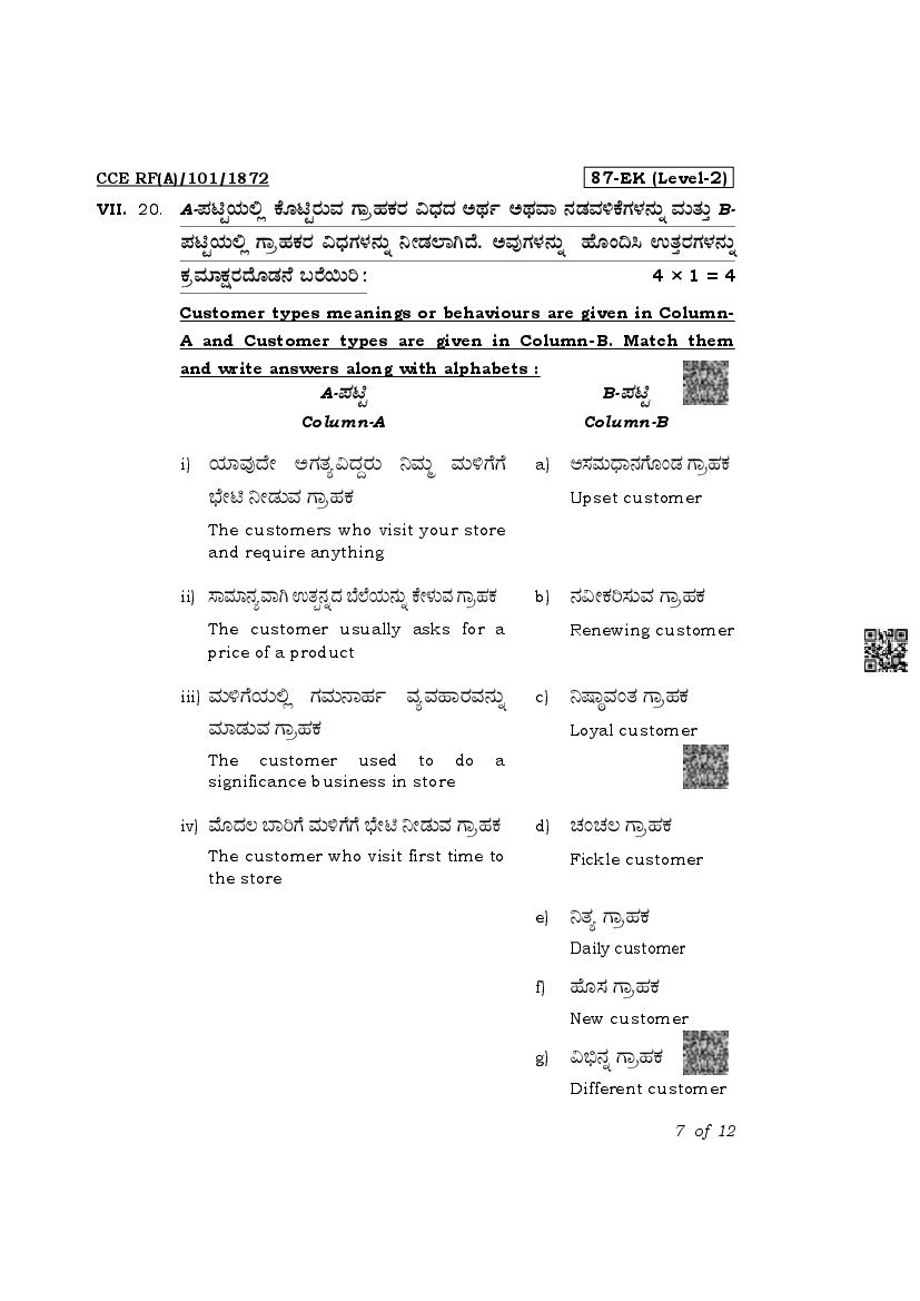 The Karnataka Board Question Paper of class 10th (SSLC) for Retail is as follows.