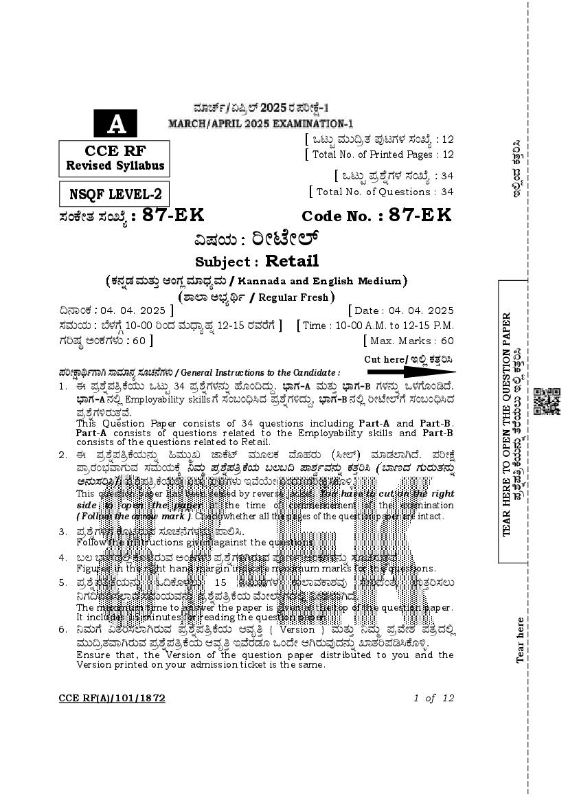 Karnataka SSLC Retail Question Paper 2025 PDF