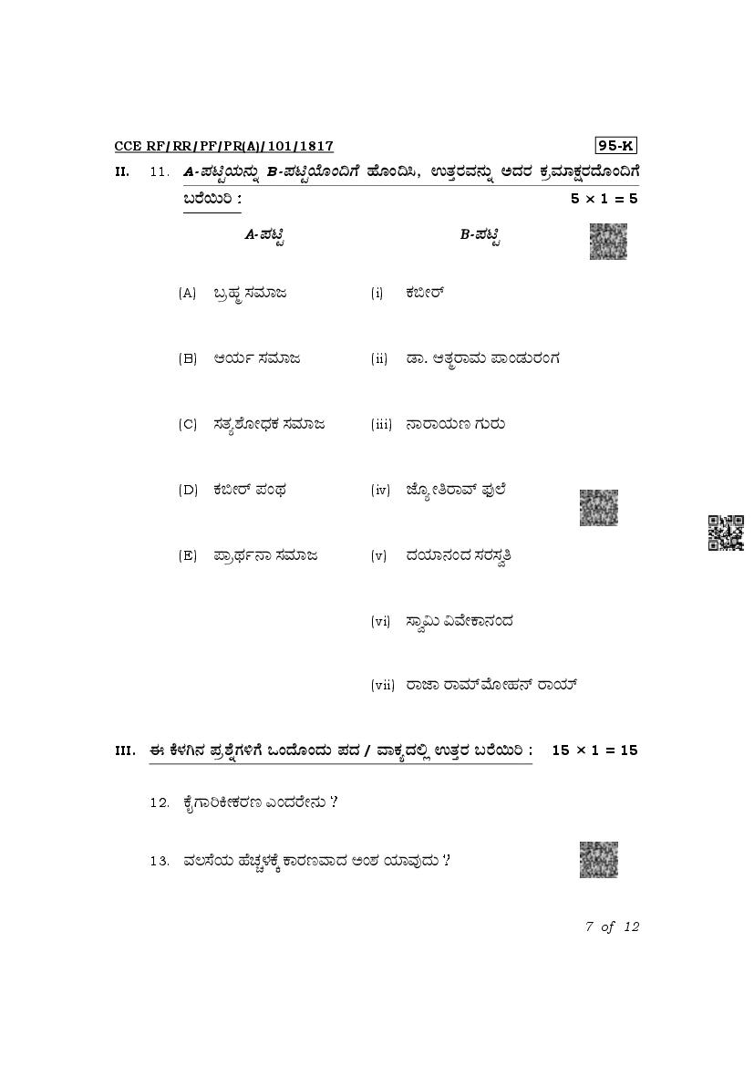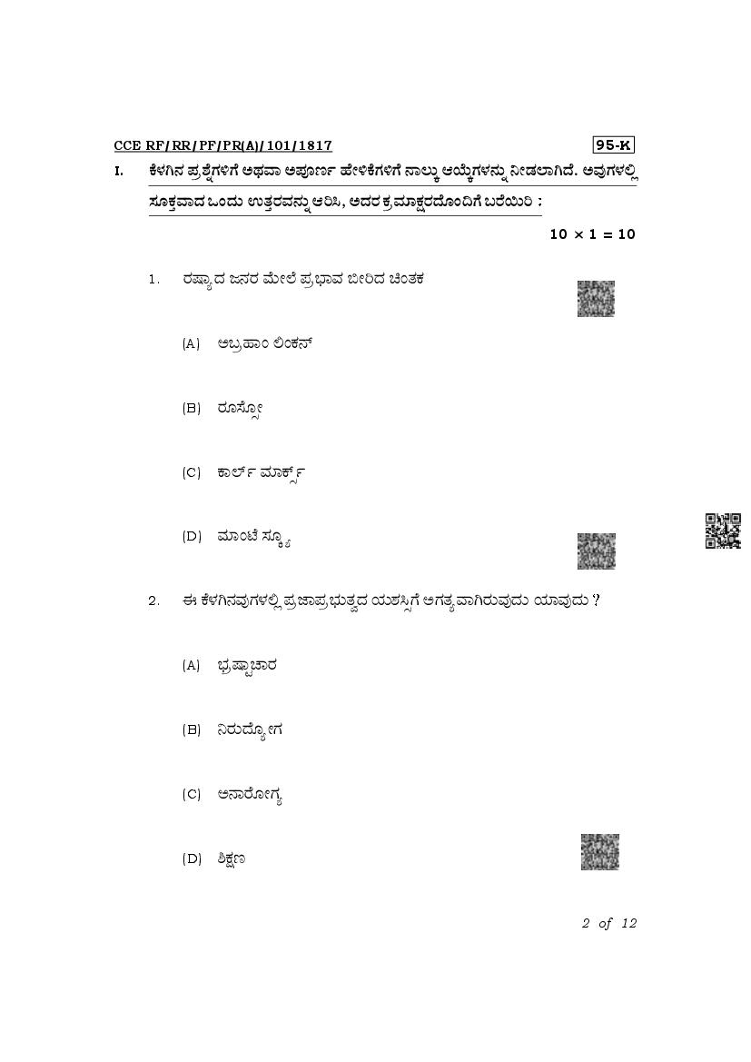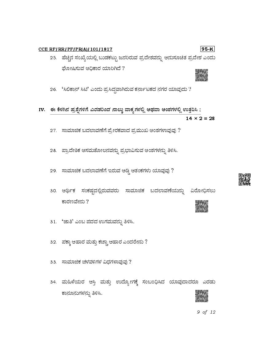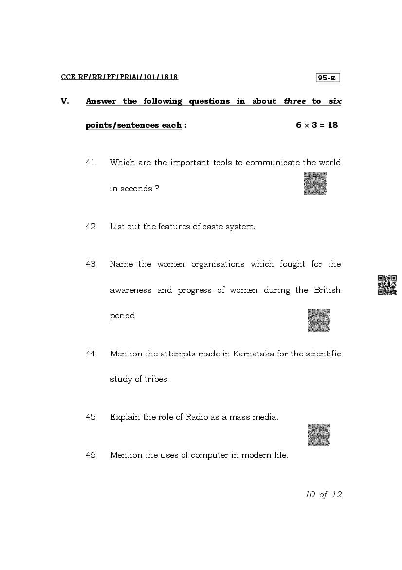 The Karnataka Board Question Paper of class 10th (SSLC) for Sociology is as follows.