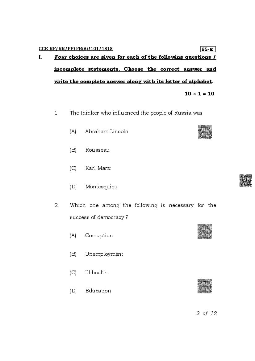 The latest released complete class 10 Sociology question paper PDF is as given below.