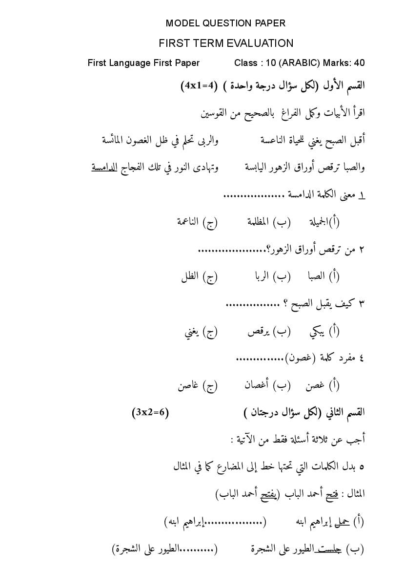 Students can download the Class 10 Arabic First Term Exam Model Question Paper 2026 PDF and practice regularly to improve their exam performance.