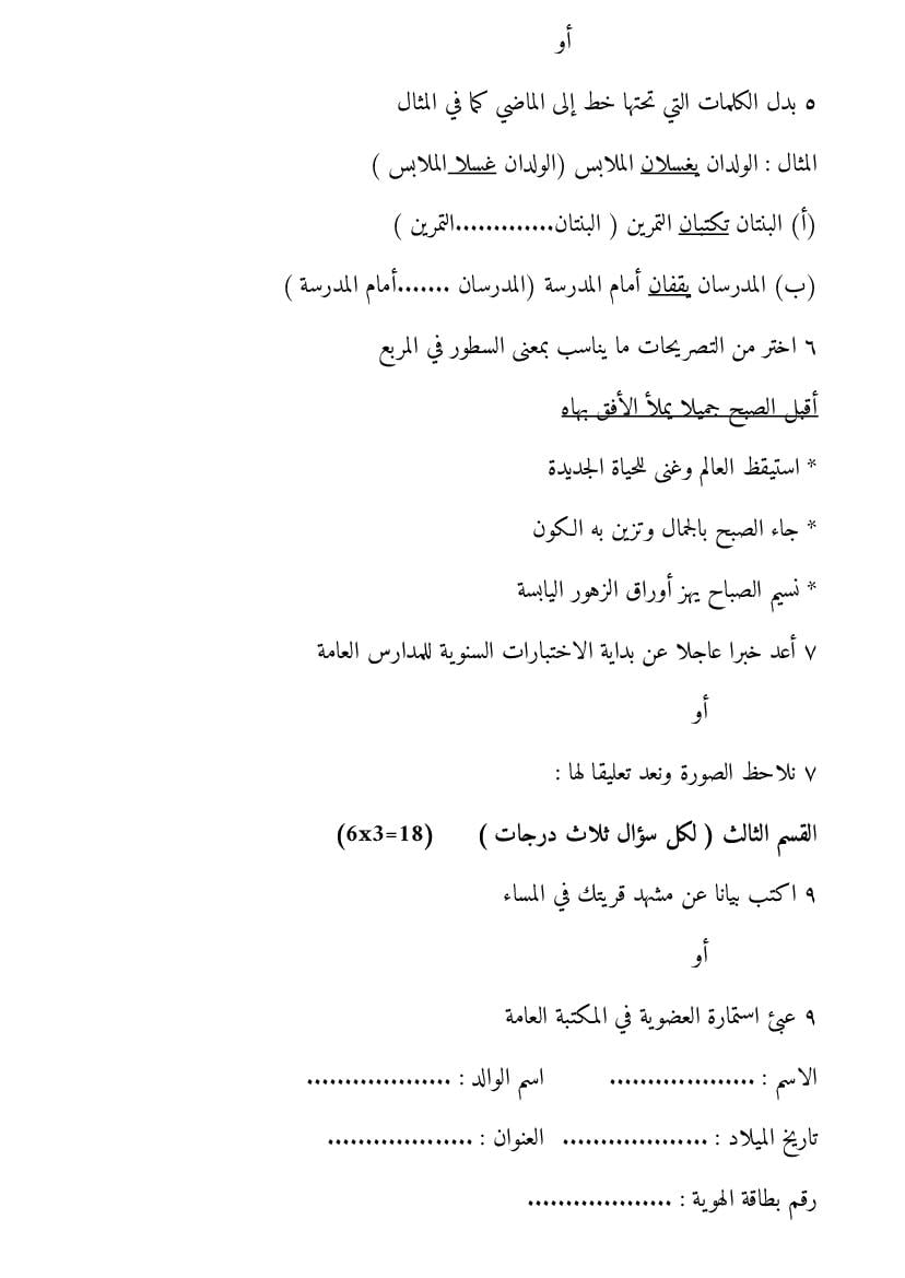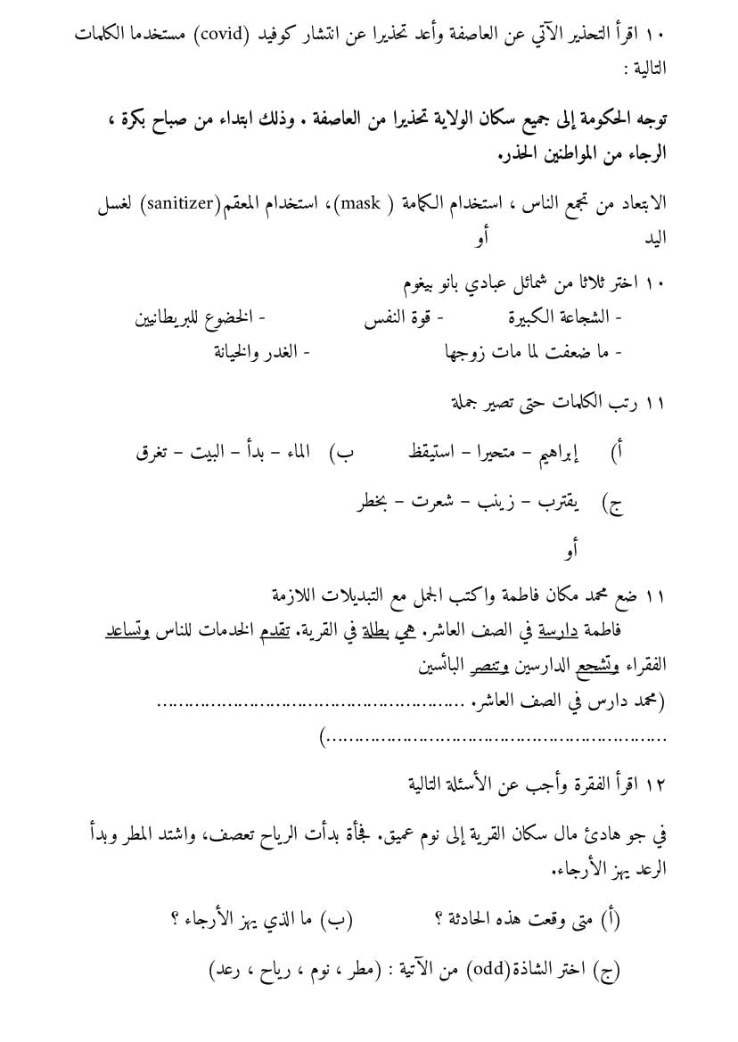 • Kerala 10th Standard Arabic Sample Paper PDF