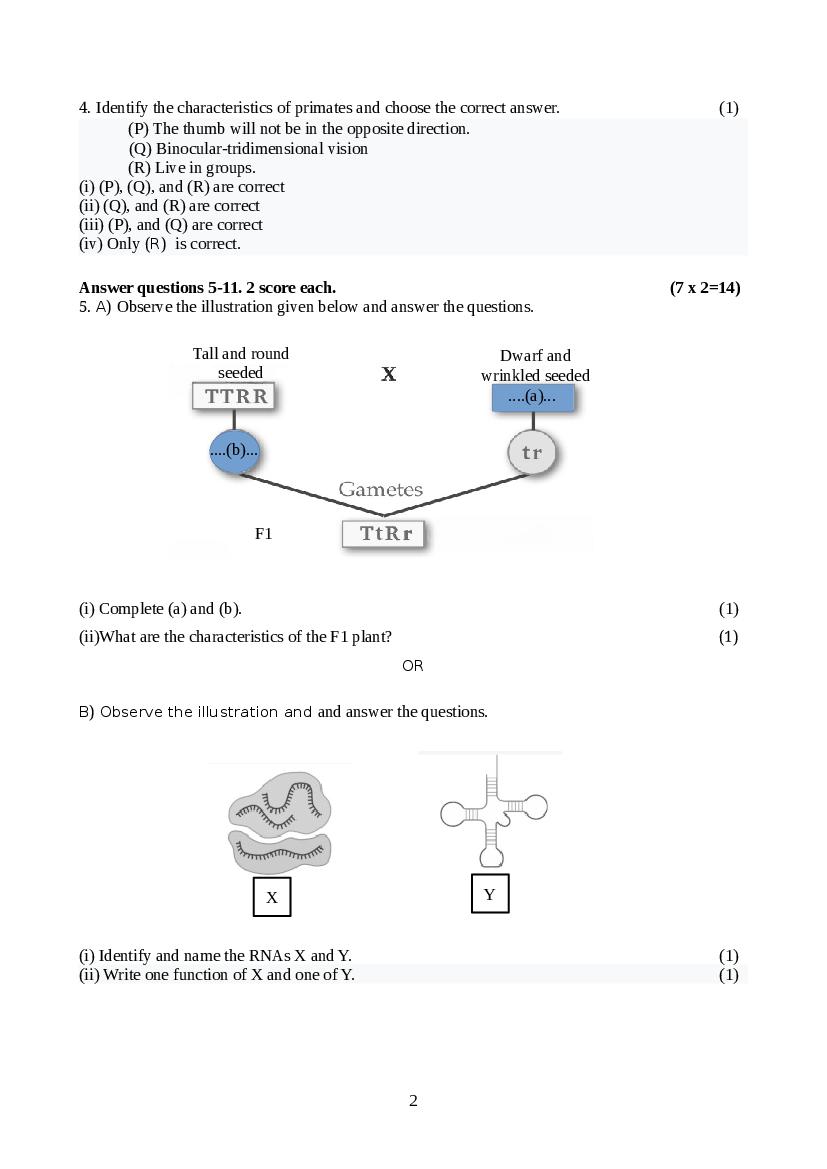 - Kerala Std 10 Biology Model Question Paper