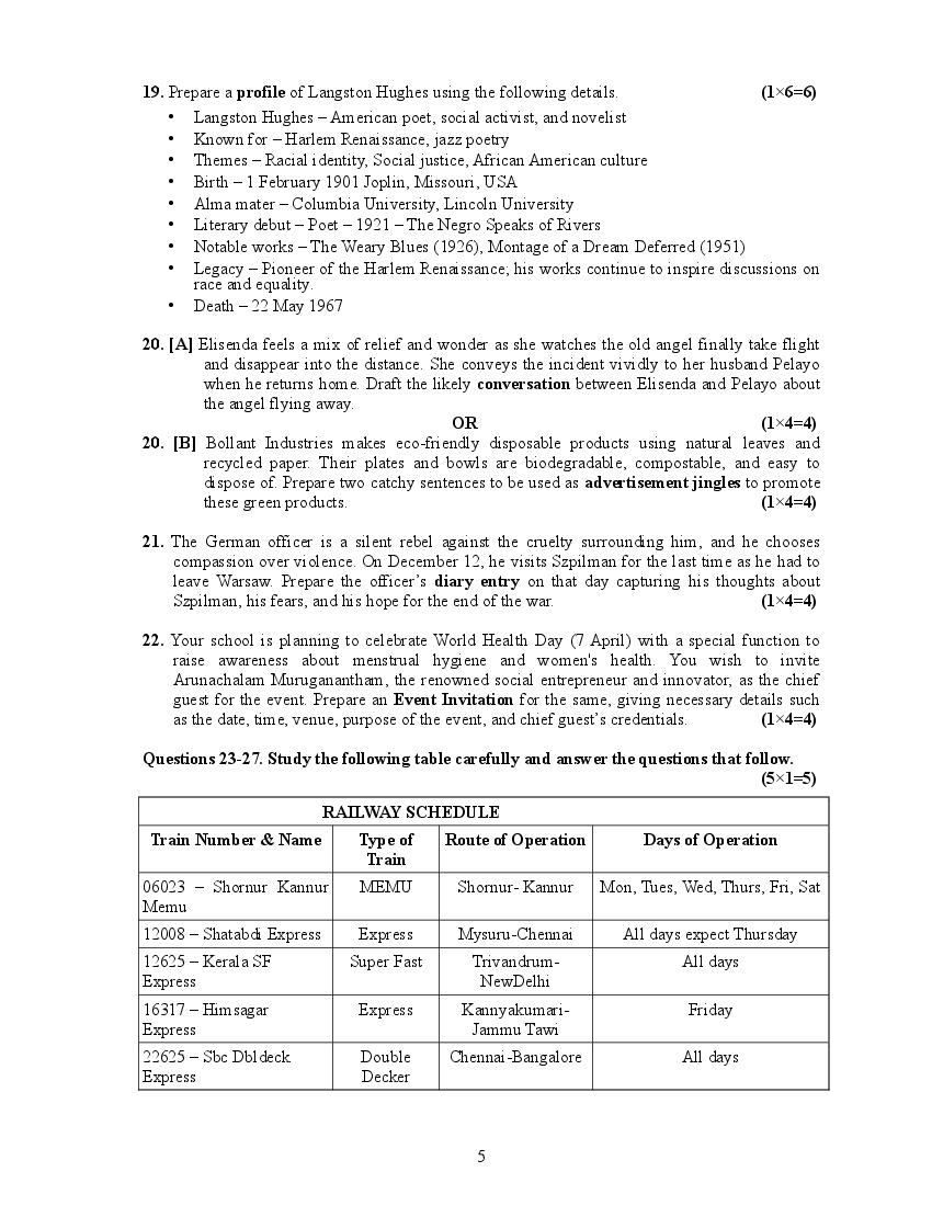 Class 10 English Onam Exam Model Paper 2026 Click Here to Download Model Paper PDF