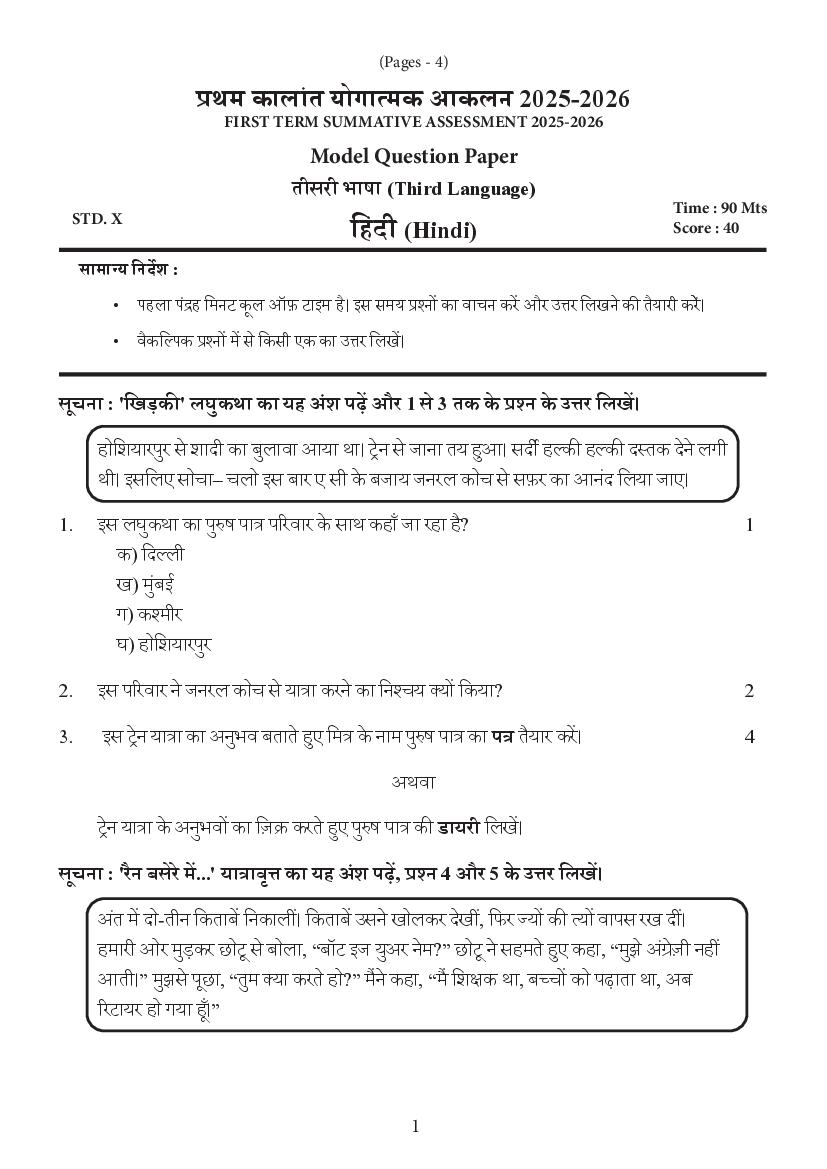 Students can download the Class 10 Hindi First Term Exam Model Question Paper 2026 PDF and practice regularly to improve their exam performance.