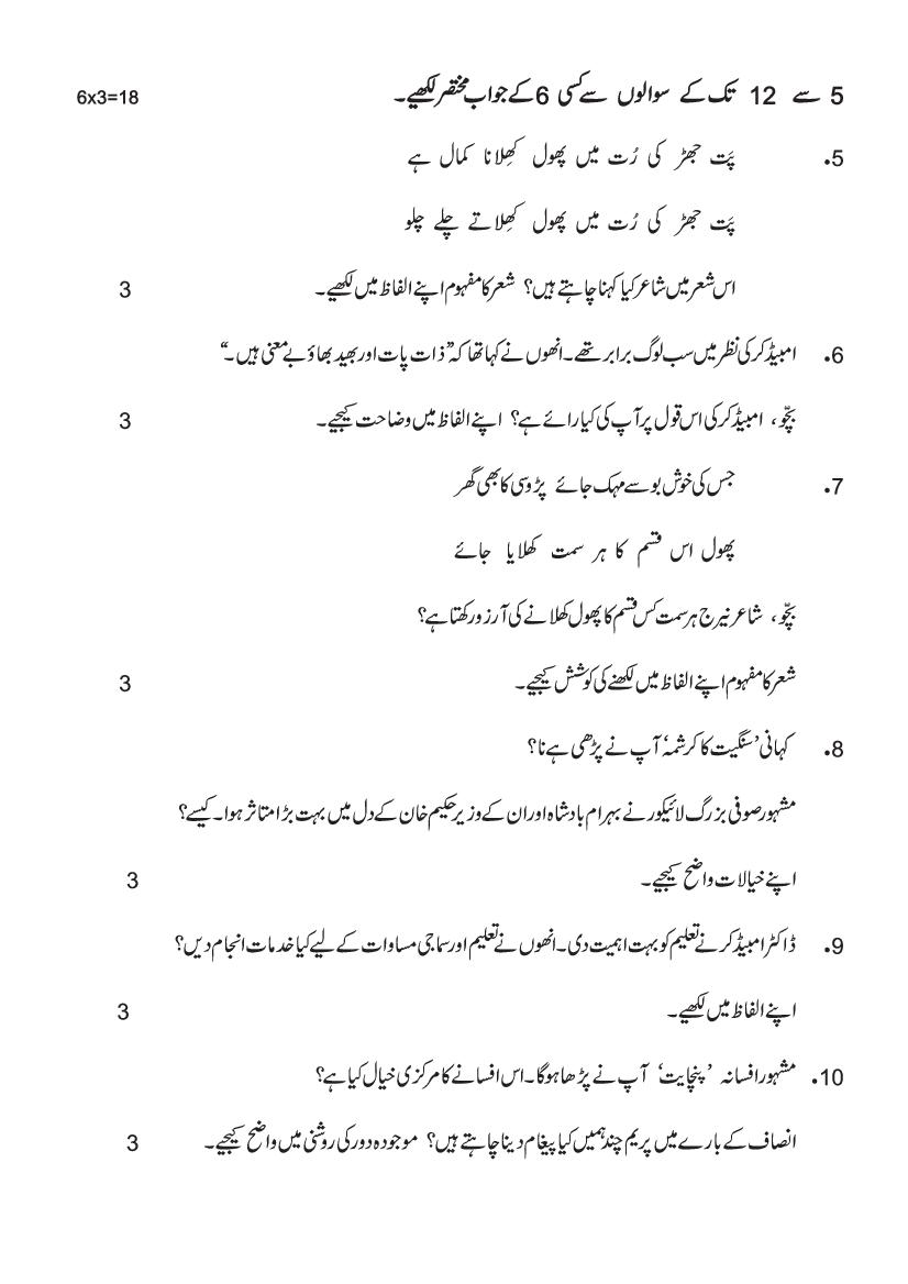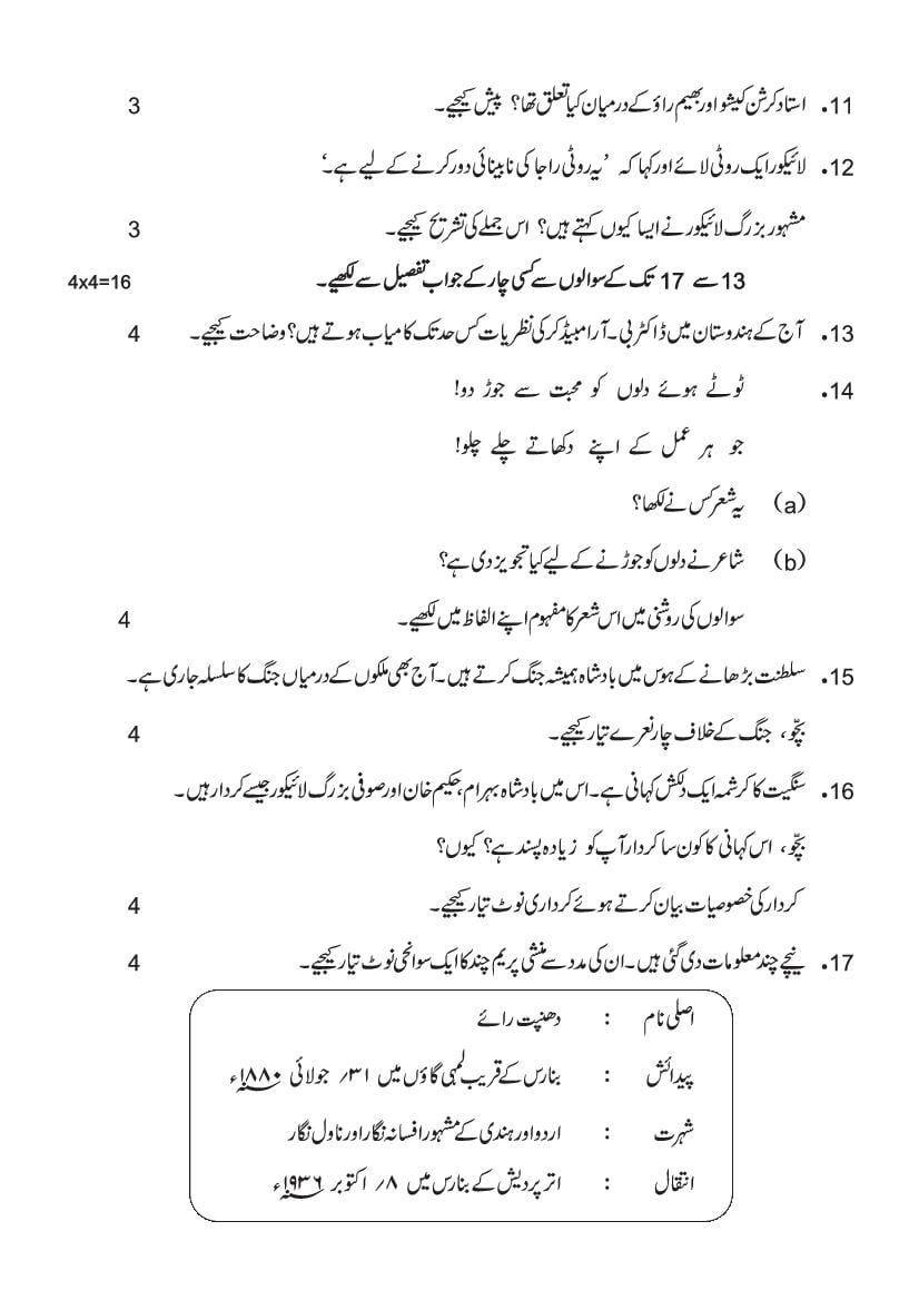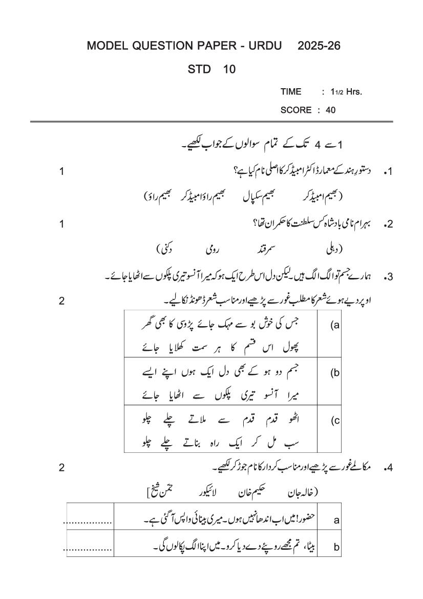 - Kerala 10th Standard Urdu Sample Paper PDF