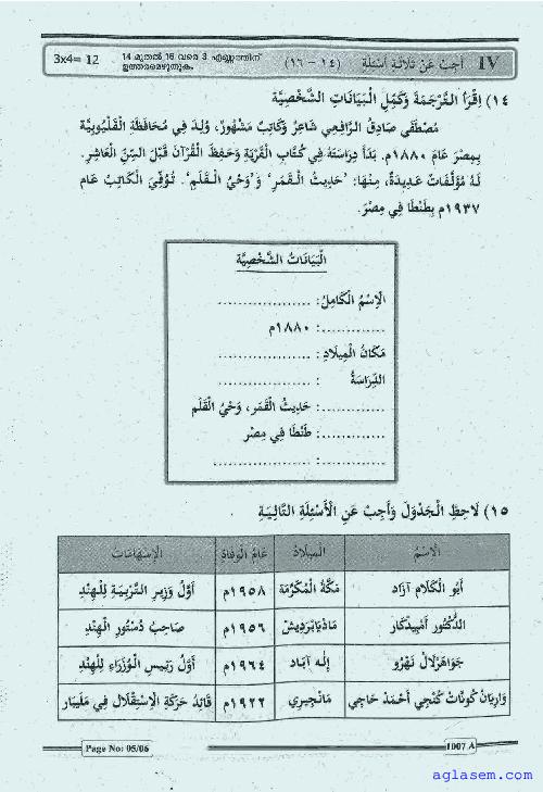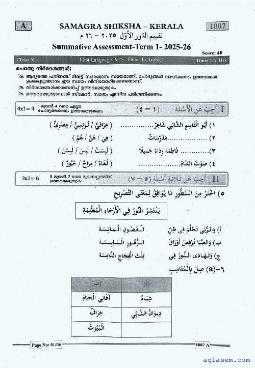 | Paper Here | Kerala Class 10 First Terminal Exam Arabic Question Paper |
