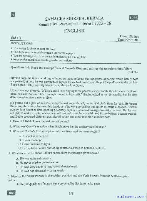 Class 10 English Onam Exam Question Paper 2026 is published after exam. You can download the Kerala Std 10 First Term English Question Paper PDF from here on aglasem. The latest and previous year question paper of Onam Exam for class 10 English helps you prepare for the upcoming first term English test. And after studying with this Kerala Syllabus SSLC English Question Paper, you can download Onam Exam Question Paper for Class 10 for other subjects as well.
