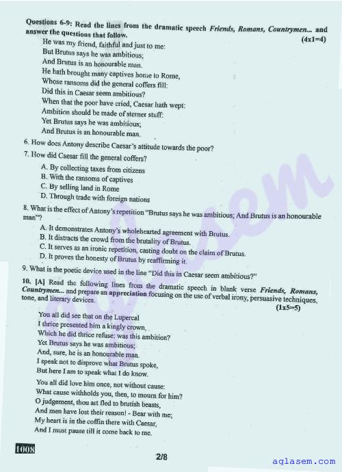 Class 10 English Onam Exam Question Paper 2026