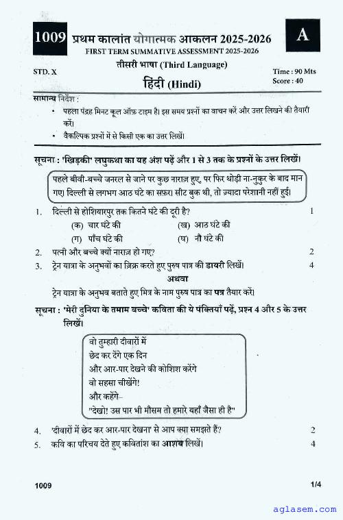 Class 10 Hindi Onam Exam Question Paper 2026 is published after exam. You can download the Kerala Std 10 First Term Hindi Question Paper PDF from here on aglasem. The latest and previous year question paper of Onam Exam for class 10 Hindi helps you prepare for the upcoming first term Hindi test. And after studying with this Kerala Syllabus SSLC Hindi Question Paper, you can download Onam Exam Question Paper for Class 10 for other subjects as well.