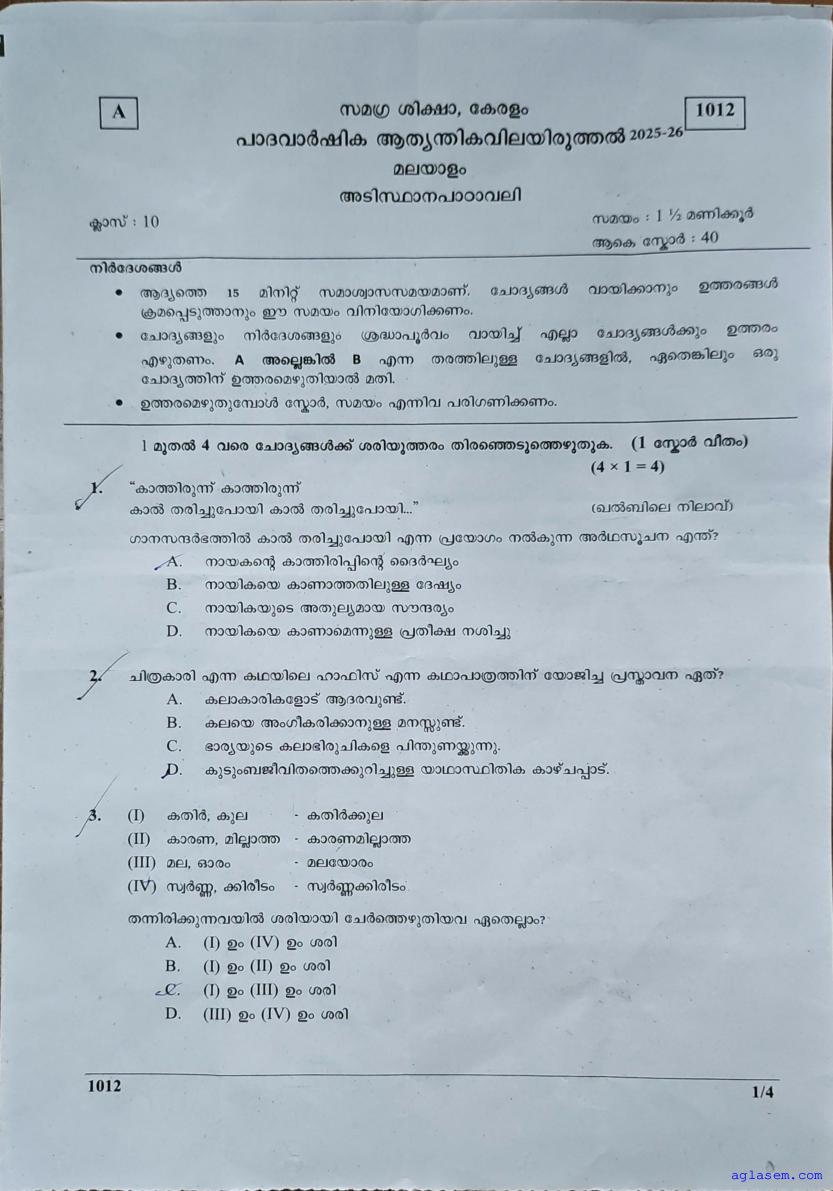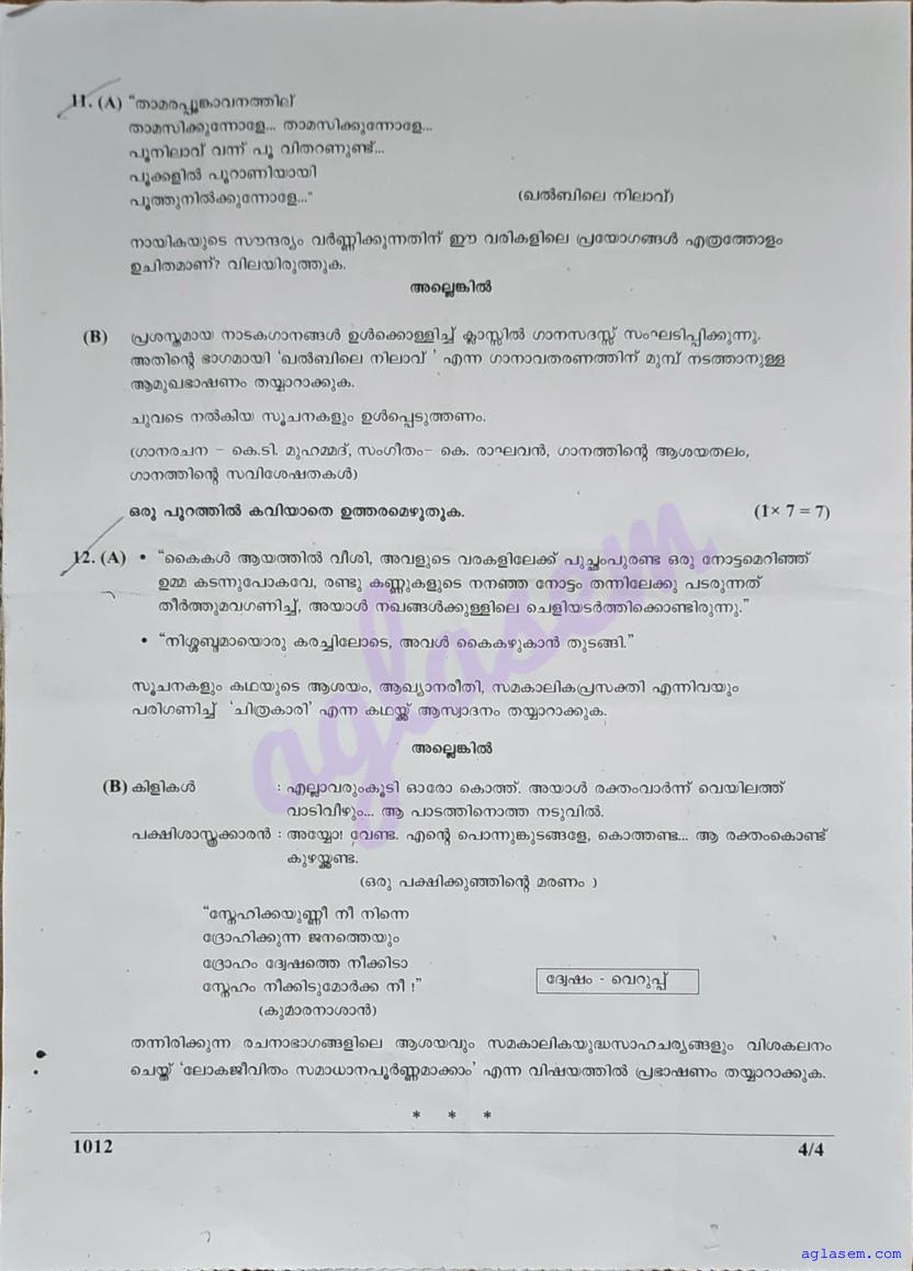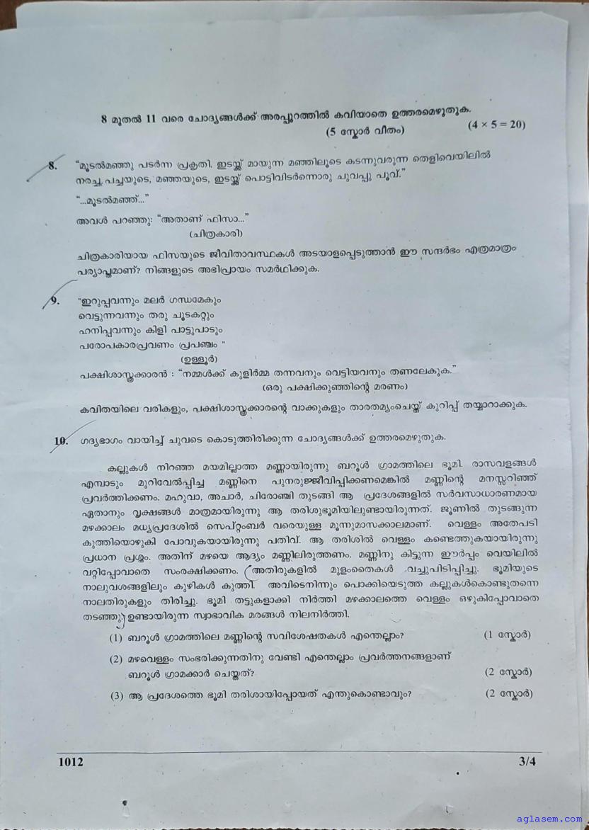 | Paper Here | Kerala Class 10 First Terminal Exam Malayalam II Question Paper |