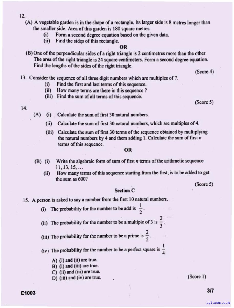 - Kerala Class 7 Question Papers