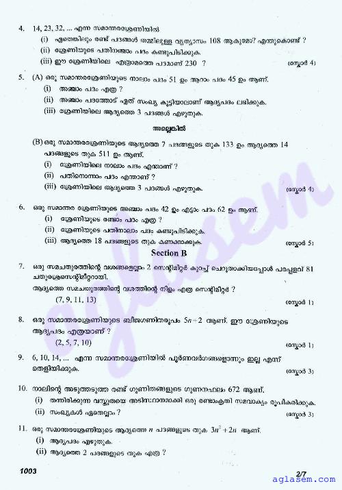 - Class 7 Onam Exam Question Papers