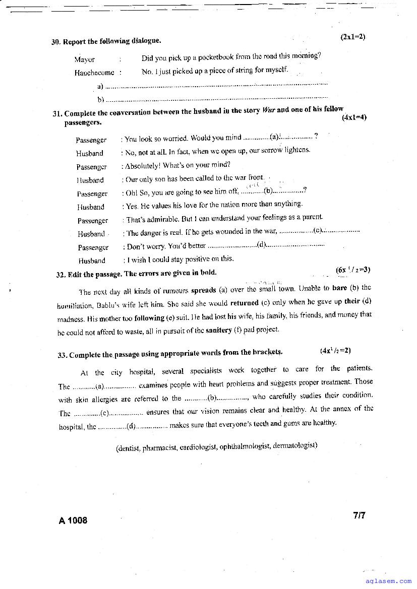 | Paper Here | Kerala Class 10 Second Terminal Exam English Question Paper |