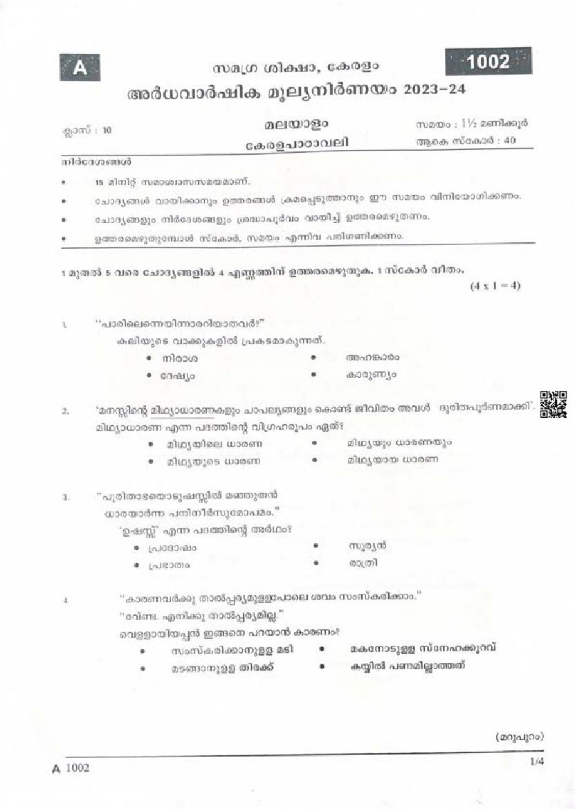 Kerala Class 10 Second Term Question Paper 2023 Malayalam I View Download