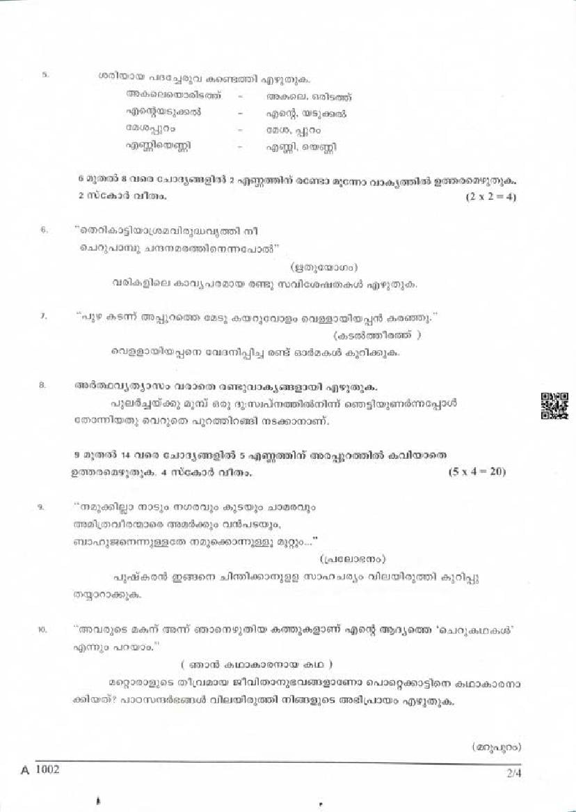 | Paper Here | Kerala Class 10 Second Terminal Exam Malayalam I Question Paper |