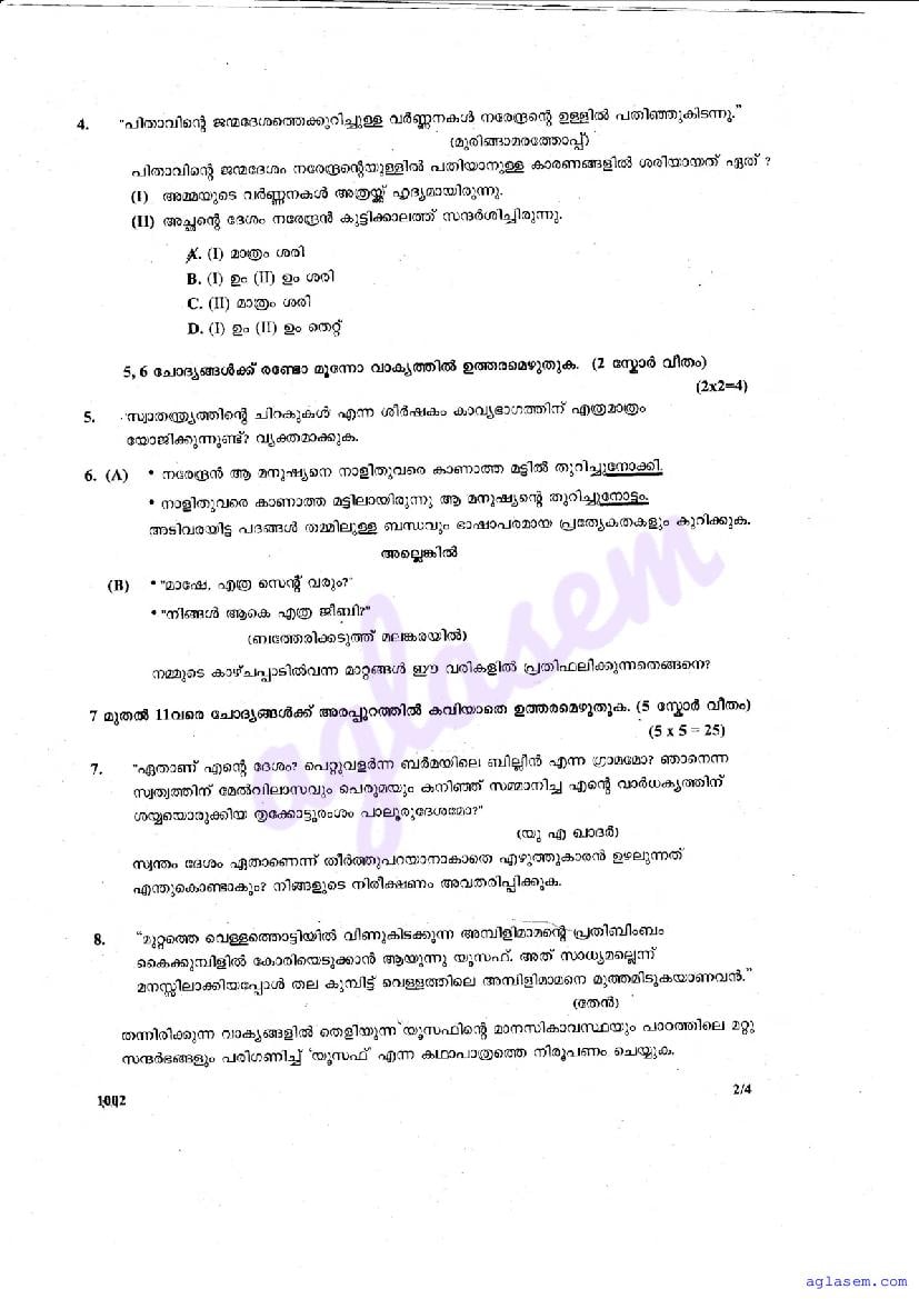 - Numerous educators teaching 10th standard in the Kerala Board share Kerala Syllabus 10th Standard Question Papers and Answers for Malayalam I.