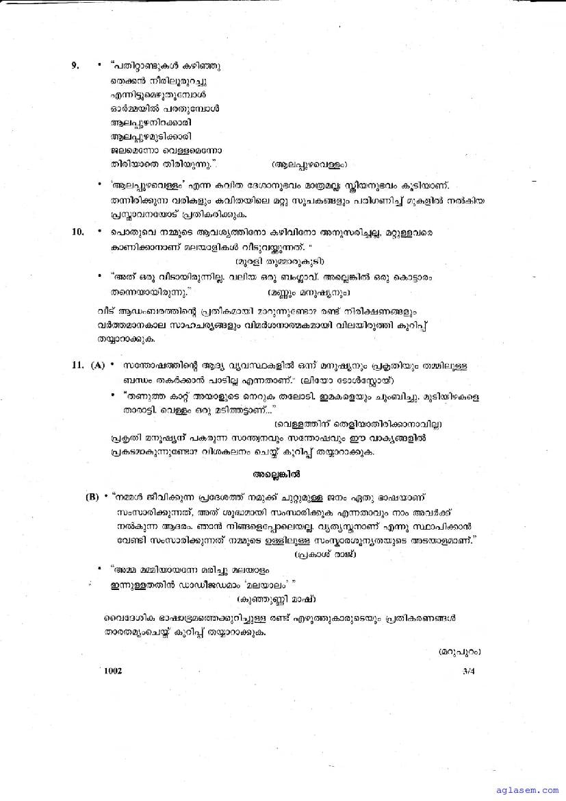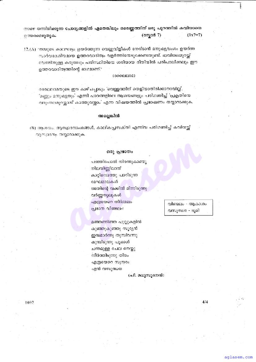 | Paper Here | Kerala Class 10 Second Terminal Exam Malayalam I Question Paper |