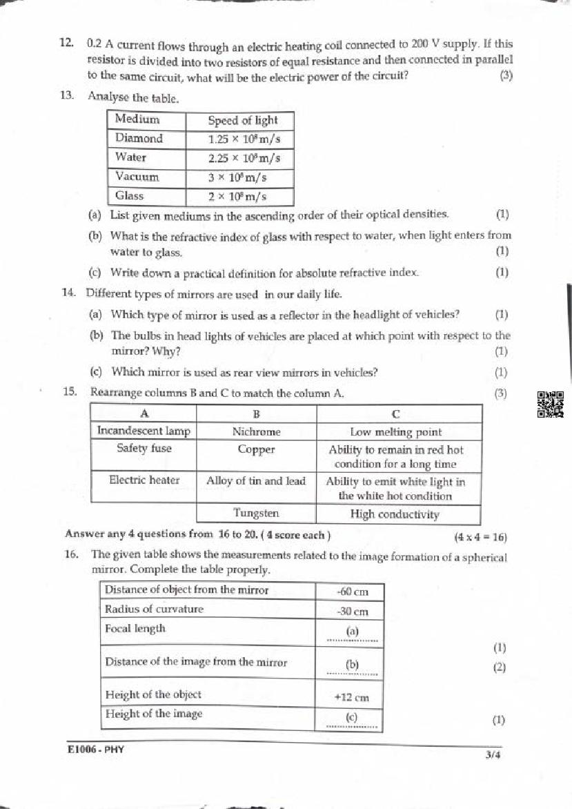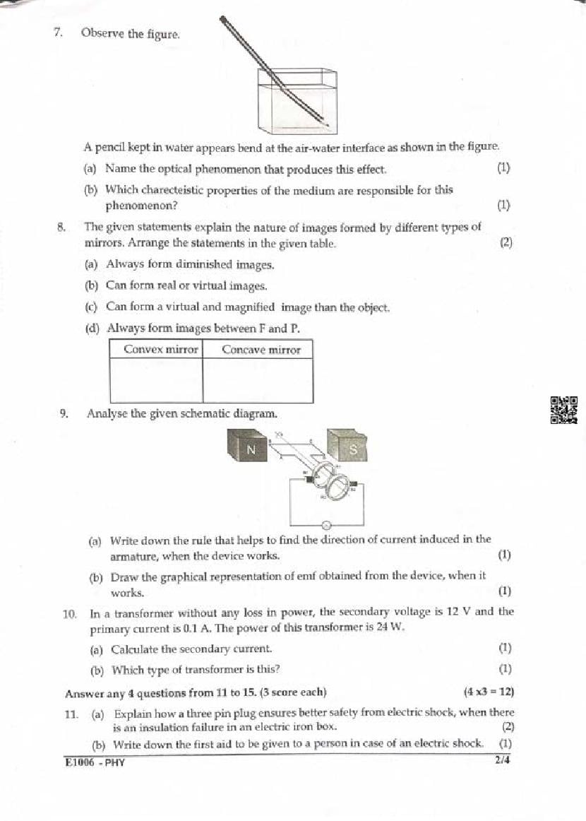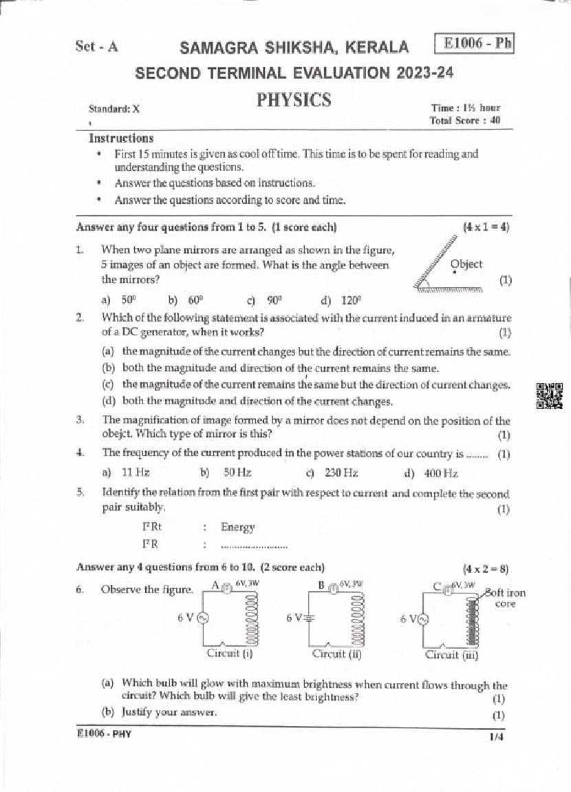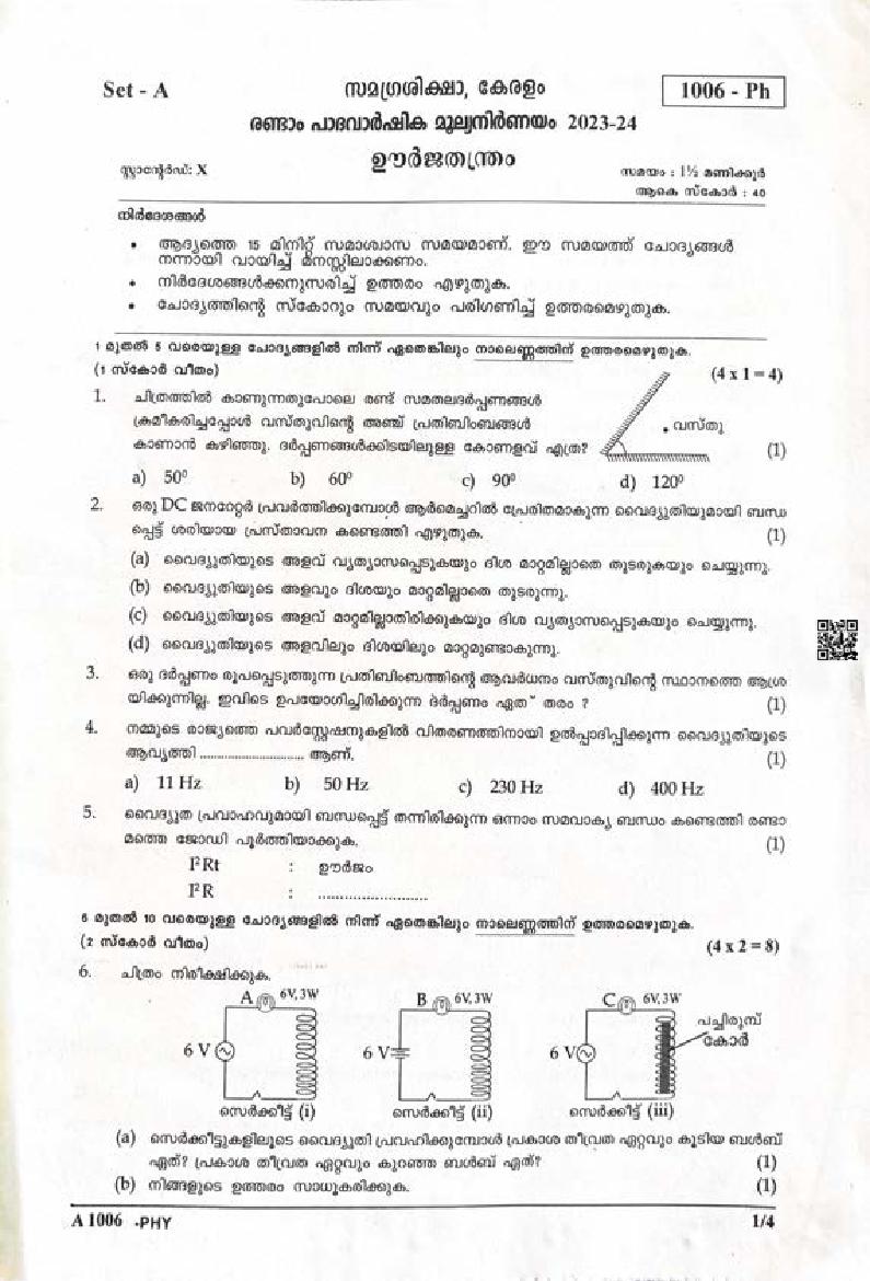 | Paper Here | Kerala Class 10 Second Terminal Exam Physics Question Paper |