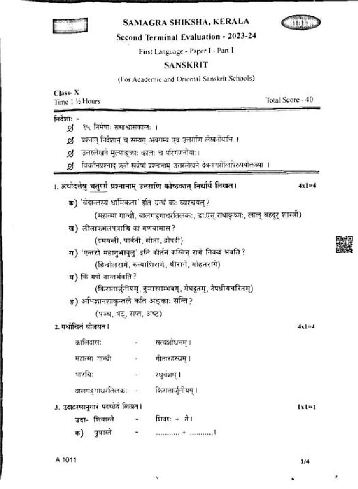 | Paper Here | Kerala Class 10 Second Terminal Exam Sanskrit Question Paper |