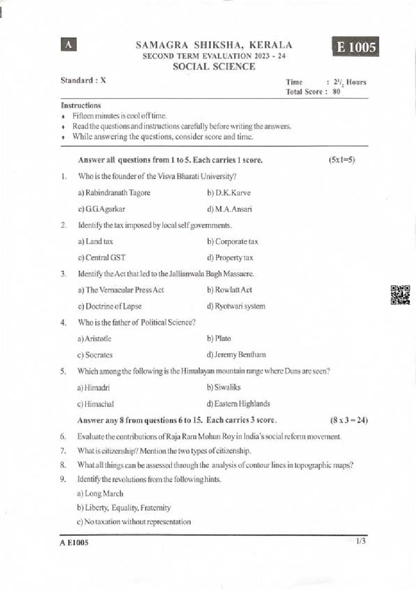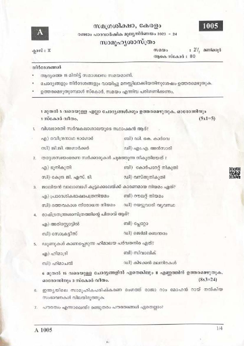 | Paper Here | Kerala Class 10 Second Terminal Exam Social Science Question Paper |