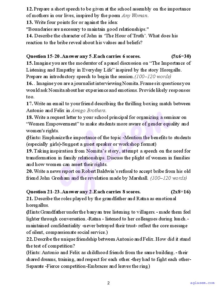 If you have any queries on Class 11 English Onam Exam Question Paper 2026, then please ask in comments below.