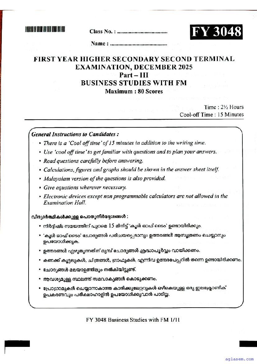 Class 11 Business Studies Christmas Exam Question Paper 2026 is published after the exam. You can download the Kerala Std 11 Second Term Business Studies Question Paper PDF from Aglasem. The latest and previous year question paper of Christmas Exam for class 11 Business Studies helps you prepare for the upcoming Second Term Business Studies test. After studying with this Kerala Syllabus Plus One Business Studies Question Paper, you can download Christmas Exam Question Paper for Class 11 for other subjects as well.