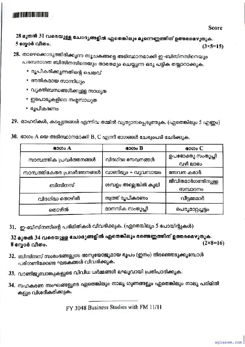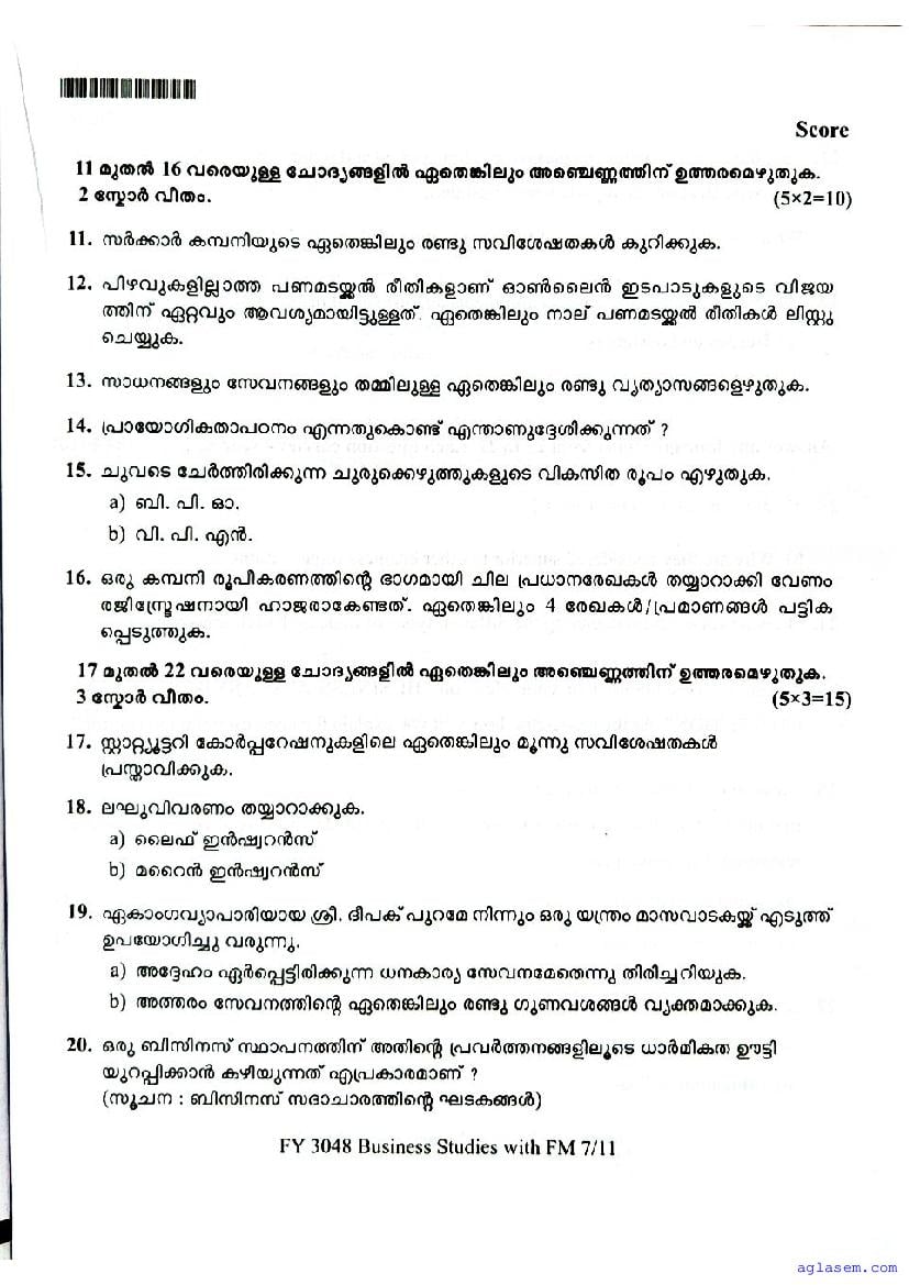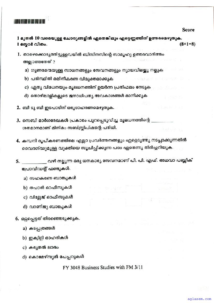 - Numerous educators teaching 11th standard in the Kerala Board share Kerala Syllabus 11th Standard Question Papers and Answers for Business Studies.