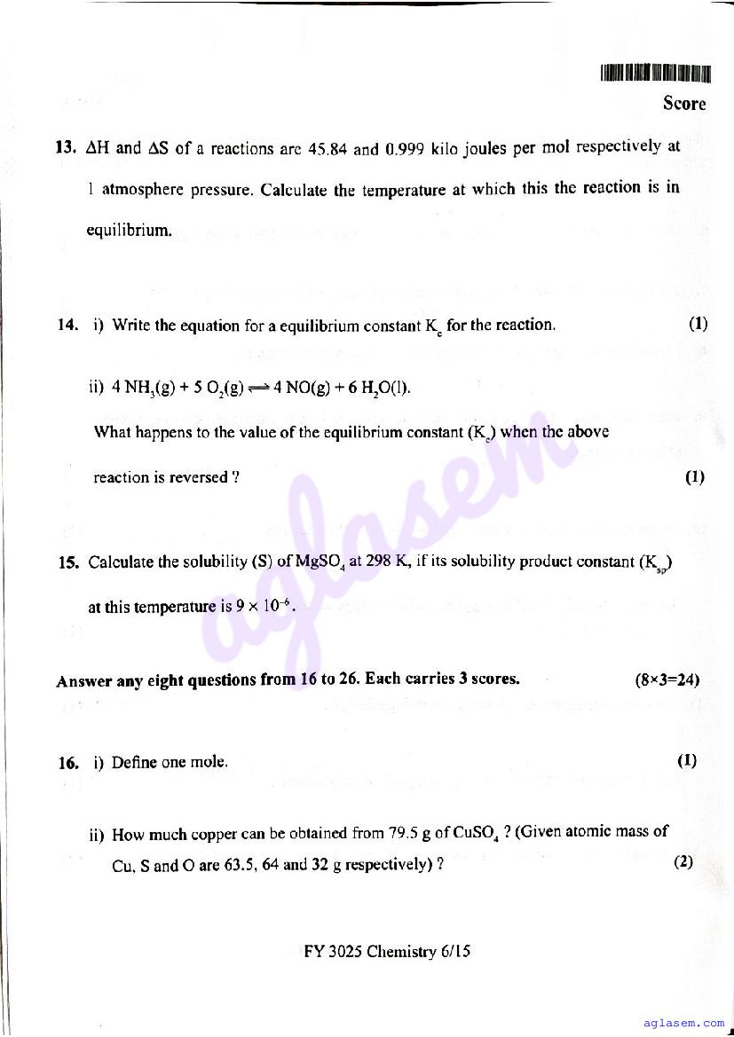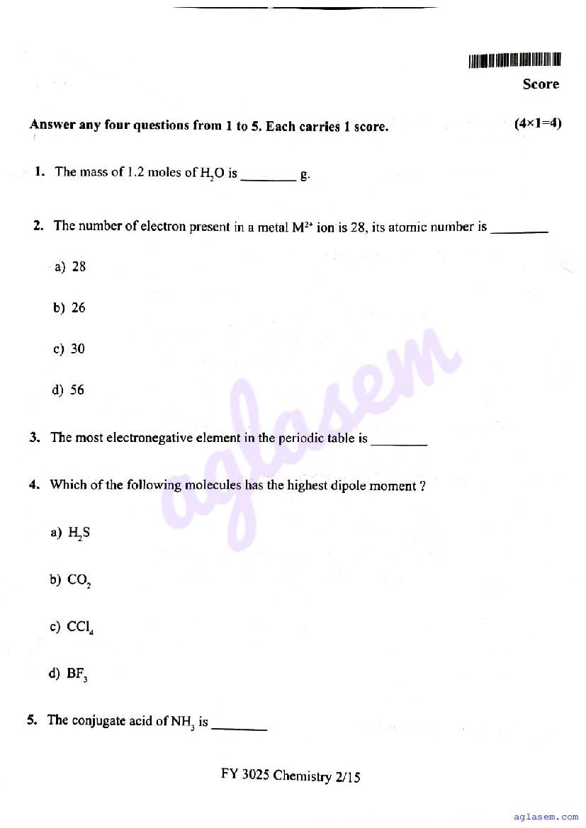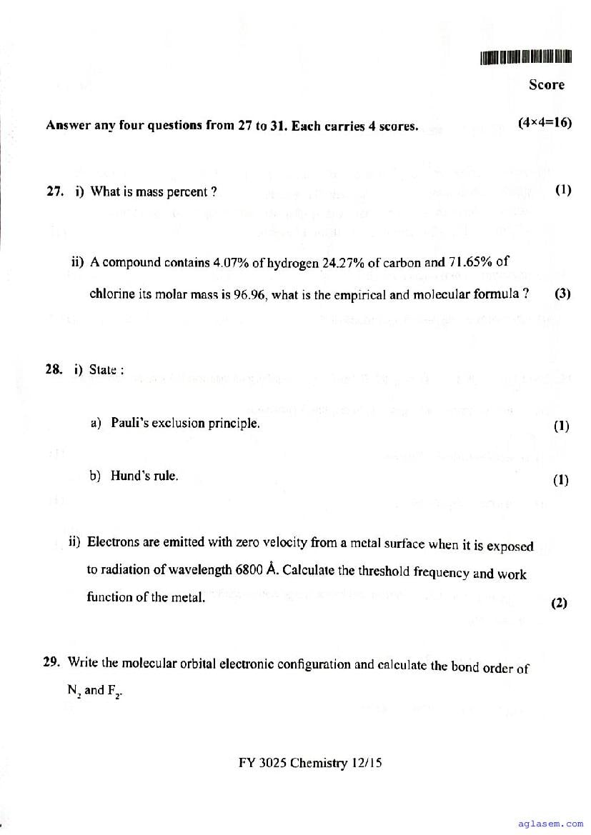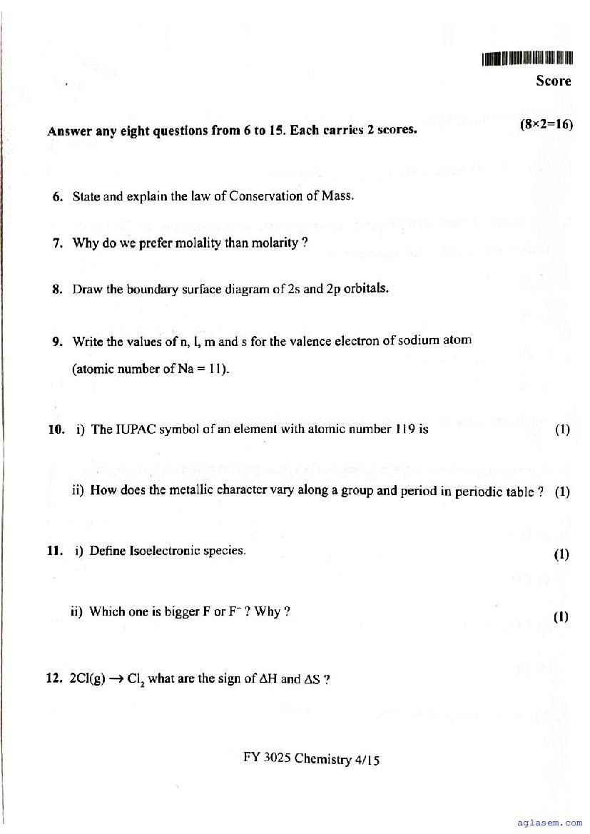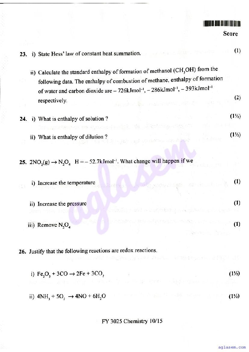 | Paper Here | Kerala Class 11 Second Terminal Exam Chemistry Question Paper |