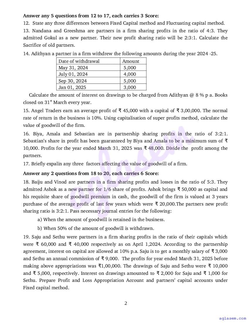 If you have any queries on Class 12 Accountancy CA Onam Exam Question Paper 2026, then please ask in comments below.