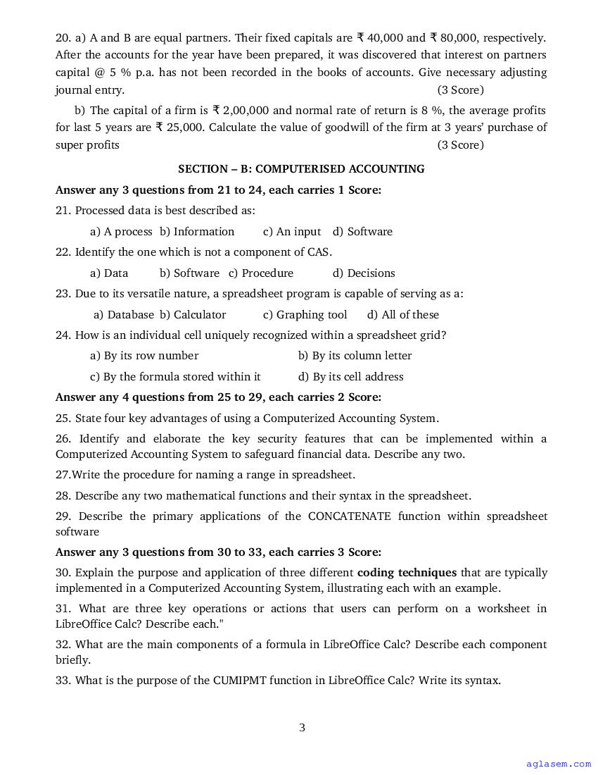 Class 12 Accountancy CA Onam Exam Question Paper 2026 is published after exam. You can download the Kerala Std 12 First Term Accountancy CA Question Paper PDF from here on aglasem. The latest and previous year question paper of Onam Exam for class 12 Accountancy CA helps you prepare for the upcoming first term Accountancy CA test. And after studying with this Kerala Syllabus Plus Two Accountancy CA Question Paper, you can download Onam Exam Question Paper for Class 12 for other subjects as well.